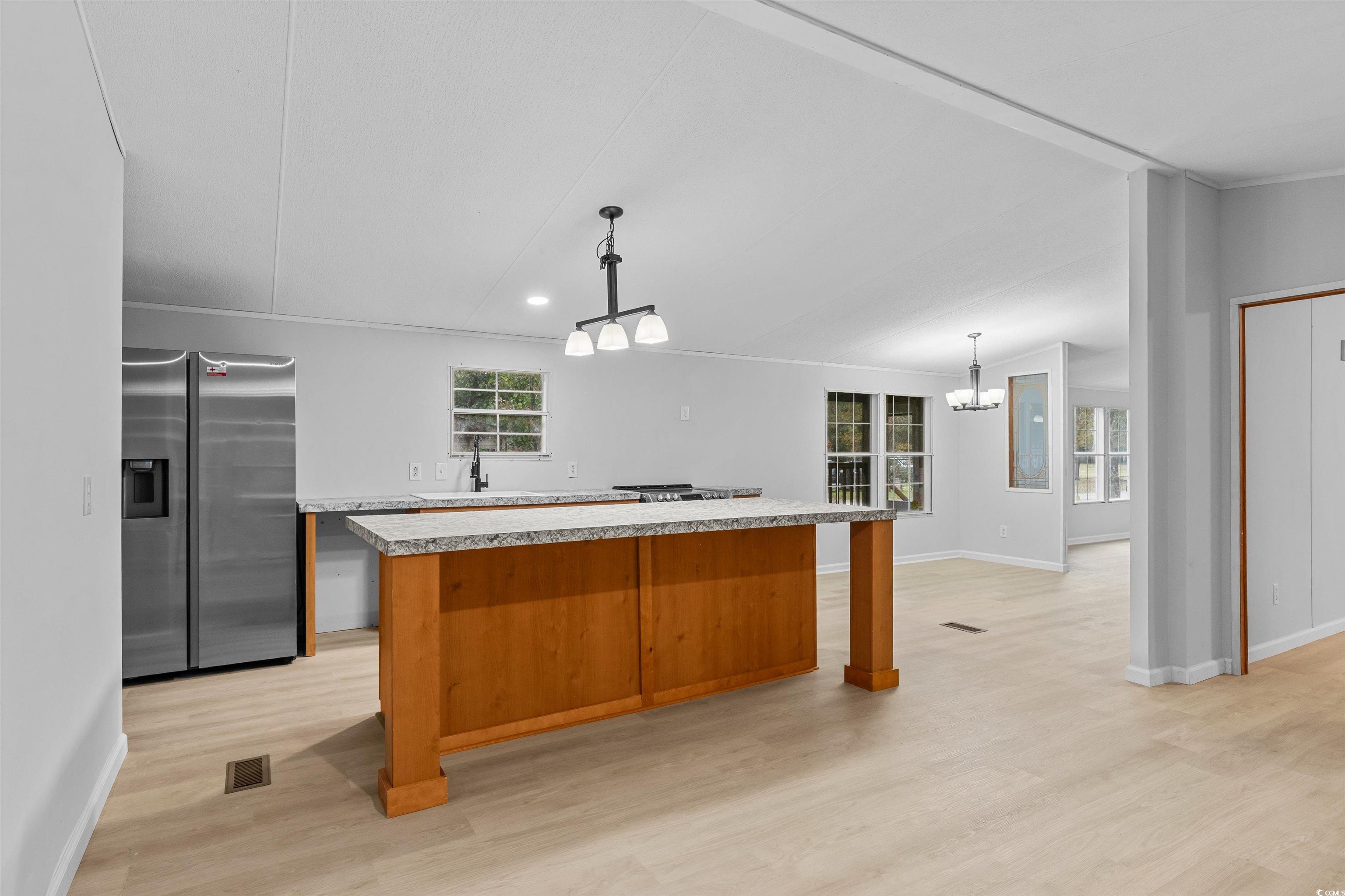Back on the market at no fault of the sellers! Owners are motivated and will consider all serious offers! If you have been craving country living, with space to roam, and a large workshop with space for all your hobbies and work projects, this is the home for you. Just a few miles from the beautiful Pee Dee River, this serene country property has had some significant updates and with the last few touches left for the new owners, this property will make you very happy for years to come. Let's start with the outside. Down a quiet country road with a handful of neighbors, you'll enjoy a half acre for a garden, pets, or even room to add a pool. Enjoy the existing fig and nut bearing trees that are already there, and add to it over time, creating your perfect country oasis. You will LOVE this large metal building with additional covered storage behind. This building is able to withstand hurricane force winds, and with a concrete floor, electricity, and large workbench already in place, this will be the perfect spot to do woodworking, furniture restoring, or any number of activities. Enjoy quiet mornings and slow evenings on your expansive side deck, or large screened in front porch, the perfect spot to watch the sunset and listen to the crickets at night. Inside, you will enjoy a large space, beautifully updated with light colored LVP floors, new cabinets in the kitchen and bathrooms, new toilets, vanities, and lighting. The kitchen comes equipped with stainless steel appliances, as well as a stainless steel washer and dryer. All that is left to do is a little trim work, and putting in a dishwasher! This is an amazing value, and is being sold as is, perfect for the person who wants a quiet country life, puttering around their property and just enjoying the beautiful South Carolina Low Country weather.