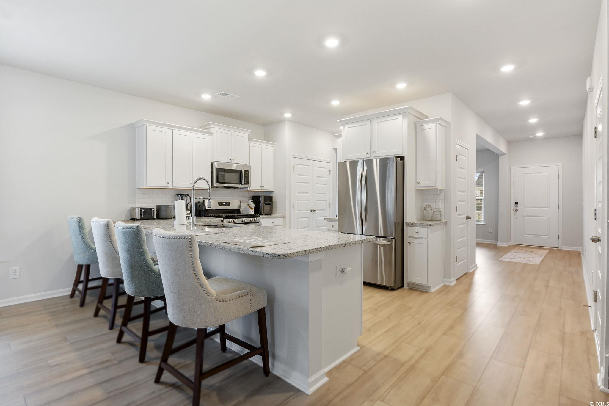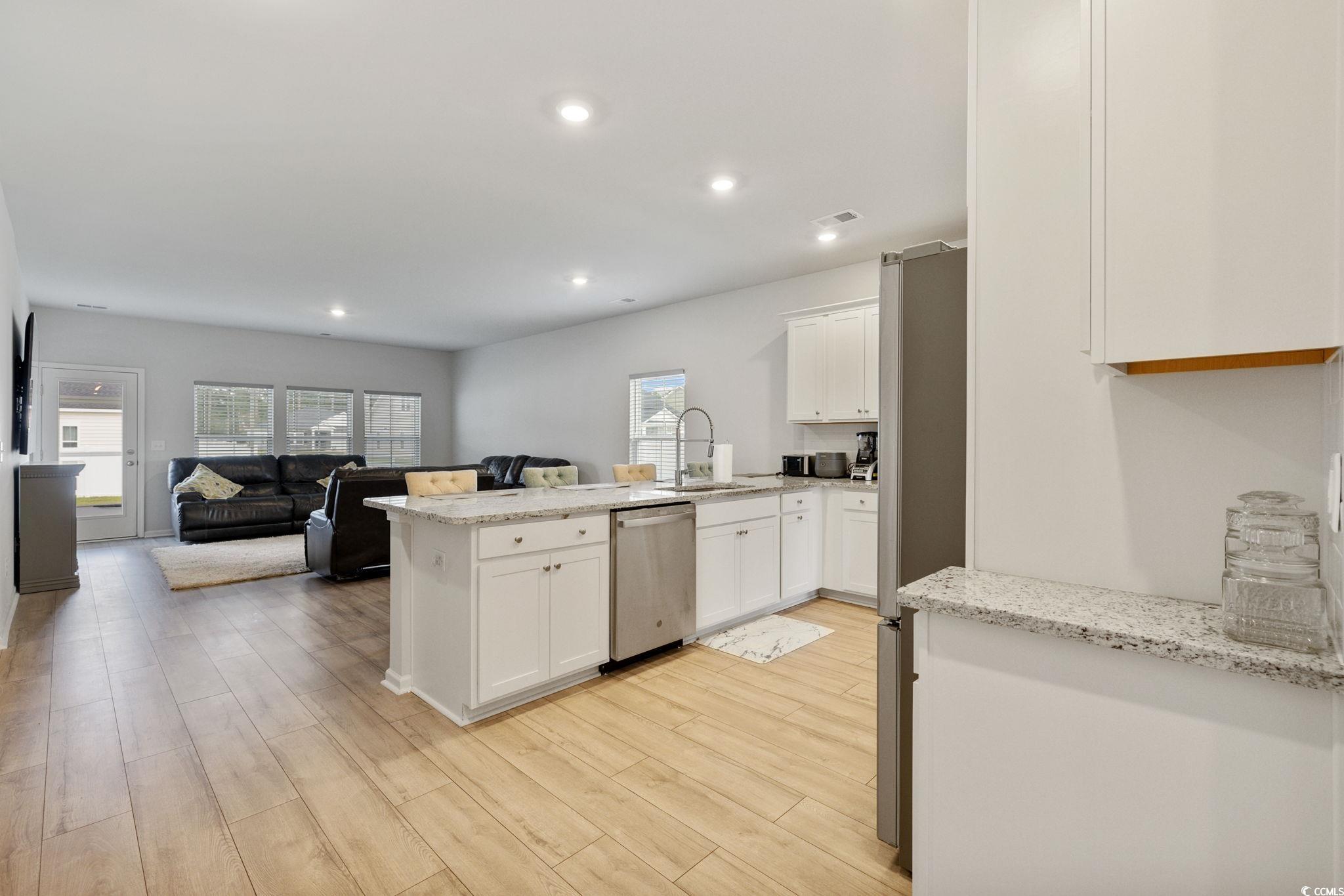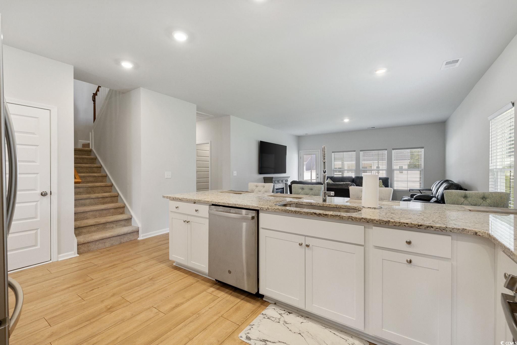Built in 2023 and lightly lived in, this spacious 5BR/3.5BA Lennar Kinston model offers 2,449 heated sq ft of open living space in a prime Myrtle Beach location near Hwy 501, 31 & Tanger Outlets. The main floor features a bright kitchen with granite countertops, stainless steel appliances, and a large island that flows into a cozy family room and dining space. Owner’s suite on the main level + 4 bedrooms upstairs, including a generous guest suite with private bath. Enjoy double front porches and a covered back patio. Located just minutes to the beach, dining, golf & shopping!