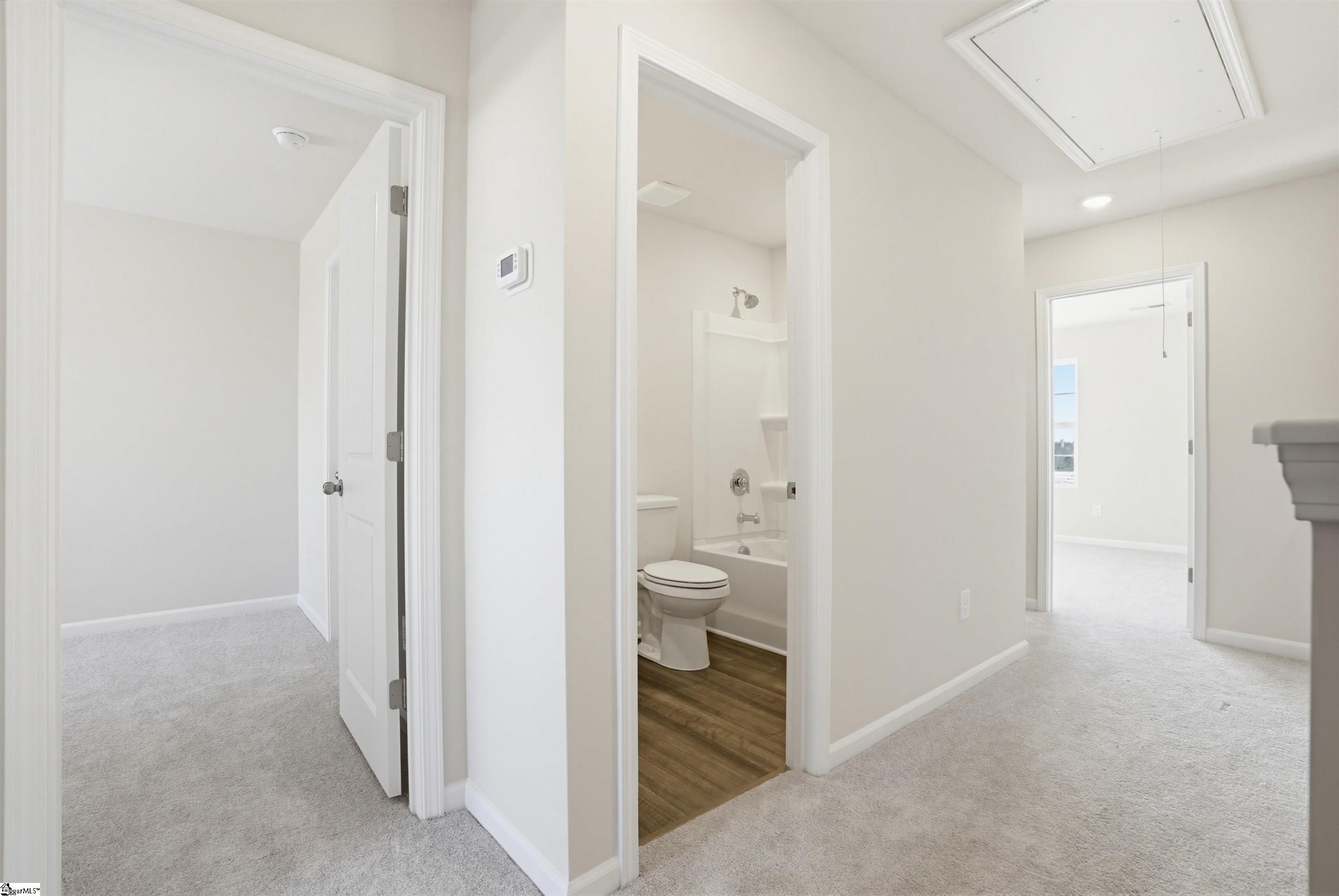 The Magnolia floorplan at The Maple in Inman, SC. We are thrilled to introduce you to the Magnolia floorplan, which boasts a generous 1405 square feet of living space. You will have a 2 car parking pad, and 1 car garage. As you step inside, you'll be greeted by an open-concept first floor featuring a spacious great room with vinyl flooring that seamlessly flows into your main kitchen and breakfast area. The kitchen is a chef's delight, complete with smooth top countertops, a stylish tile backsplash, and modern stainless-steel appliances. Imagine spending tranquil afternoons on your back porch, which comes with vinyl privacy fences for that added sense of seclusion and peace. Heading upstairs, you'll discover a luxurious primary bedroom equipped with a dual vanity sink, a walk-in shower, and a spacious walk-in closet. Home also features a tankless water heater. The upper floor is also home to two additional bedrooms, a full bath, and a conveniently located laundry room, ensuring all your needs are met. It's the ideal home for making lasting memories with your loved ones. It's ideal for families seeking a peaceful neighborhood with convenient connections to Greenville and Spartanburg.