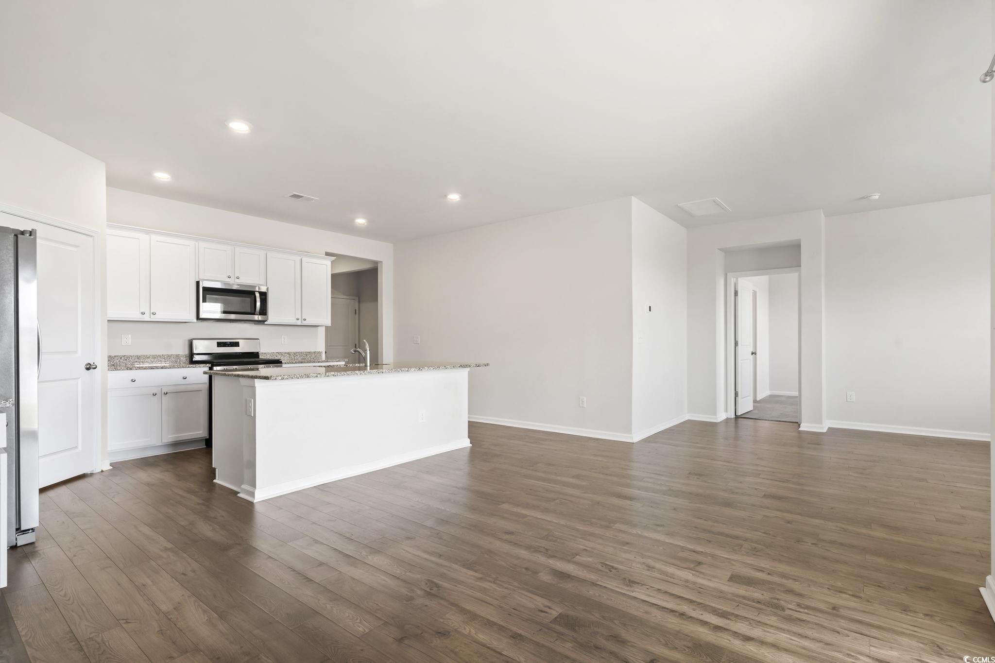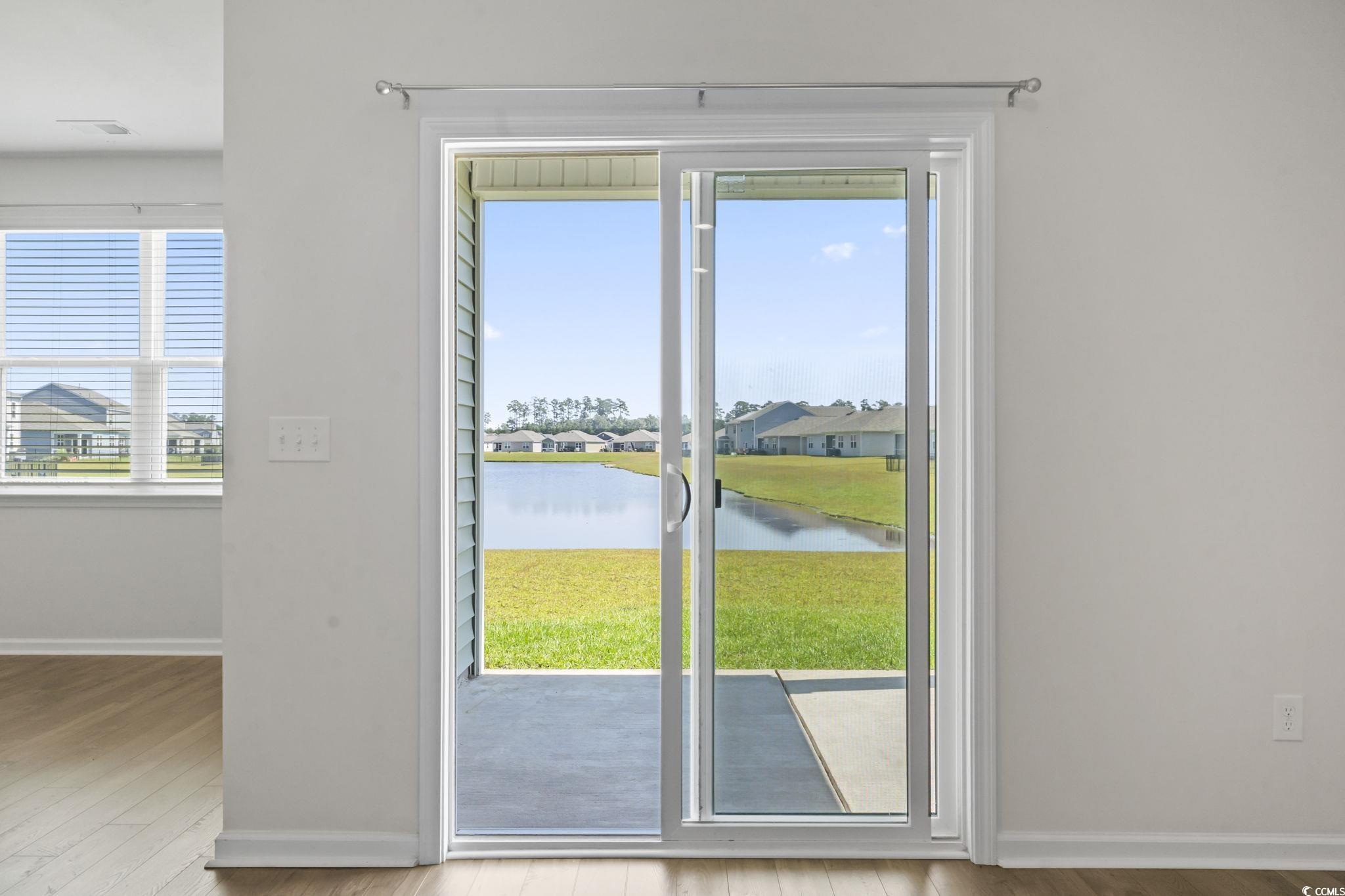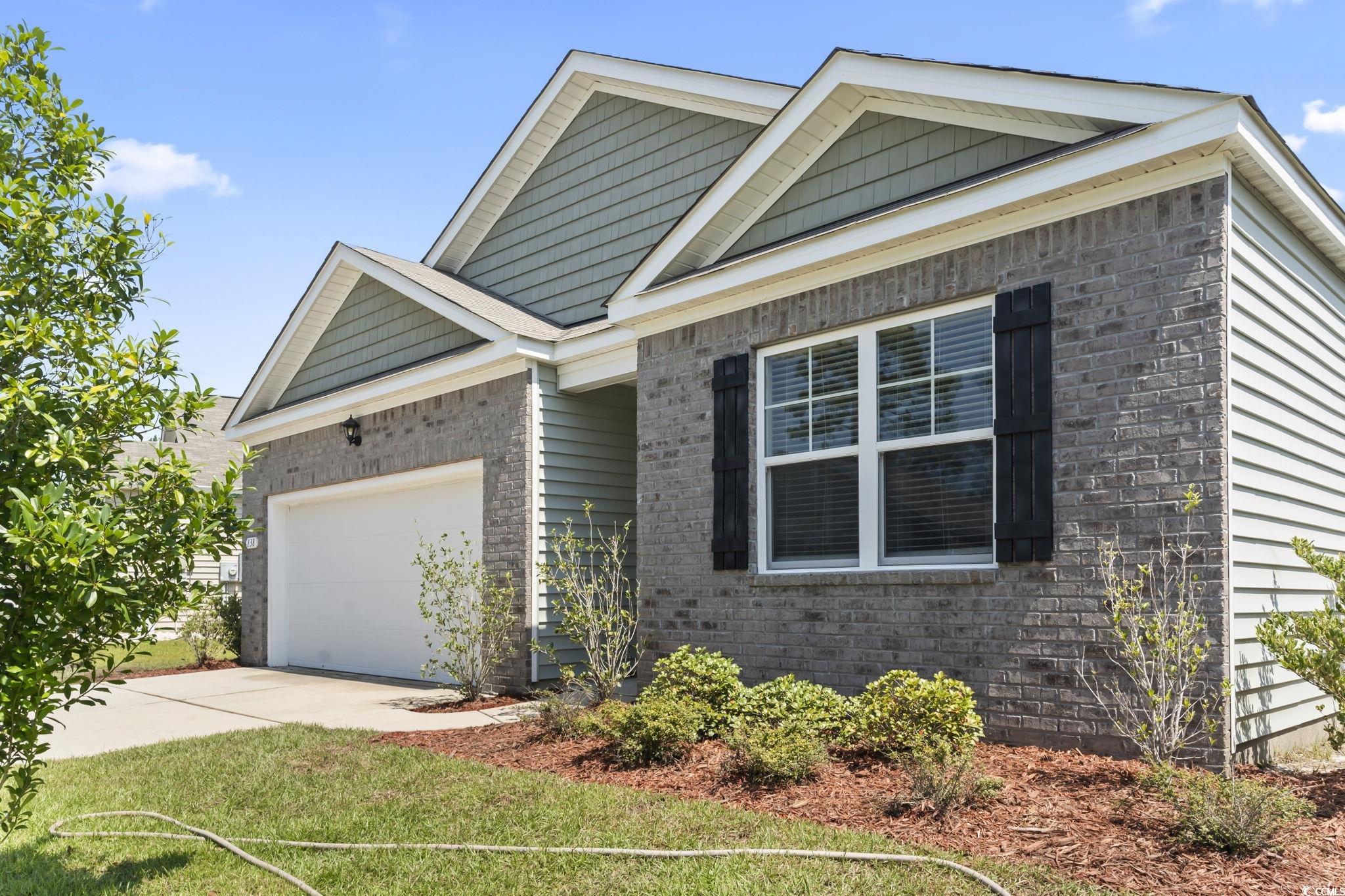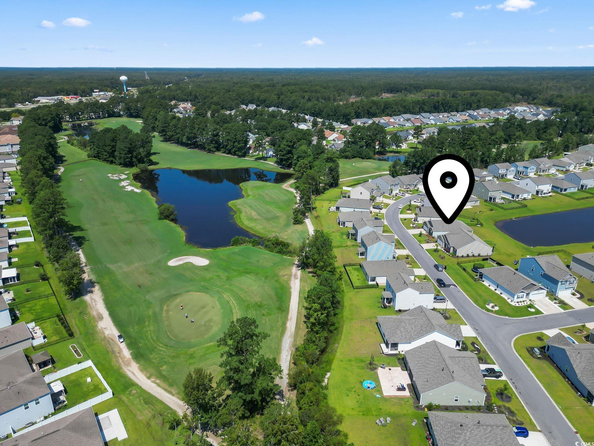Discover easy living in The Vistas at Sun Colony, a sought-after community with a convenient location near the Highway 31 connector, offering quick access to all that the Grand Strand has to offer. From the welcoming foyer, you'll find two spacious bedrooms tucked at the front of the home, along with a full bath, making this area ideal for family or guests. Just beyond, a third bedroom and additional bath are set along a private hallway, offering flexibility for use as a guest room, home office, or hobby space. The heart of the home opens to a bright, open-concept living area that seamlessly connects the kitchen, dining, and living rooms. The kitchen is a true highlight, featuring granite countertops, an oversized island, crisp white cabinetry, a walk-in pantry, and stainless steel appliances. Low-maintenance laminate flooring flows throughout the main living spaces, combining style with durability. The dining area and living room provide plenty of space for entertaining, while sliding doors lead to a covered rear porch overlooking the pond-perfect for outdoor relaxation. The private owner's suite is thoughtfully positioned at the back of the home and includes a large walk-in closet, dual vanity, oversized shower, and separate linen closet. Conveniently located nearby, the laundry room provides easy access from both the owner's suite and main living spaces. The attached garage completes the floor plan with both function and storage in mind. Additional modern features include a smart home system that allows you to control the thermostat, front door light, lock, and video doorbell from your smartphone or with voice commands. With its thoughtful design, upgraded finishes, and convenient location, this single-level home offers the perfect blend of comfort and practicality. Measurements are not guaranteed. Buyer is responsible for verifying.