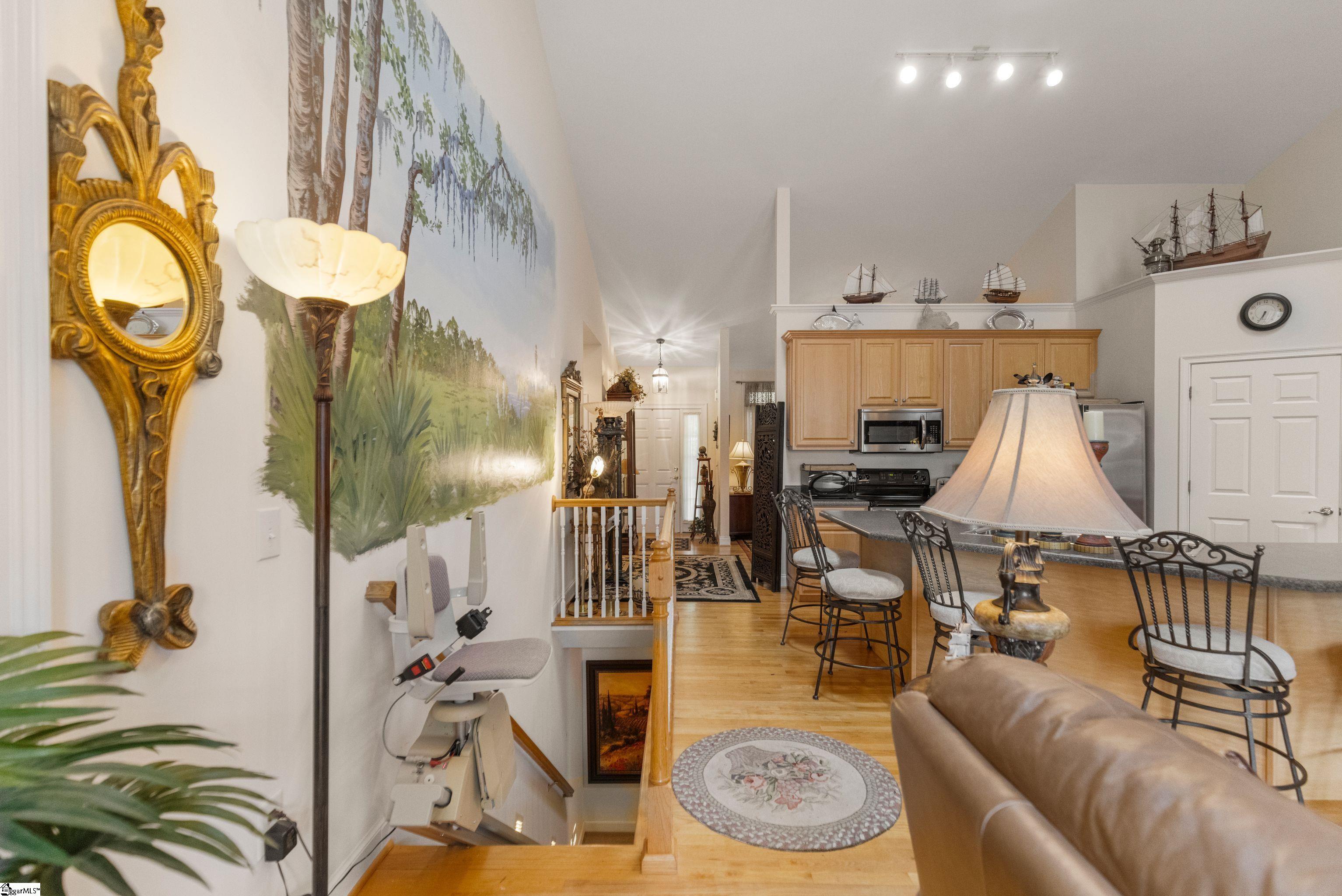 Ready to live the lake life. This beautiful waterfront home located in The Point at Lake Rabon maybe for you. Once you arrive at 138 Yacht Drive, you will notice the gorgeous landscaping and expansive lake views. Upon entering the home you will find a large dining room. Then onto the open floorplan kitchen and living room. The kitchen features a huge island which is perfect for entertaining. Living room features include a stacked stone corner fireplace and access to the huge rear deck. Off the living room is a large sunroom, a great place to curl up and read a book. Also on the first floor you will find the primary bedroom, two other bedrooms, two full baths, walk-in laundry room and access to the garage. The primary bedroom and bathroom are located on one side of the home and the two other main floor bedrooms and bath are on the other side of the home. Primary bedroom has access to the rear deck, a bathroom with two sink vanity, garden tub, separate shower and a walk-in closet. This home has a stair lift installed on the staircase to the basement. Downstairs you will find a huge den with gas fireplace. The den has access to a large rear patio. There are also two bedrooms a full bath, office, full kitchen and a second laundry area. The property has a floating dock and a pontoon boat that the seller would like to convey with the sale.
