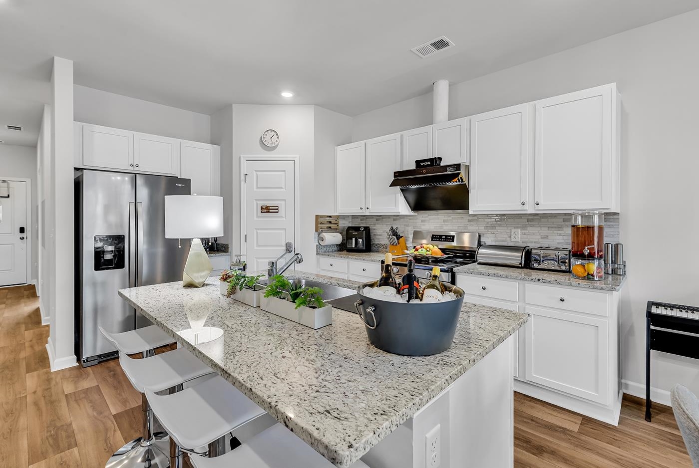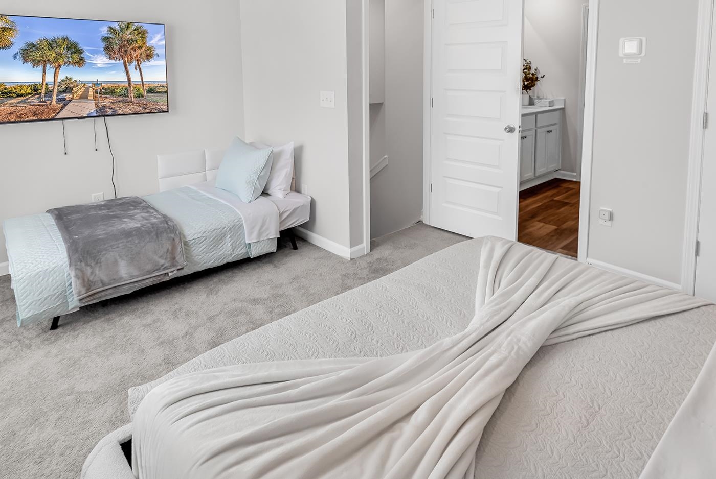 Turnkey Pond-View Townhome in Victory Point | STR-Approved | 3BR / 3BA | Fully Furnished Alternative (more lifestyle-focused): Victory Point Gem – Fully Furnished Pond-View Townhome with Proven Short-Term Rental Income Welcome to Victory Point, one of Myrtle Beach’s very limited communities that officially allow short-term rentals, offering a rare opportunity to combine immediate income potential with refined personal use. This fully upgraded, 3-bedroom, 3-bathroom townhome was completed and professionally furnished on February 1, 2026, and is offered truly turnkey. Unlike most comparable properties with only 2.5 bathrooms, this home provides a full bathroom for every bedroom—a layout strongly preferred by vacation guests and a proven driver of higher occupancy. Designed with a European-inspired aesthetic, the interior features carefully planned LED lighting, premium furnishings, and exceptional flexibility for hosting families and larger groups—without compromising elegance or comfort. The modern kitchen is equipped with a touchless high-performance range hood, full stainless steel appliance package, granite countertops, white cabinetry, a pantry. An oversized island and an extendable dining table seating up to eight guests. The open living area features durable LVP flooring and a contemporary sectional sofa that converts effortlessly to a king-size sleeping space, with an optional privacy curtain separating dining and living areas for spontaneous guest stays. Sleeping accommodations include two king bedrooms and one queen bedroom, complemented by additional folding beds discreetly stored for larger groups. Baby-friendly amenities, fitness equipment, yoga accessories, and family games further enhance appeal for extended stays and repeat bookings. The primary suite features a spa-inspired European glass split-door shower, delivering both visual impact and hotel-quality comfort. Outdoors, the home enjoys a private pond-view backyard, where water reflections and natural light create a serene setting rarely available within the community. A fully equipped outdoor grill, solar exterior lighting, and security features complete the experience. Smart and energy-conscious upgrades include a Yale digital lock, garage door opener with keypad, solar-powered security cameras, motion-sensor and wall-mounted solar LED lighting, and timed interior LED lighting throughout. The property conveys fully furnished and stocked, including washer, dryer, new linens, towels, bedding, cleaning supplies, and cordless vacuum—allowing the next owner to rent or enjoy immediately with no additional setup. Located directly beside Tanger Outlets, surrounded by supermarkets and wholesale stores, near Coastal Carolina University, and approximately 10 minutes to Myrtle Beach city center, beaches, golf, and entertainment, this home combines convenience with investment-grade performance. Notably, three bookings were secured within just two days of initial listing, demonstrating immediate demand ahead of peak season. Whether held as a luxury vacation retreat, a high-performing short-term rental, or a strategic combination of both, this Victory Point residence represents one of the most complete and compelling townhome offerings currently available in Myrtle Beach.