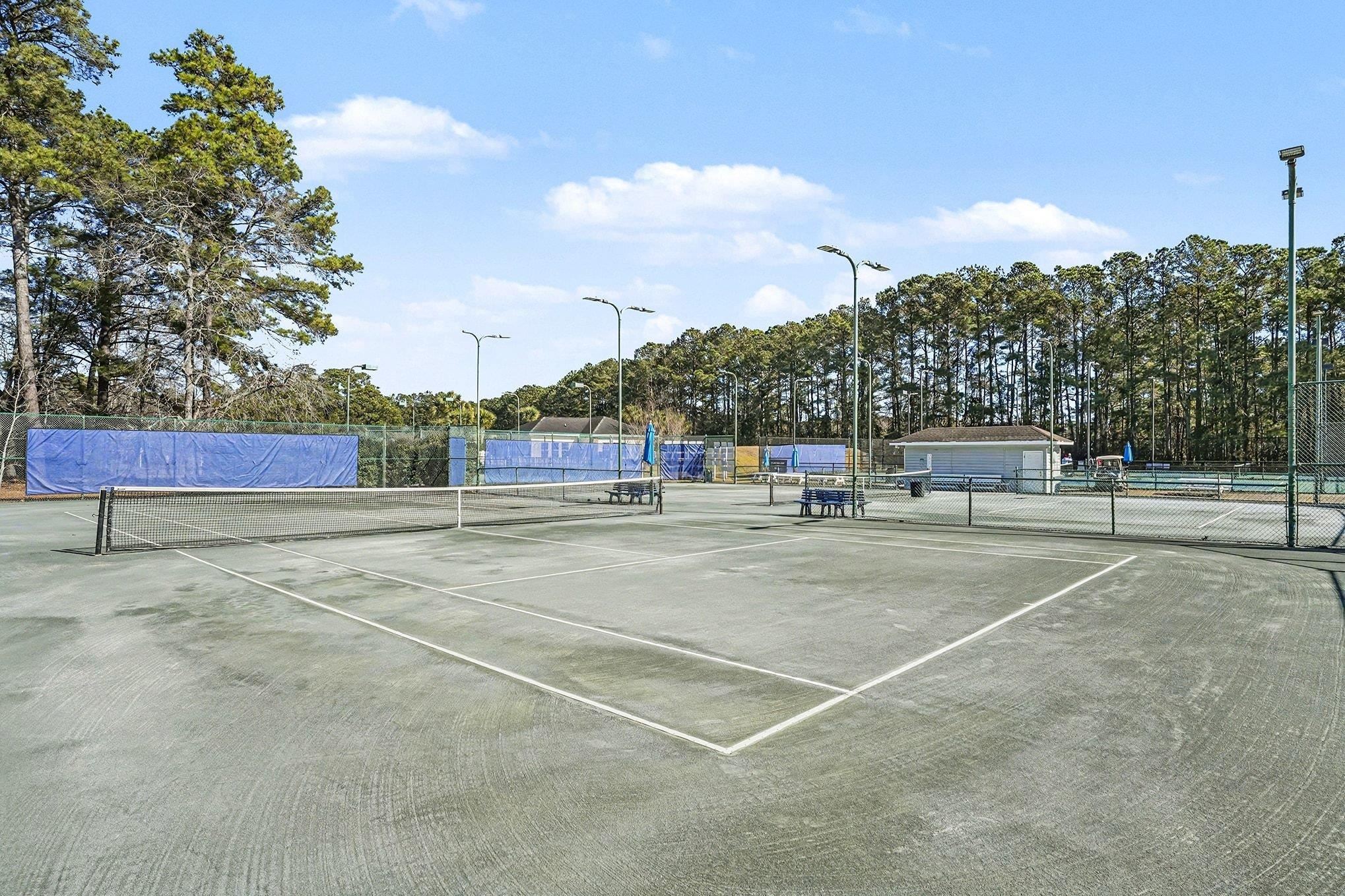 Welcome to this beautiful all brick home in the prestigious gated Prestwick community, offering an exceptional lifestyle with 24-hour security and access to top-of-the-line amenities. Ideally located close to the ocean, Myrtle Beach State Park, Market Common, mall, airport, beaches, shopping, golf, dining, and attractions, this home combines luxury, comfort, and convenience. The thoughtfully designed floor plan features a large primary suite and three additional bedrooms downstairs, along with a primary bath, two additional full baths, a powder room, and laundry room on the main level. Upstairs, you’ll find a spacious bonus room with a full bath and two sectioned rooms, perfect for a media room, office, craft room, playroom, additional bedroom, or flex space. One of the additional sectioned rooms upstairs can easily be used as a fifth bedroom. Recent upgrades include new LVP flooring, new carpet on the stairs, along with fresh paint throughout the whole house and a garage floor finished with color stain sealer. New lighting enhances the kitchen and living room, adding to the bright, modern feel. The kitchen is a chefs dream and boasts granite countertops, tile backsplash, wall oven/microwave, cooktop, French door refrigerator, wine cooler with built-in wine rack, breakfast bar, cabinetry with crown molding and abundant counter space, all open to the great room. The large great room showcases built-ins, a fireplace, French doors leading to the patio, and tons of windows, filling the home with natural light and enhancing the neutral colors throughout. The sunroom overlooks the large patio and tennis court, creating a perfect indoor-outdoor living experience. The primary suite includes a tray ceiling, soaking tub, tiled walk-in shower, walk-in closet, separate toilet closet with sink, and a large double vanity. Secondary full baths also feature granite countertops. Additional highlights include crown molding, chair rail, recessed lighting, fully cased windows and doors, wainscoting, a separate laundry room, and a large two-car side-load garage with heating/cooling, built-in shelving and windows. The patio with covered area, nicely manicured trees and shrubs, and ample parking for vehicles complete the exterior. Community amenities include a junior Olympic-sized pool, pickleball court and hard tennis court right out the back door, cabana available for rent for parties, with clay tennis courts and golf available for optional memberships. This exceptional home is just a short drive to Myrtle Beach State Park, beaches, golf, shopping, dining, entertainment, and more offering the best of coastal living in one of the area’s most desirable communities.
