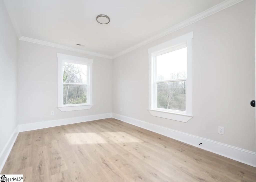 Welcome home! With a prime location in West Greenville, close to Flour Field, Falls Park, Unity Park and the medical facilities at Prisma Health and St. Francis. Nestled on a quiet street with abundant charm, this home welcomes you with a full-length rocking chair front porch. Enter to a tastefully designed interior where the living room sets the tone with a painted accent wall, superb lighting choices, luxury flooring and crown molding that gracefully flows throughout the entire home. The signature kitchen is a showstopper, featuring a quartz center island, extended height/soft-close cabinetry with a built-in pantry, a subway tile backsplash, and stainless steel appliances with a range pot-filler. Adjacent is a spacious eat in kitchen area with a wicker globe chandelier, creating the perfect setting for meals. On the main level, discover a convenient half bath with tile floors, a quartz vanity and a framed mirror, as well as a dedicated laundry room with ceramic tile. All bedrooms are located upstairs. The owner's bedroom is a delightful retreat with its accent wall, recessed and ceiling fan lighting and bedside reading globes. A stylish sliding barn door reveals the exceptional bath with designer tile floors, a dual sink quartz vanity with a full wall tile backsplash and a roomy tiled shower with an overhead rain faucet. Both secondary bedrooms offer ample space and deep closets, sharing the central half bath with tile, a dual sink quartz vanity and framed mirrors. The fenced in backyard boasts a spacious deck and freshly sodded grass.
