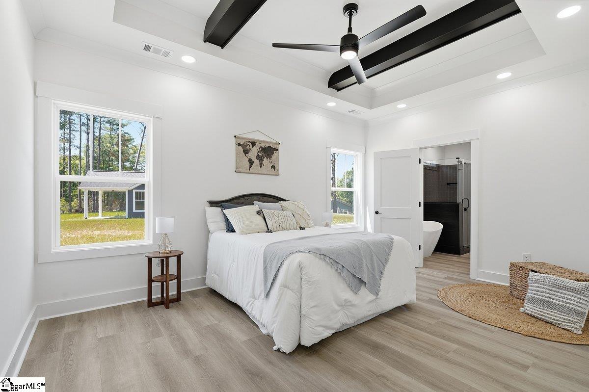 Welcome to this beautifully crafted new construction home located in the highly desirable area of Simpsonville. This 4 bedroom, 3 bathroom home offers over 2,000 square feet of thoughtfully designed living space with modern finishes throughout. Step inside to an open floor plan featuring vaulted ceilings and abundant natural light. The spacious living room showcases a stunning floor to ceiling fireplace with a custom accent wall, creating a warm and inviting focal point. The kitchen is designed to impress with a large center island, quartz countertops, custom cabinetry, stylish tile backsplash, and stainless steel appliances. Perfect for both everyday living and entertaining. The primary suite offers a private retreat with a beautifully appointed ensuite bathroom while additional bedrooms and bathrooms provide flexibility for family, guests, or a home office. The second floor features an additional living space, including a spacious family room, an extra room, and a full bathroom, ideal for a guest suite, media room, or private retreat. Situated on a spacious 0.75 acre lot, this home offers privacy and plenty of outdoor space to enjoy. Additional features include a 2 car garage and eye catching modern curb appeal. A rare opportunity, the newly constructed home next door is also available for sale, offering a rare opportunity for multi generational living, investment, or for family and friends looking to live close while still enjoying their own space. Conveniently located near shopping, dining, and schools, this move in ready home combines quality craftsmanship with a prime location. NO HOA Schedule your private showing today and discover the unique opportunity to tour both homes side by side!