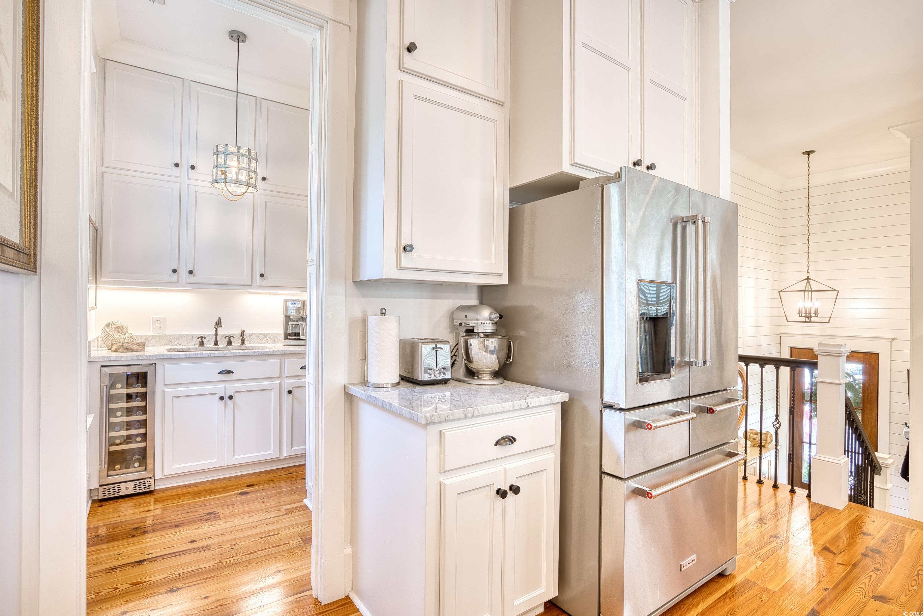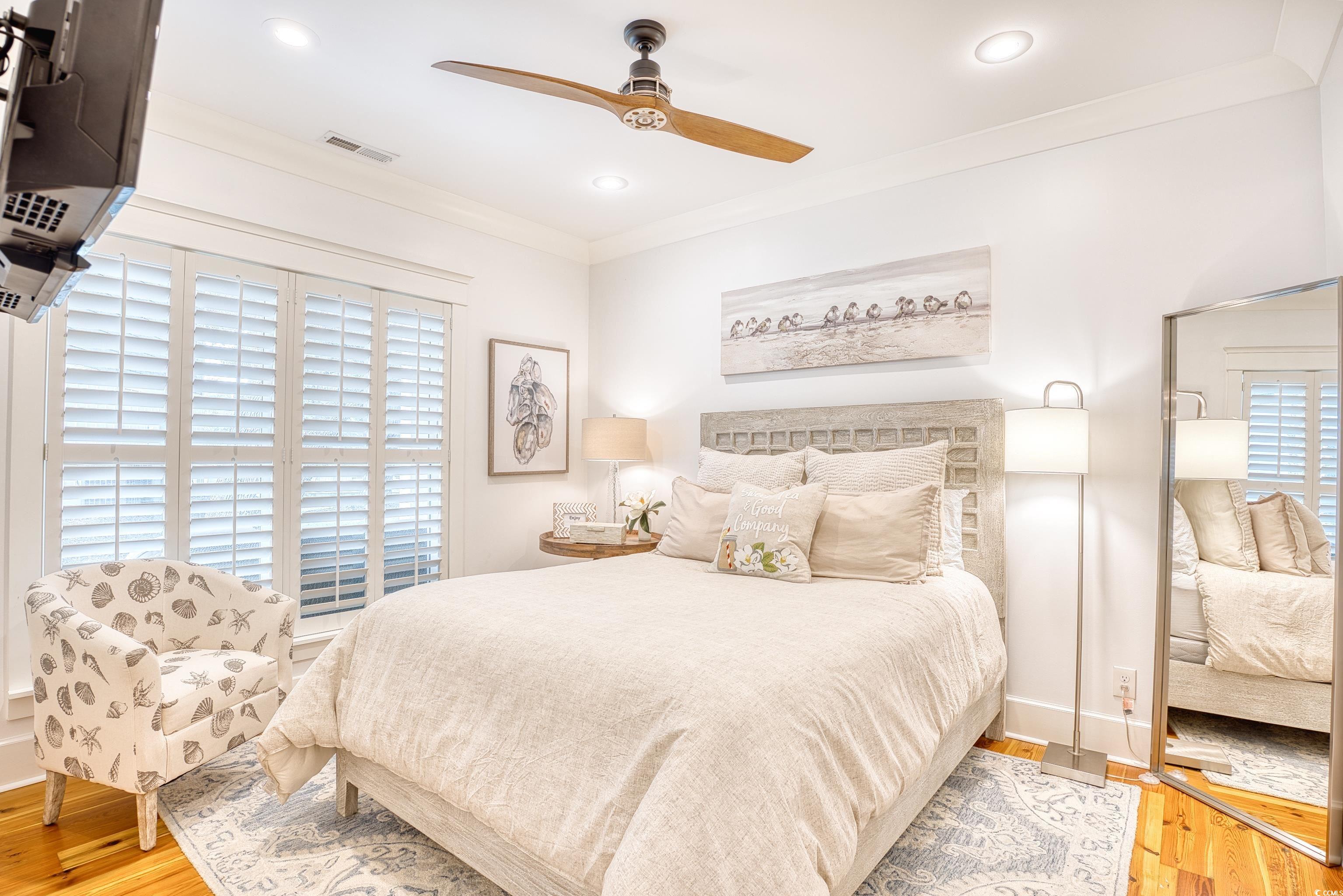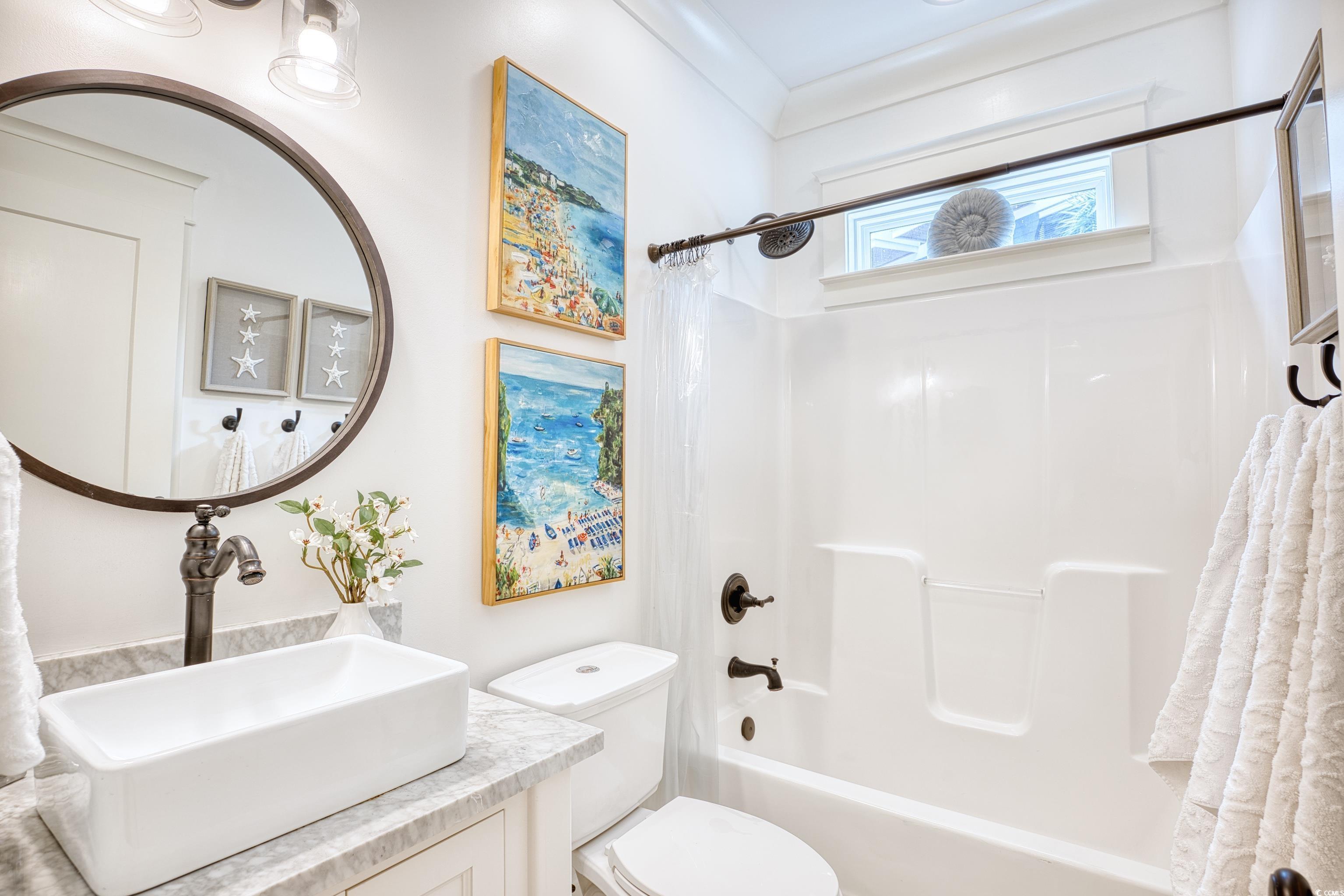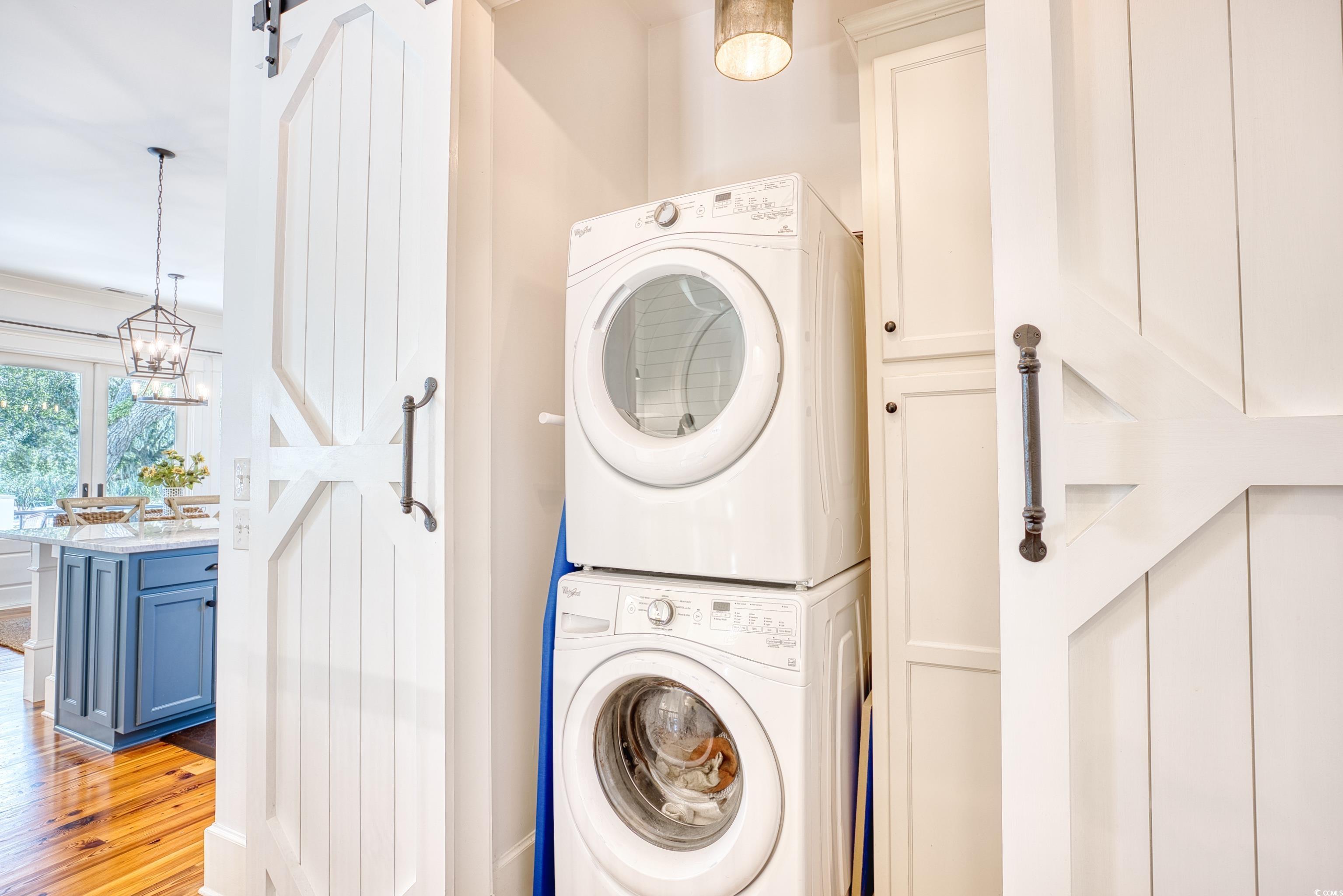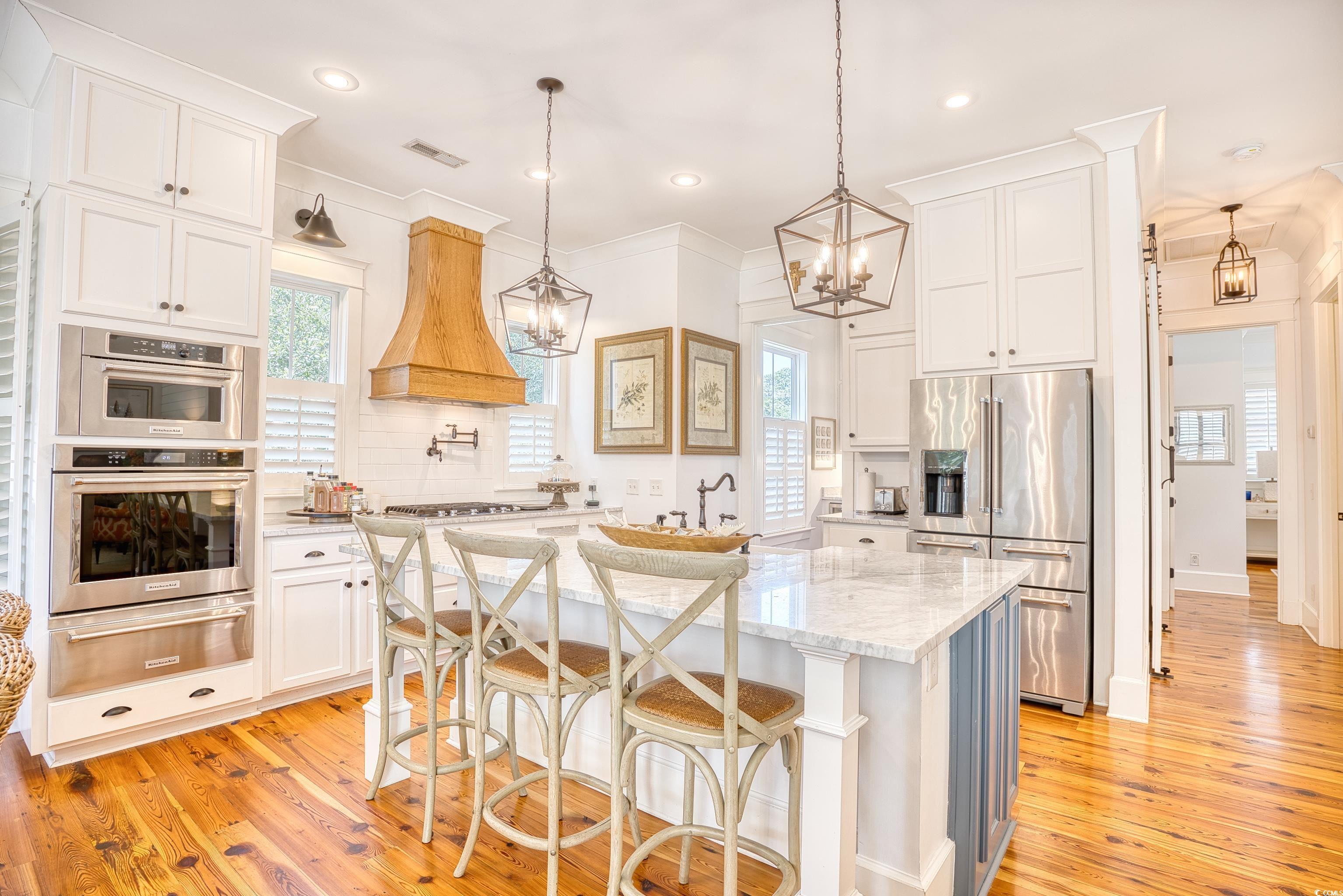 Welcome to 14 Flaggpoint Lane. This exquisite home is located in a small community of custom residences surrounded by live oaks and offers a peaceful backyard oasis with views of a tidal creek. The home features wraparound porches, access to a shared community dock for boating, and is just a golf cart ride away from the restaurants at Murrells Inlet Marshwalk. This better-than-new home includes 3 bedrooms and 2.5 baths. The primary suite is on the main level offering privacy when hosting overnight guests. Two bedrooms are located on the first level and open to an additional living space currently used as an office, complete with a wet bar, microwave oven, and refrigerator. Highlights and upgrades include custom closets and drawers in all rooms, reclaimed heart pine floors throughout, a great room with a fireplace, custom barn doors for the laundry area, plantation shutters throughout the home, and a chef’s kitchen with stainless steel appliances, marble countertops and a separate butler’s pantry. All bedrooms have built-out closets. This elegant home is updated and move-in ready! Owner is a Licensed Realtor in SC.