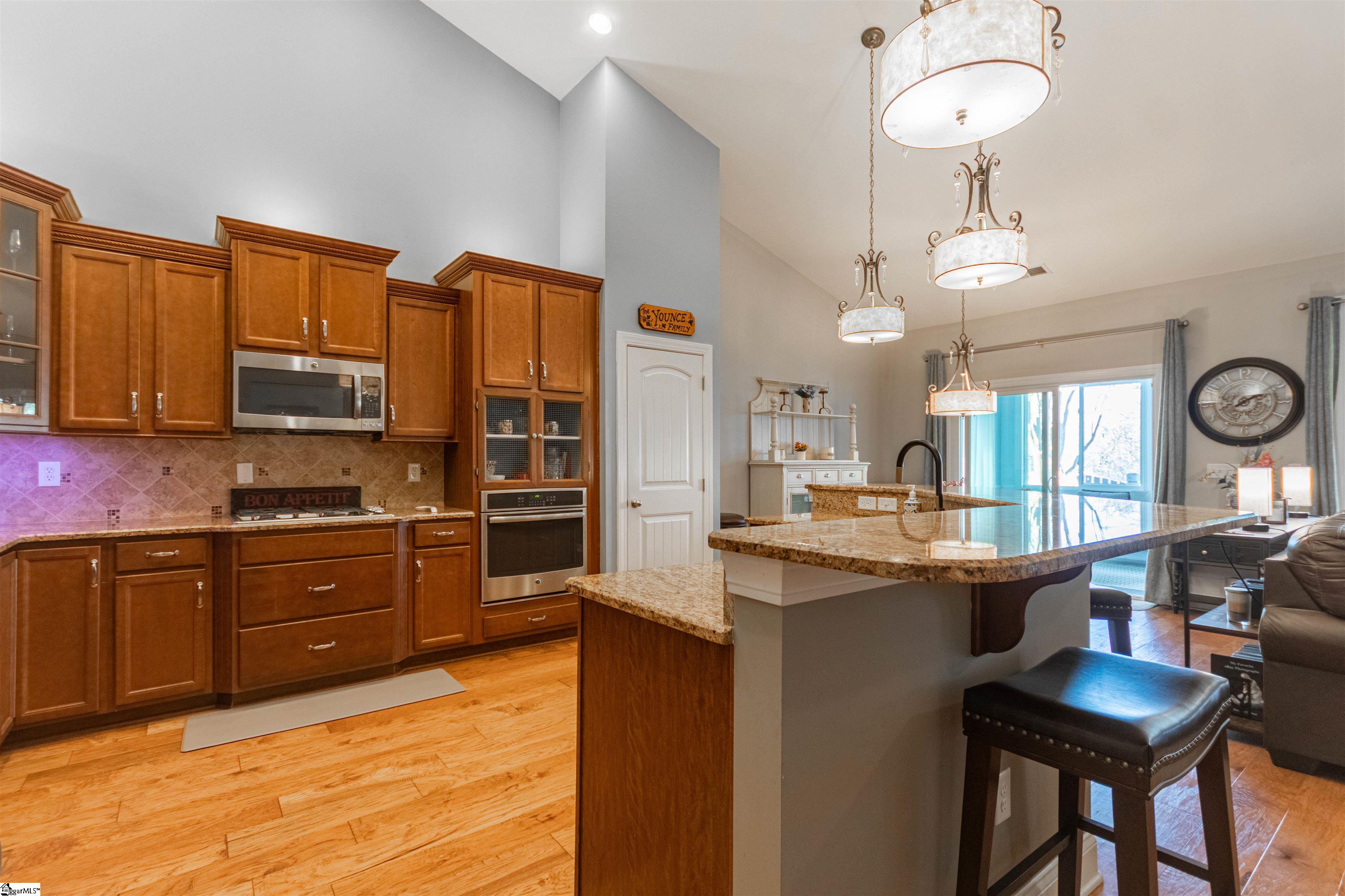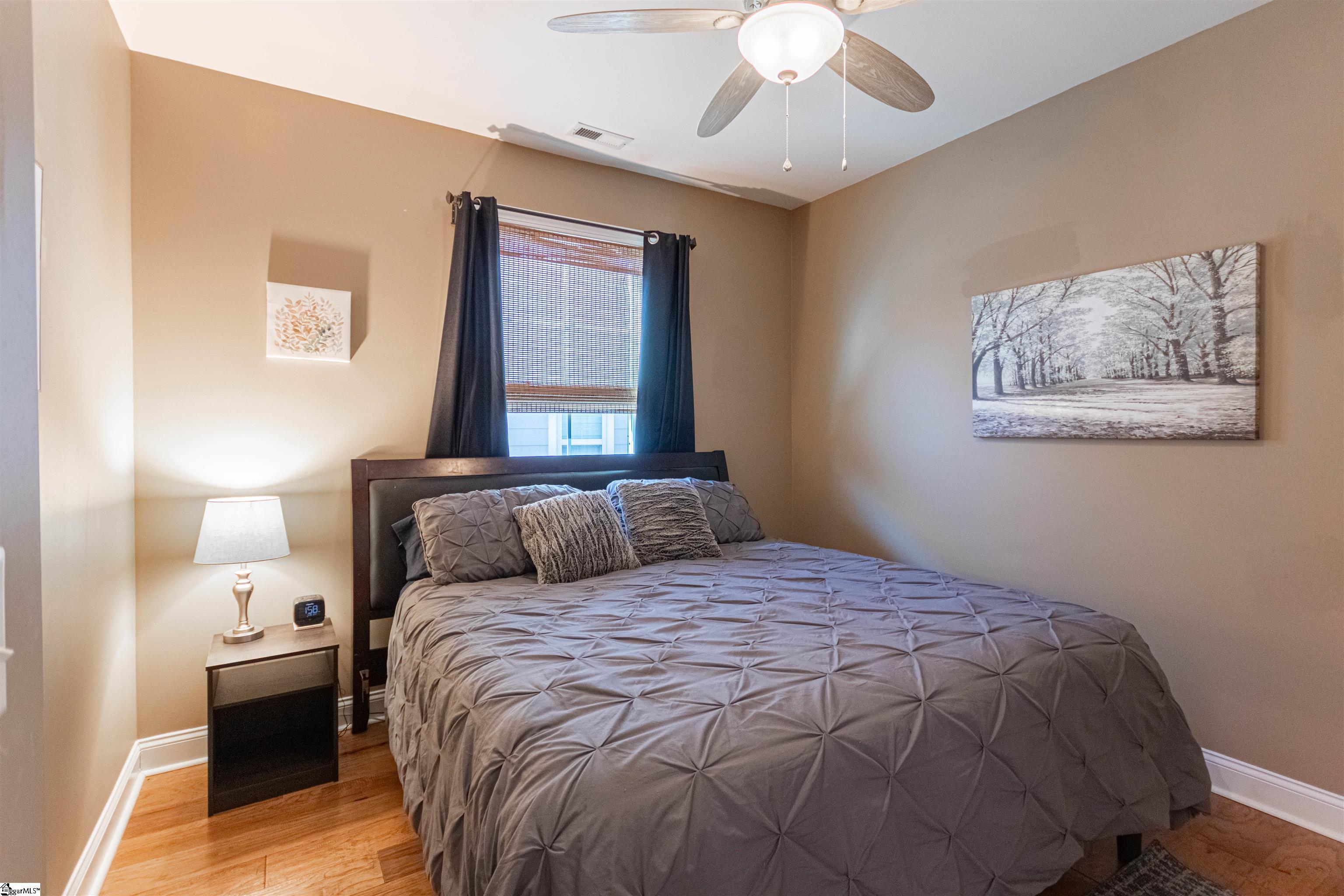 This beautiful Craftsman-style home is located in the desirable Cove at Butler Springs subdivision and offers a thoughtfully designed, open floor plan filled with charm and functionality. The heart of the home is the gourmet kitchen, featuring granite countertops, stainless steel appliances, a vaulted ceiling, ample cabinetry with pull-out trays beneath the cabinets, over/under lighting and generous workspace, all flowing seamlessly into the main living areas, making it perfect for everyday living and entertaining. The living room is warm and inviting with a gas log fireplace, complemented by high ceilings, hardwood floors throughout the main level, and wide walkways throughout the main living spaces. The main level includes a large, spacious primary suite featuring a walk-in closet with built-in shelving and a well-appointed en suite bath with a garden tub, dual sink vanity, and separate shower. An additional bedroom is also located on the main level; there is also a home office that could be used as an extra bedroom and features elegant French doors. Tile flooring is featured in the bathrooms and laundry room. Upstairs, you’ll find a versatile flex room, a third bedroom, and a full bathroom that can be closed off to create a private guest or in-law suite. Outdoor living is just as inviting with a fenced backyard, the property line extends beyond the fence and a spacious sunroom—ideal for relaxing or hosting gatherings year-round. If the character and layout of the home don’t win you over, the location certainly will, just minutes from downtown Greenville, the Swamp Rabbit Trail, shopping, restaurants, parks, and more. A nearby pedestrian path leads directly to Butler Springs Park, where you’ll find a walking trail, baseball fields, tennis courts, and a playground—ideal for outdoor recreation and community connection.