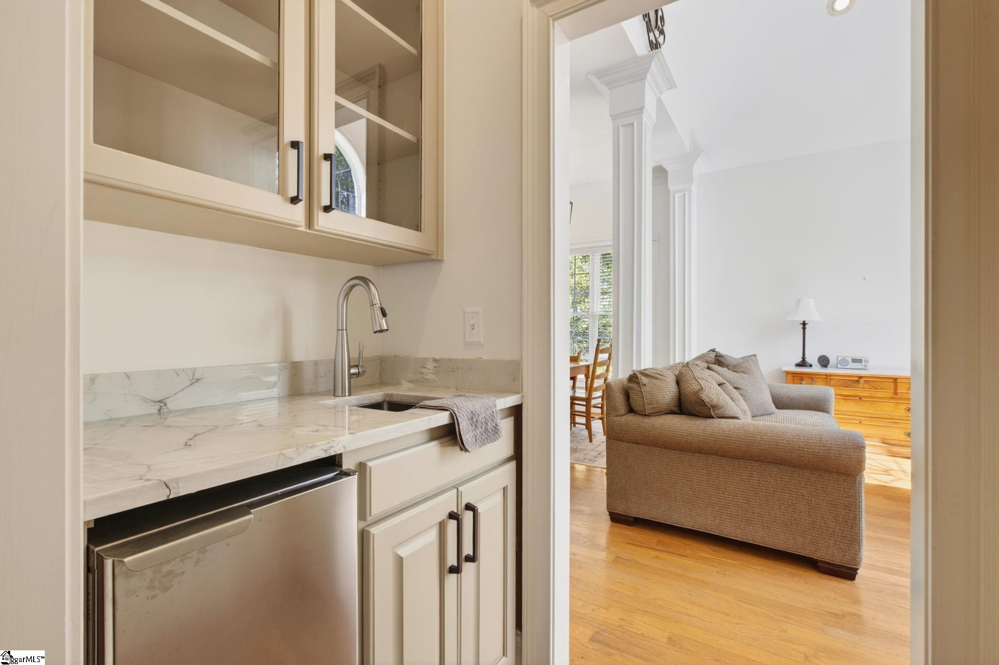 Welcome to a premier home in the highly sought-after Sycamore Ridge community of Simpsonville, where timeless elegance meets exceptional functionality. This stunning residence is thoughtfully designed and loaded with custom upgrades, offering both luxury and incredible value. From the moment you step into the grand foyer, you’re greeted by an inviting sense of sophistication. Just off the entry, a cozy music room provides the perfect retreat, while the formal dining room sits opposite, seamlessly connecting to a spacious family gathering room anchored by a warm and welcoming fireplace. The heart of the home is designed for both entertaining and everyday living. The gourmet kitchen features dual convection ovens, a gas cooktop, ice maker, custom cabinetry, granite countertops, and a stainless steel farmhouse sink. An adjoining dining area flows into a charming Colonial-style keeping room—ideal for relaxing or hosting while staying connected to the kitchen. Just steps away, a large screened-in porch with beautiful Brazilian hardwood flooring offers a serene outdoor living space, perfect for year-round enjoyment. The main-level owner’s suite is a private sanctuary, complete with a luxurious ensuite bath featuring a garden tub, walk-in shower, and spacious walk-in closet. Upstairs, you’ll find two generously sized bedrooms, each with access to full baths, along with an expanded bonus room offering flexibility for recreation or additional living space. The fully finished basement elevates this home to another level, featuring a complete entertainment lounge with bar seating, granite countertops, wine cooler, refrigerator, ice maker, sink, and a large gathering area that opens to a covered patio. Additional lower-level highlights include a workout room, office complex, guest suite with full bath, playroom, and multiple storage areas—including one equipped with double ovens and custom cabinetry. Modern conveniences abound, including a whole-house tankless water system with circulating pump for instant hot water, and a new Generac whole-house generator for peace of mind. This exceptional property offers refined living, expansive space, and unmatched amenities—all in one of the area’s most desirable neighborhoods.