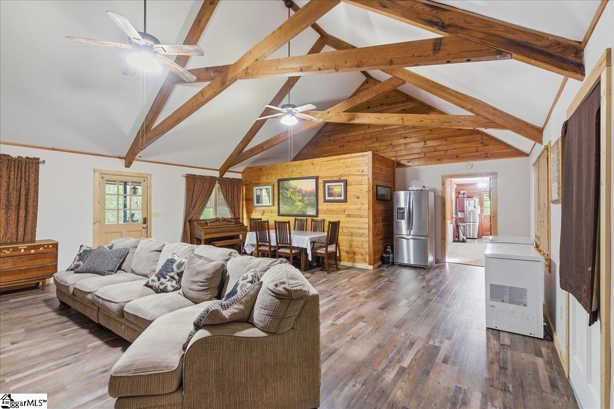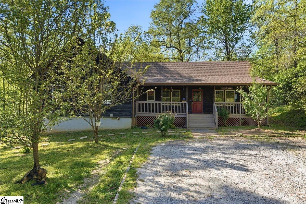 Tucked among the trees on a serene 1.07-acre homesite, this rustic 3-bedroom, 2-bath retreat offers an exceptional blend of privacy, natural beauty, and freedom—with no HOA to limit your lifestyle. Ideally located just off scenic Highway 11 and minutes from Table Rock State Park, this property places you at the doorstep of some of the Upstate’s most treasured outdoor adventures. A welcoming front porch, perfectly suited for rocking chairs and quiet mornings, leads into a stunning vaulted great room filled with natural light and anchored by a charming wood-burning stove—creating an inviting space for both entertaining and everyday living. Just beyond, a cozy den with custom built-ins provides the perfect setting for displaying books and treasured pieces while offering a warm, intimate retreat. The kitchen is well-appointed with a full appliance package and easy flow for gathering and hosting. The home features three generously sized bedrooms and two full baths, including one with a deep soaker tub designed for relaxation. Outdoor living is equally captivating, with a large wraparound deck overlooking natural landscaping rich with native trees and shrubs—an ideal backdrop for entertaining, play, or simply enjoying the peaceful surroundings. The property is a true homesteader’s delight, boasting an abundance of fruit-producing trees including peaches, pears, plums, figs, and apples, along with a wild elderberry bush. Thoughtful upgrades and features add both comfort and peace of mind, including a generator hookup that services the home and well—ensuring continuous power and water—along with a supply of pre-cut wood ready for the stove. Major systems have been updated within the last five years, including the roof, HVAC, and gutters. Fiber optic internet is also available, offering the perfect balance of seclusion and connectivity. Whether you’re seeking a peaceful full-time residence or a refined mountain getaway, this inviting cabin delivers the best of both worlds—tranquil living surrounded by nature, paired with the modern comforts you need.