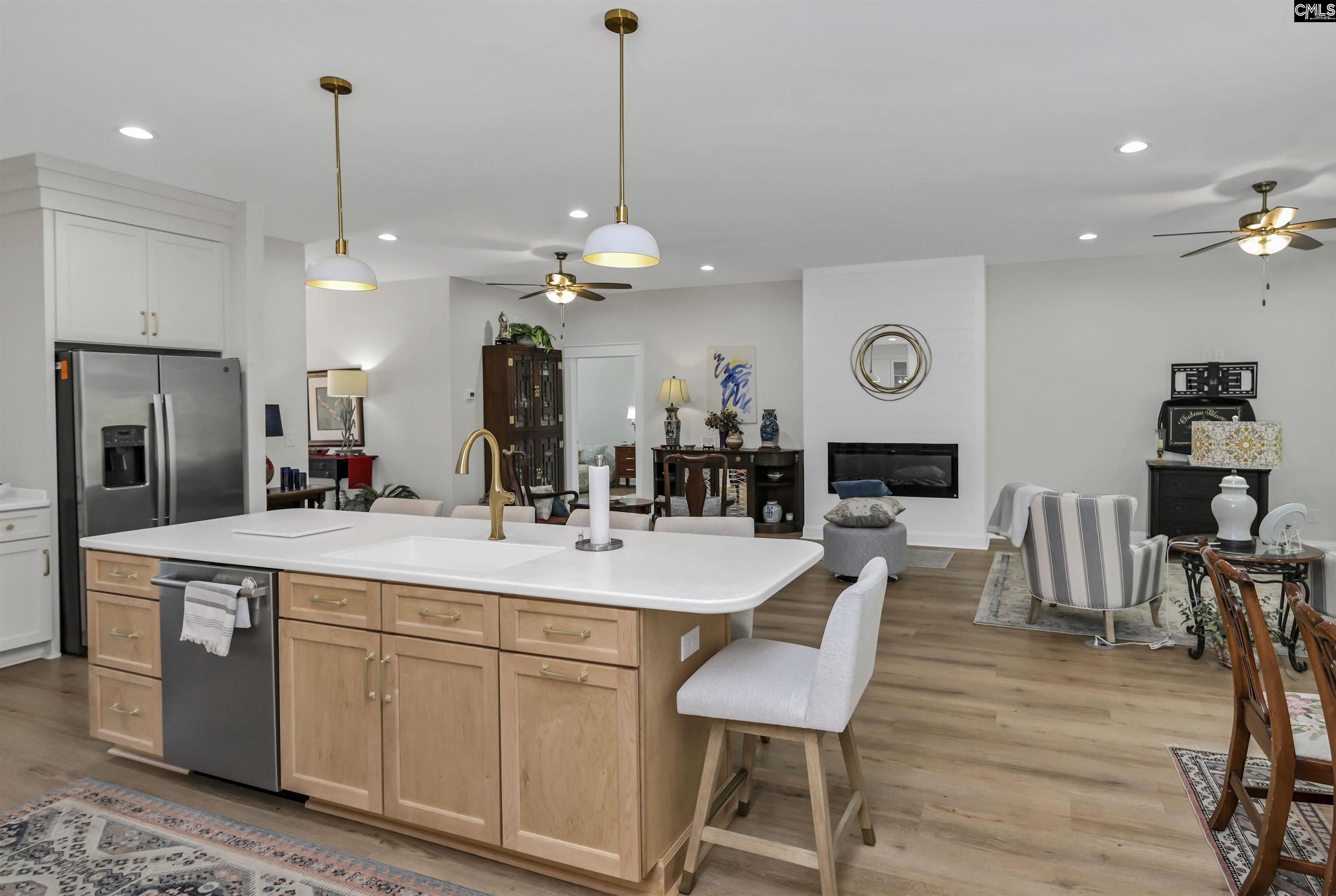Welcome to The Palms at Rocky Point, a highly sought-after lakefront community blending lifestyle, location, and low-maintenance living. This beautifully maintained 3 bedroom, 2 bathroom home showcases a bright, open-concept design with elevated finishes and thoughtfully curated spaces throughout.Step inside to find high ceilings, luxury flooring, and abundant natural light flowing through the main living area. The inviting living room centers around a sleek fireplace and connects seamlessly to the dining space and stunning kitchen. Designed with both style and function in mind, the kitchen features custom cabinetry, quartz countertops, a large center island with bar seating, stainless appliances, and modern lighting—perfect for everyday living and entertaining.A standout feature of the home is the presence of two staircases leading to the second floor, adding both convenience and architectural interest.The owner’s suite is a true retreat, complete with a spa-like en suite bath featuring a walk-in shower, soaking tub, double vanity, and an expansive walk-in closet with custom built-ins. Two additional bedrooms provide flexibility for guests, a home office, or hobbies.Enjoy the outdoors year-round from the screened-in porch overlooking a private, wooded backdrop, creating a peaceful setting rarely found at this price point. The backyard provides additional space for gardening or relaxing while maintaining a sense of privacy.As part of this lakefront community, residents enjoy access to a community boat ramp, boat storage, pool, and clubhouse, making it easy to embrace the Lake Murray lifestyle. Conveniently located just minutes from downtown columbia, Irmo, and Lexington, this home balances tranquility with accessibility.Zoned for award-winning Lexington/Richland 5 schools, this is a rare opportunity to own in one of the area’s most desirable communities. Disclaimer: CMLS has not reviewed and, therefore, does not endorse vendors who may appear in listings.