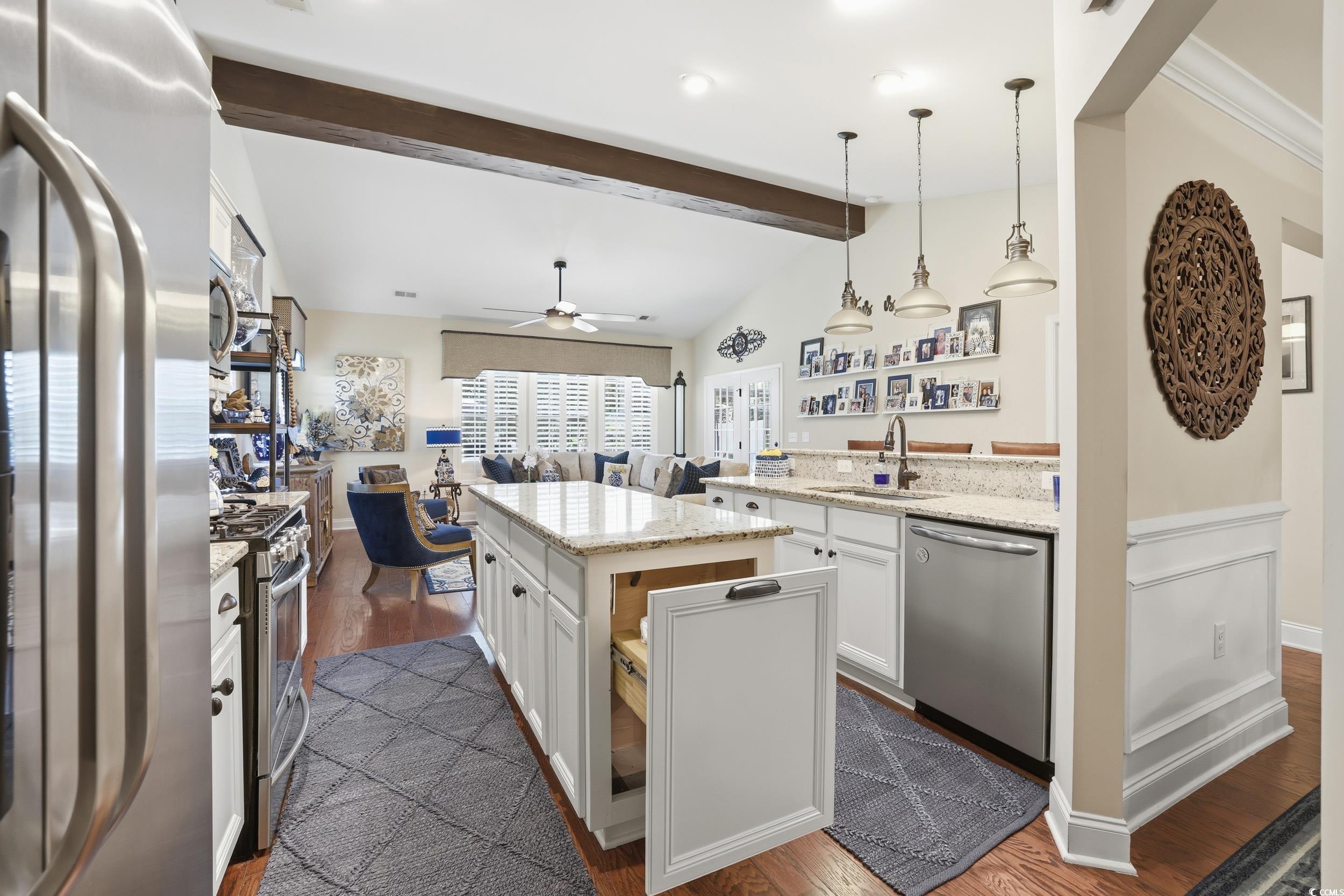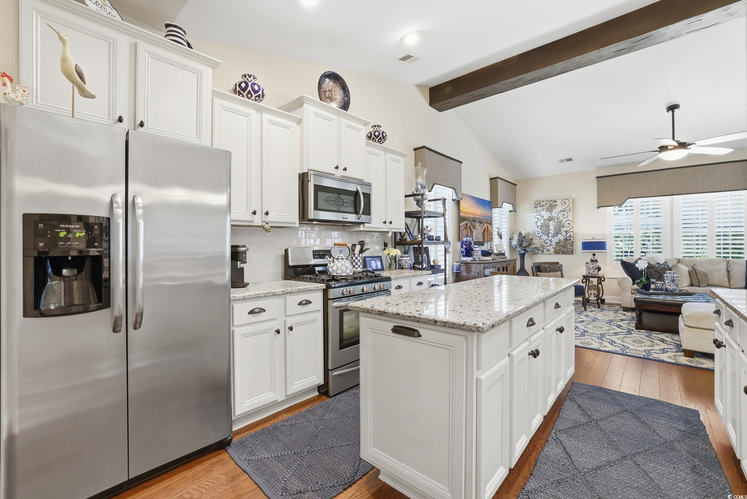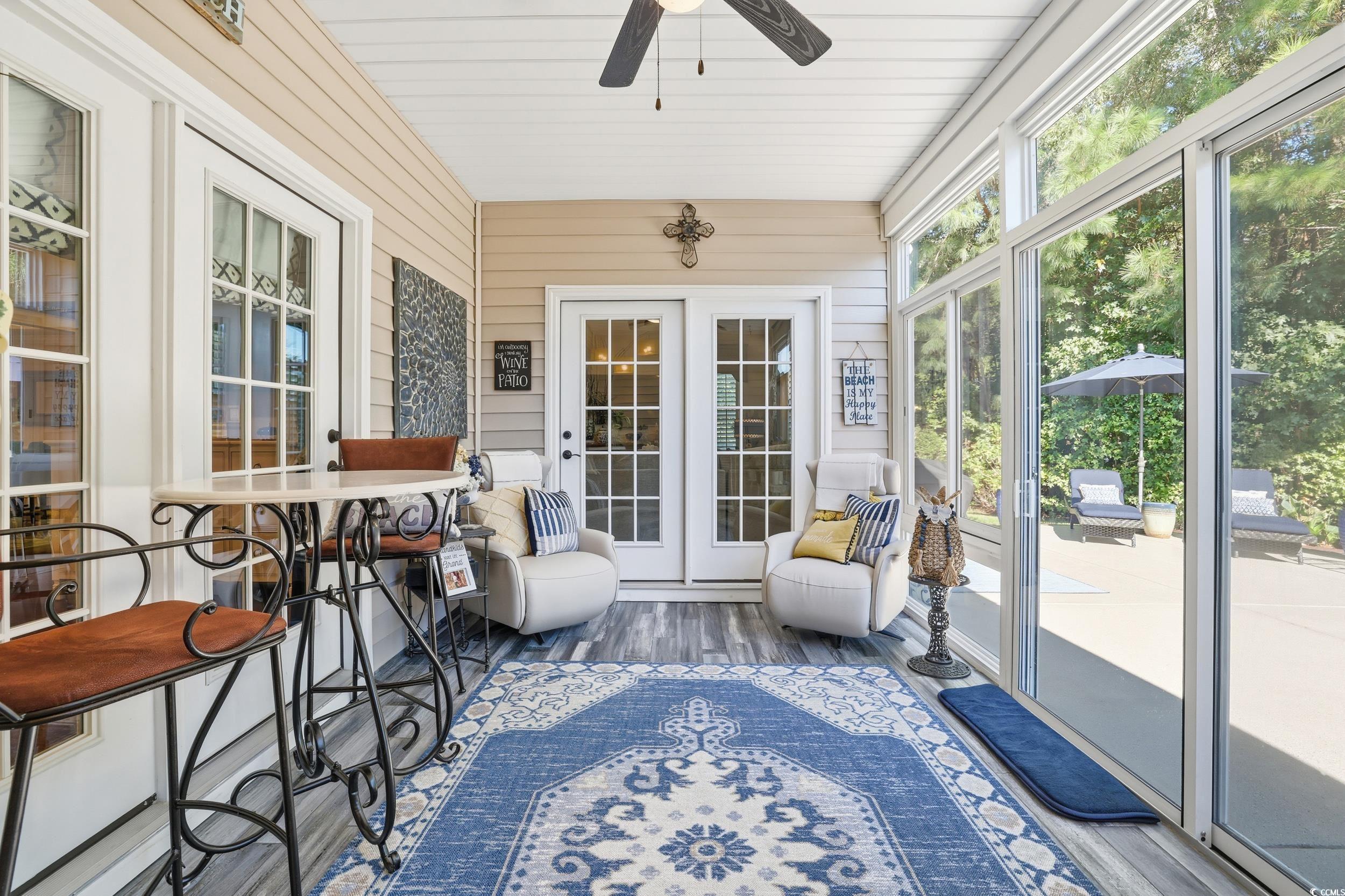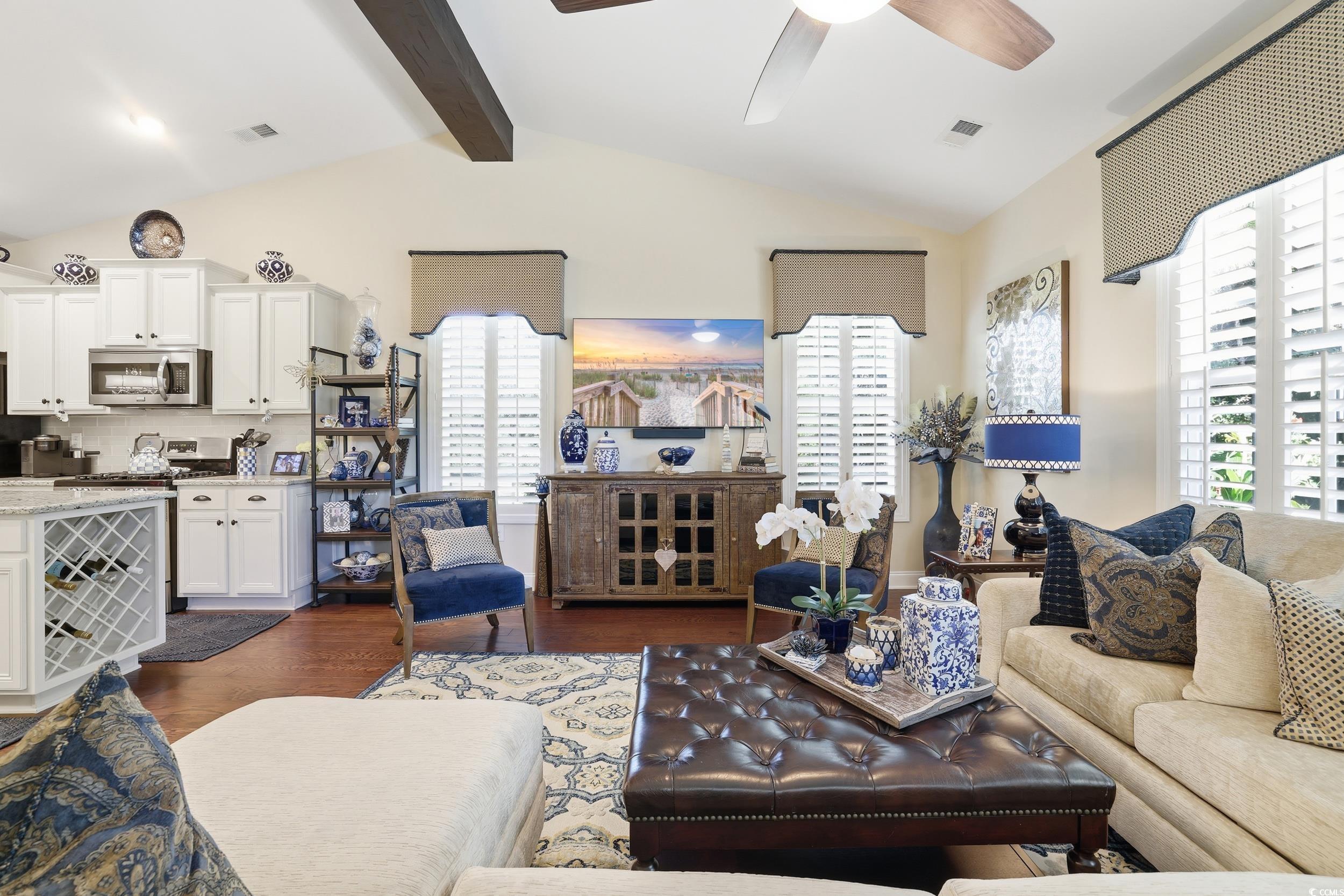 Open house, Saturday, January 10, 1-3pm. Welcome to 140 Parmelee Drive in Murrells Inlet, SC, where timeless charm meets modern luxury. This meticulously updated home showcases exceptional craftsmanship and thoughtful design, blending style, comfort, and functionality in every detail. Step inside to discover an open and inviting layout highlighted by hardwood flooring throughout the first floor. The beautifully updated kitchen features an extended island perfect for entertaining, while the dining area flows seamlessly for gatherings both large and small. The spacious primary suite offers a peaceful escape, featuring a renovated bathroom, custom wood shelving in the walk-in closet, and elegant recessed lighting that creates a warm, refined atmosphere. Enjoy the convenience of a tankless hot water heater, energy-efficient plantation shutters, and new ceiling fans throughout. Every improvement has been thoughtfully selected for comfort and ease of living. From the custom beam in the living room to the 5-inch baseboards and upgraded window trim, this home radiates quality and character at every turn. Unwind in the enclosed lanai with updated tile flooring, or step out onto the extended patio to enjoy your private, beautifully landscaped yard, complete with stylish curb scaping and a fence. Additional features include upgraded faucets in every bathroom, custom cabinetry in the laundry room, a new keyless/touchpad entry system, and convenient walk-in attic storage. Offering three bedrooms and three full bathrooms, this turnkey residence has been thoughtfully enhanced for modern living and is ready for its next owner to appreciate the perfect balance of elegance and practicality.