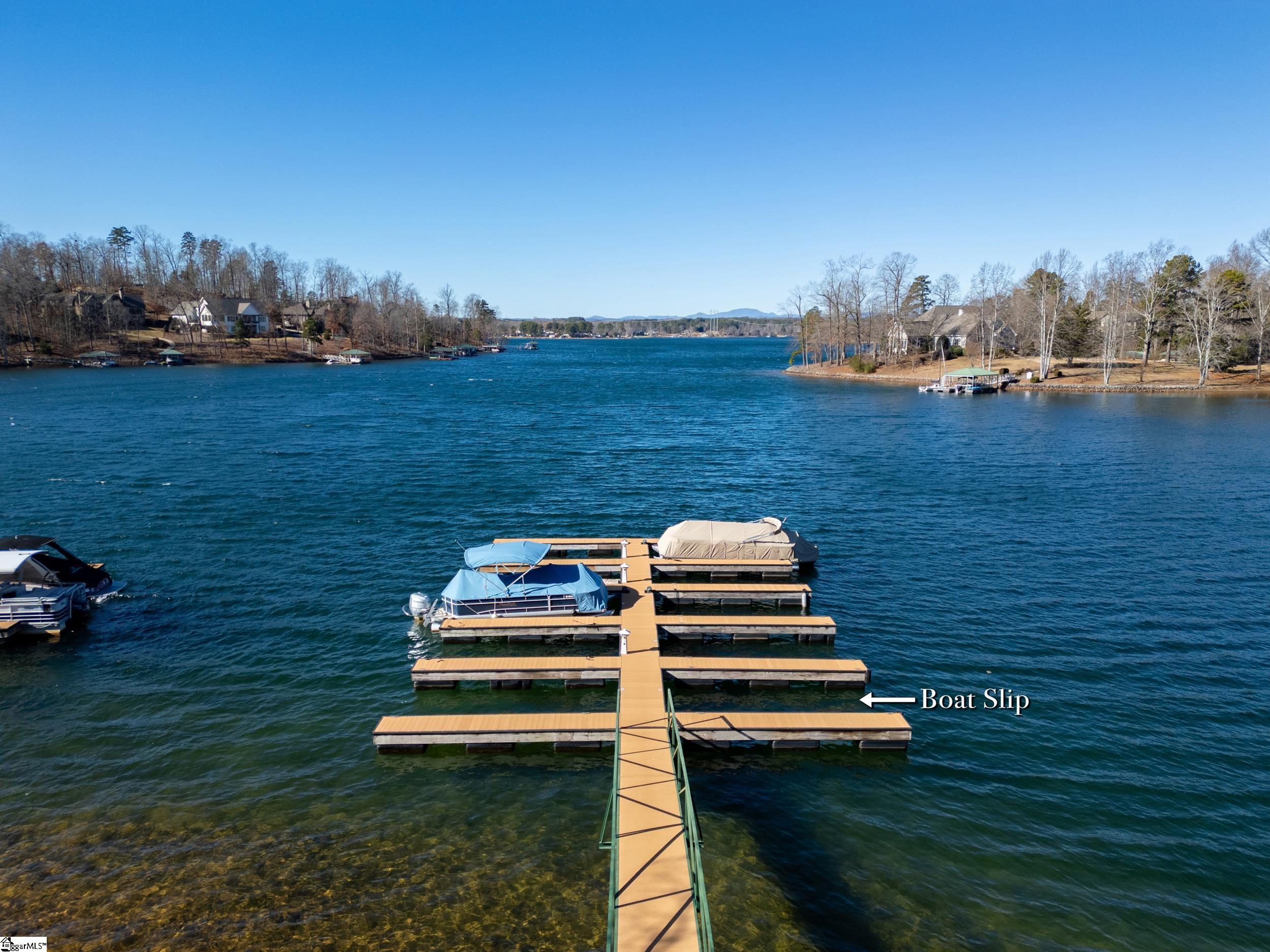 Welcome to the desirable Waterford Pointe community on Lake Keowee. This stunning community is conveniently located near Seneca, Clemson, and Greenville. The property boasts a substantial 2.22-acre corner lot and includes a deeded boat slip (I-82). Experience spacious and bright living with open and airy main-level spaces that offer breathtaking views of the lake and mountains throughout. The entertaining space is ample, featuring a large living room, a large keeping room, a formal dining area, and a breakfast nook. This home offers a fantastic layout for both owners and guests, featuring a split-bedroom floor plan. The luxurious main suite includes dual walk-in closets, dual sinks, and a custom tile shower with a zero threshold. The expansive living room is enhanced with built-ins and a gas fireplace, while the adjoining keeping room features a vaulted ceiling and large picture windows that showcase the long range views. The modern kitchen is updated with new appliances and granite countertops. Enjoy meals in the formal dining area, the breakfast nook, or al fresco on the screened porch. Outdoor entertaining options include a cozy screened porch, a large deck with automated shade screens, a patio area below, and a small fenced yard. Additional amenities include three guest bedrooms, one of which is currently used as an office, a full bath, a powder bathroom, and a laundry room with a sink. The home offers plenty of storage options, including a two-car garage with epoxy flooring, a walk-in pantry, a storage room just inside from the garage, and a 350+ square foot storage area below the main level. The deeded boat slip (I-82) is in deep water and is very easy to pull in and out of since there's no other dock on that side, adding to the property's appeal. Waterford Pointe includes sidewalks for leisurely strolling, two tennis/pickleball courts, a jr. olympic pool, a clubhouse, boat trailer storage, and a playground. This location is a mere 20 minutes from Clemson, less than one hour from Greenville, and under two hours from Asheville.