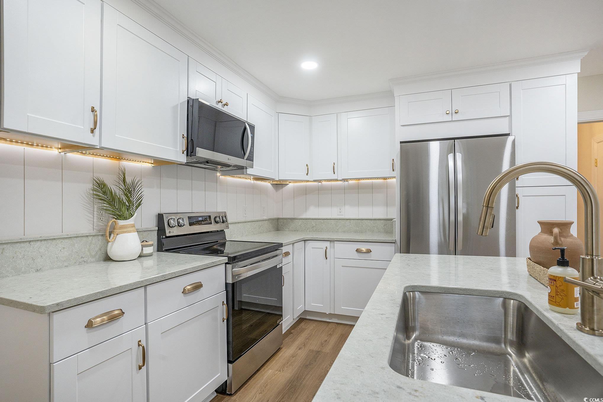 Welcome to true low-country southern tranquility!!! This perfectly proportioned home sits on an enormous corner lot adorned with towering pines and picturesque Live Oak trees. Located in historic Pawleys Island, Litchfield Country Club is surrounded by active Golf Courses and has a very mature feel with large lots where each and every home is uniquely defined by their own distinct characteristics. 1401 Crooked Oak, is a perfect blend of old meets new!!! Freshly renovated in 2025, everything has been touched, new roof, new windows, new HVAC, new luxury vinyl plank flooring, kitchen cabinets, quartz counter tops, stainless steel appliances, custom bathrooms, customs lighting and plumbing fixtures and the list goes on. This home is move in ready in every sense of the word. Located just 45 minutes south of Myrtle Beach and MYR international airport, 10 minutes from historic Huntington Beach State Park, 15 minutes from Historic downtown Georgetown, and hour and a half from Charleston SC and just a short drive to all Grand Strand area beaches. There is just something special about Pawleys Island and there is definitely something special about this house!!! Do not delay, a home like this will not last long.