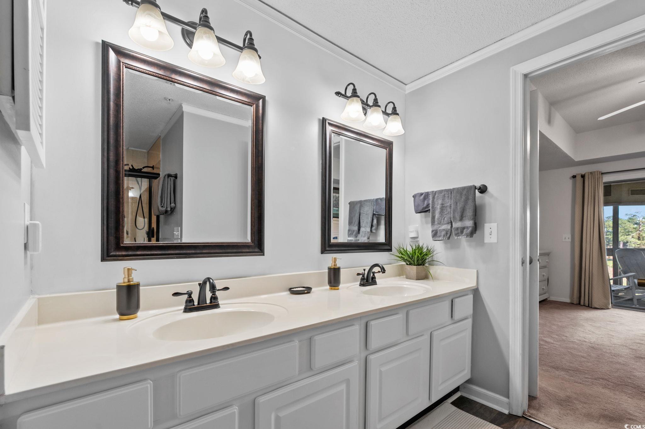 Welcome to coastal living in the gated Tidewater Plantation community. This top-floor, 2-bedroom, 2-bath condo offers sweeping golf course vistas. Step inside to an open-concept layout bathed in natural light. The living, dining, and kitchen areas, with stainless steel appliances, granite counters, and a breakfast bar made for gathering. The primary suite includes a tray ceiling, a walk-in closet, direct access to the screened porch, and a stylish en-suite bathroom with dual sinks and a walk-in shower. On your screened porch, start your morning watching players tee off on the fairway directly ahead an ideal setting for golf lovers. Tidewater Plantation is a resort-style community offering amenities including golf, a clubhouse, outdoor and indoor pools, a fitness center, tennis courts, and a private oceanfront beach cabana. Whether you?re seeking a vacation retreat, investment property, or primary residence, this unit blends comfort, convenience, and scenic living.
