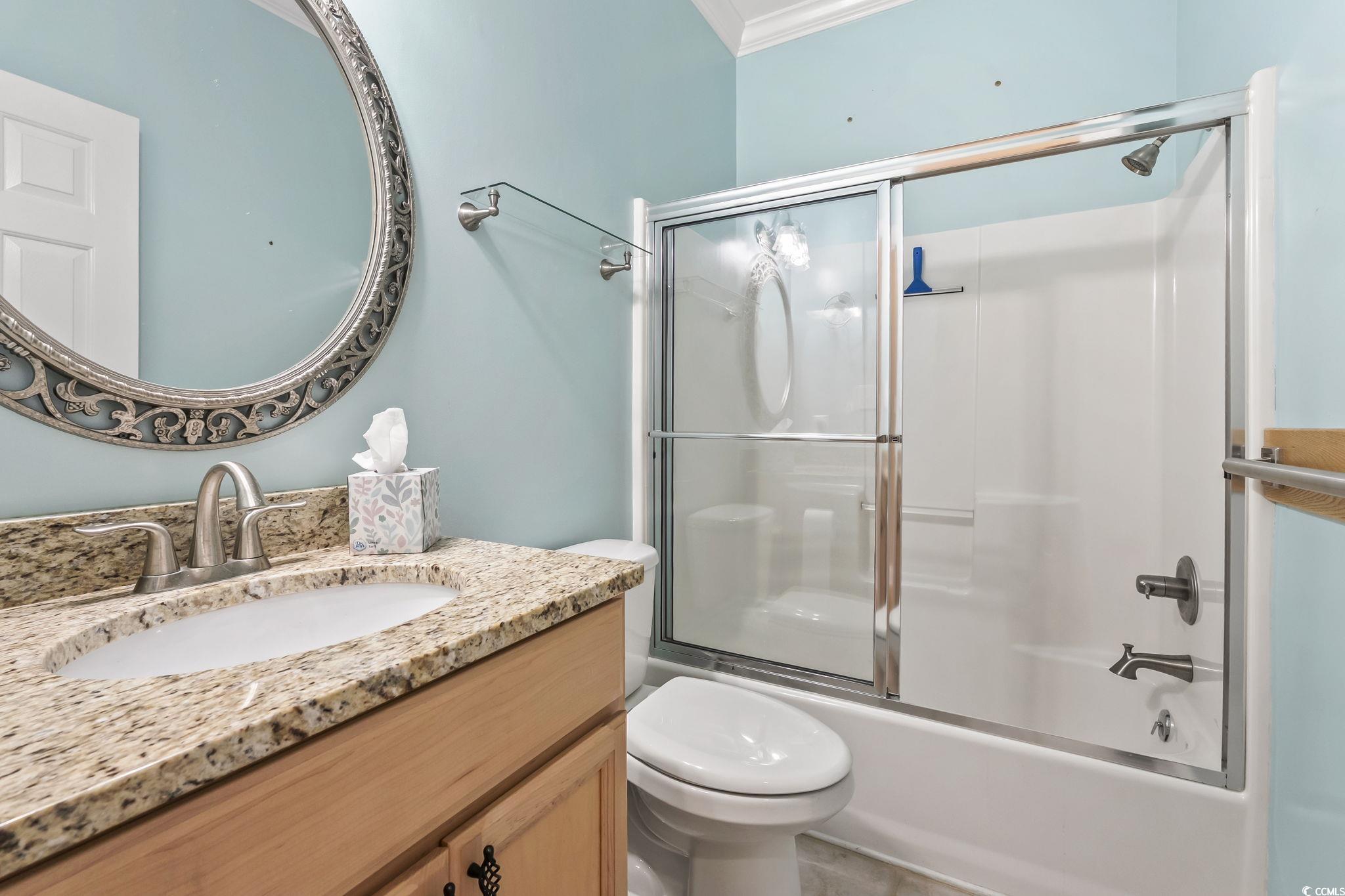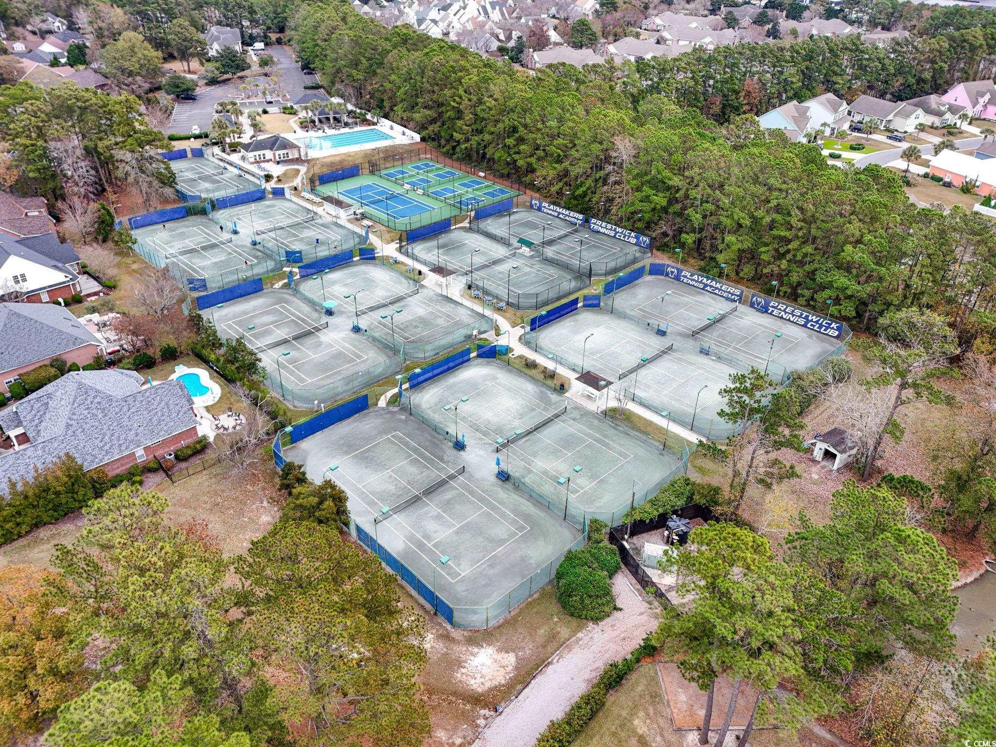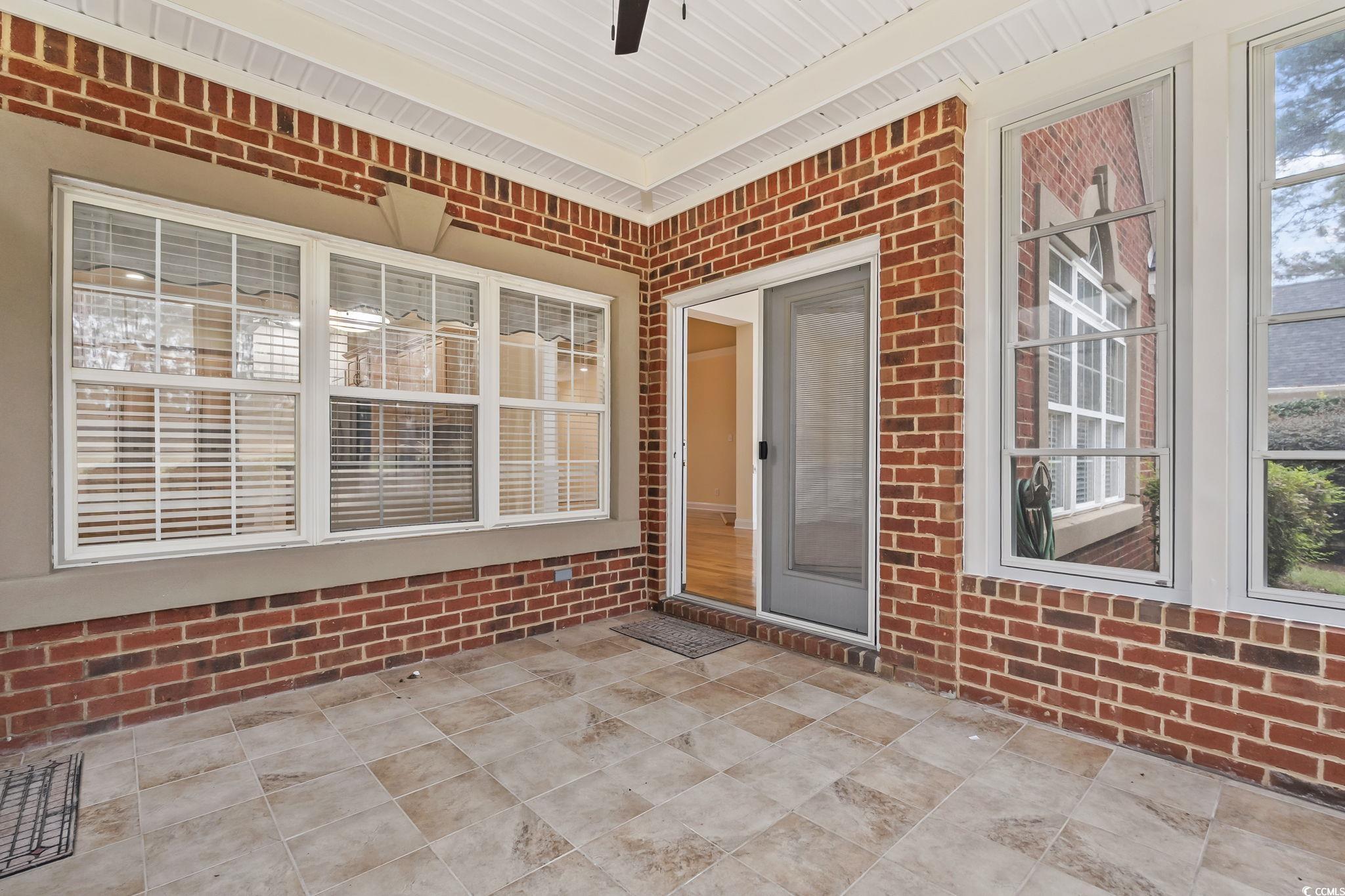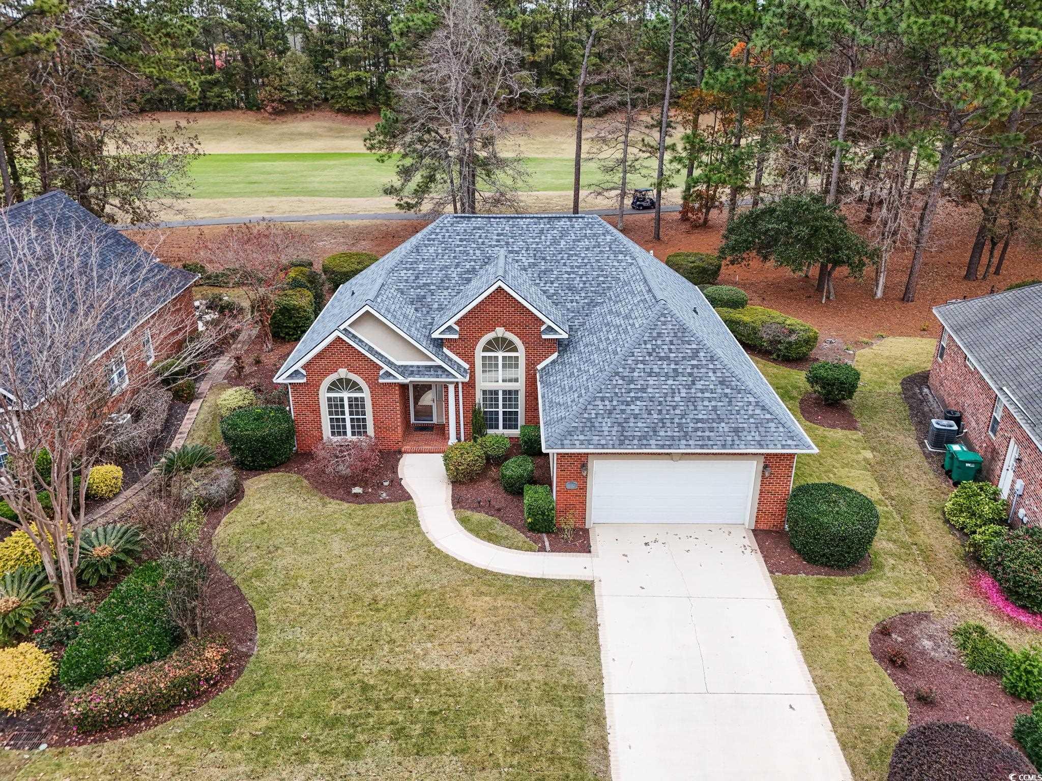 3-Bedroom Brick Home on Prestwick Golf Course Near Myrtle Beach! Looking for a single-level brick home with golf course views, tall ceilings, and a sunroom just minutes from the beach? This 3-bedroom, 2-bath home in the gated Prestwick community offers peaceful mornings, bright living spaces, and resort-style amenities all around you. Inside, the layout feels open and relaxed with hardwood floors, vaulted ceilings, and large windows that bring in natural light. From the foyer, the space flows into a generous living room and dining area, leading to a well-planned kitchen with granite counters, stainless steel appliances, abundant cabinet storage, and an adjoining breakfast nook. Beyond the kitchen, the sunroom and enclosed porch look out over the fairway, creating a favorite spot for quiet coffee moments, afternoon reading, and taking in the beauty of the course. The primary bedroom is set apart for comfort and privacy, featuring a walk-in closet and a bath with double sinks, granite counters, soaking tub, and walk-in shower. Two additional bedrooms and two full baths are located on the opposite side of the home, giving everyone their own space. A laundry room and attached 2-car garage add daily convenience, while mature landscaping and calm surroundings create a feeling of privacy. Living here means enjoying Prestwick's Jr. Olympic-sized swimming pool, cabana, tennis and pickleball courts, premium cable and internet, recycling and yard debris pickup, and 24-hour security guards, all included in the HOA. The award-winning Pete Dye-designed golf course and the community tennis stadium also offer separate membership opportunities. This home sits close to everything, including Myrtle Beach State Park, Market Common, beaches, restaurants, shopping, and major routes for easy travel. The combination of location, views, brick construction, single-level living, and a sunroom creates a special place to call home. Don't let this opportunity pass by. Schedule your showing appointment today. Buyer to verify all measurements.