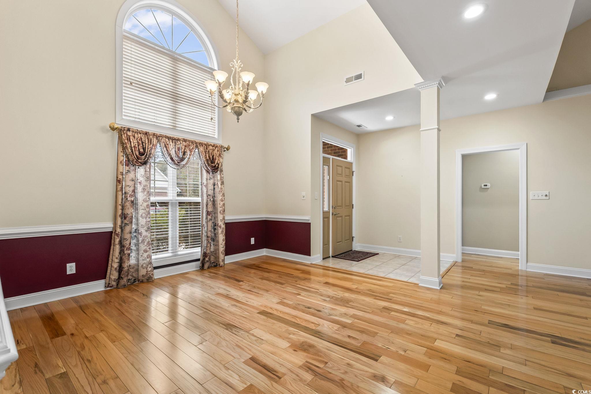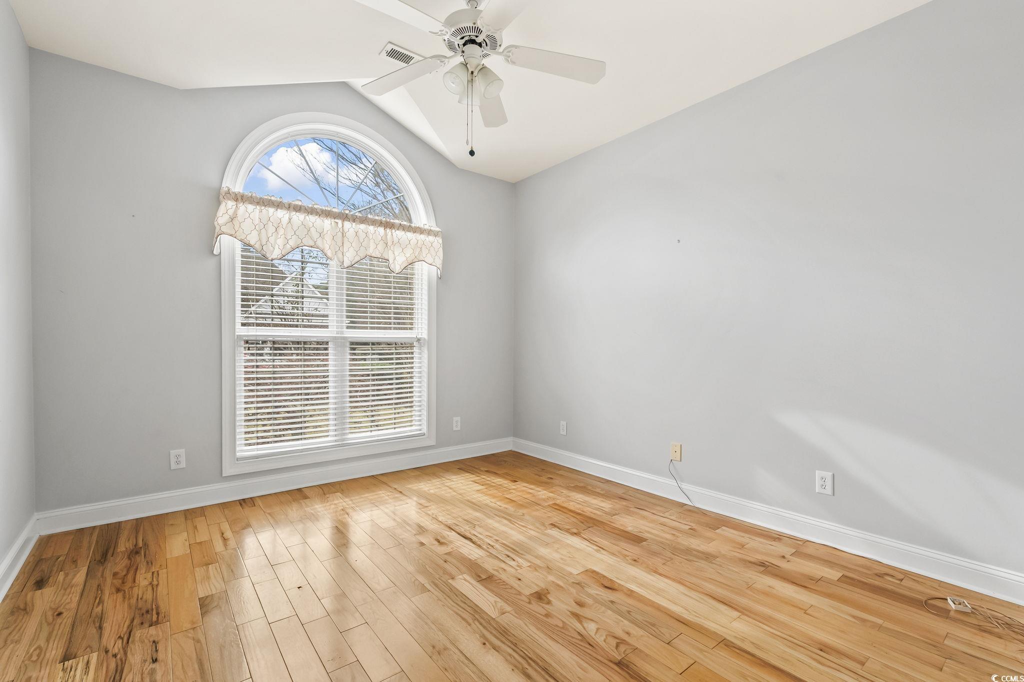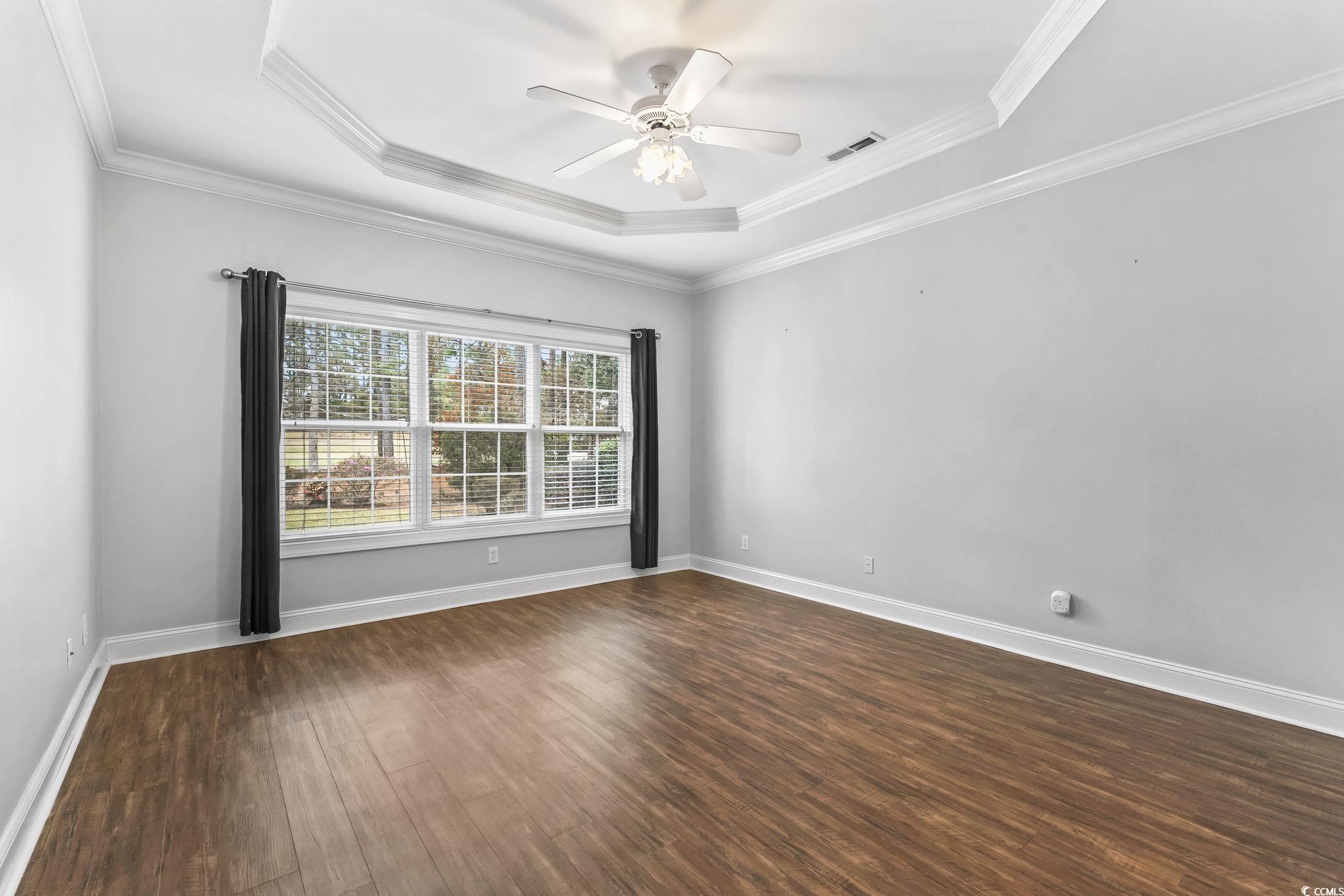 3-Bedroom Brick Home on Prestwick Golf Course Near Myrtle Beach! Looking for a single-level brick home with golf course views, tall ceilings, and a sunroom just minutes from the beach? This 3-bedroom, 2-bath home in the gated Prestwick community offers peaceful mornings, bright living spaces, and resort-style amenities all around you. Inside, the layout feels open and relaxed with hardwood floors, vaulted ceilings, and large windows that bring in natural light. From the foyer, the space flows into a generous living room and dining area, leading to a well-planned kitchen with granite counters, stainless steel appliances, abundant cabinet storage, and an adjoining breakfast nook. Beyond the kitchen, the sunroom and enclosed porch look out over the fairway, creating a favorite spot for quiet coffee moments, afternoon reading, and taking in the beauty of the course. The primary bedroom is set apart for comfort and privacy, featuring a walk-in closet and a bath with double sinks, granite counters, soaking tub, and walk-in shower. Two additional bedrooms and two full baths are located on the opposite side of the home, giving everyone their own space. A laundry room and attached 2-car garage add daily convenience, while mature landscaping and calm surroundings create a feeling of privacy. Living here means enjoying Prestwick's Jr. Olympic-sized swimming pool, cabana, tennis and pickleball courts, premium cable and internet, recycling and yard debris pickup, and 24-hour security guards, all included in the HOA. The award-winning Pete Dye-designed golf course and the community tennis stadium also offer separate membership opportunities. This home sits close to everything, including Myrtle Beach State Park, Market Common, beaches, restaurants, shopping, and major routes for easy travel. The combination of location, views, brick construction, single-level living, and a sunroom creates a special place to call home. Don't let this opportunity pass by. Schedule your showing appointment today. Buyer to verify all measurements.