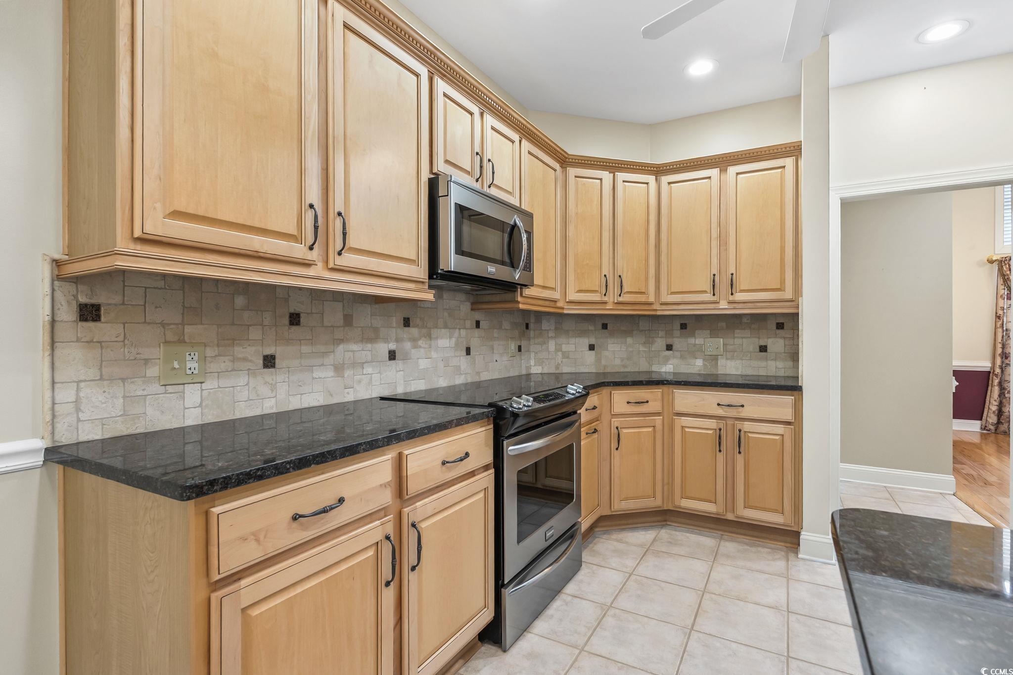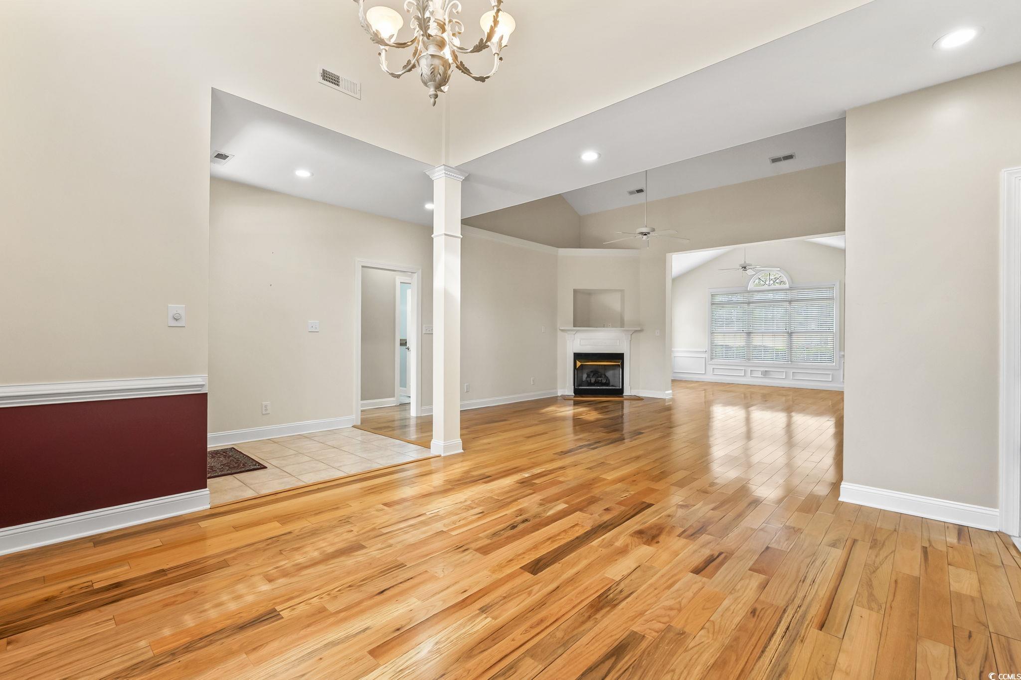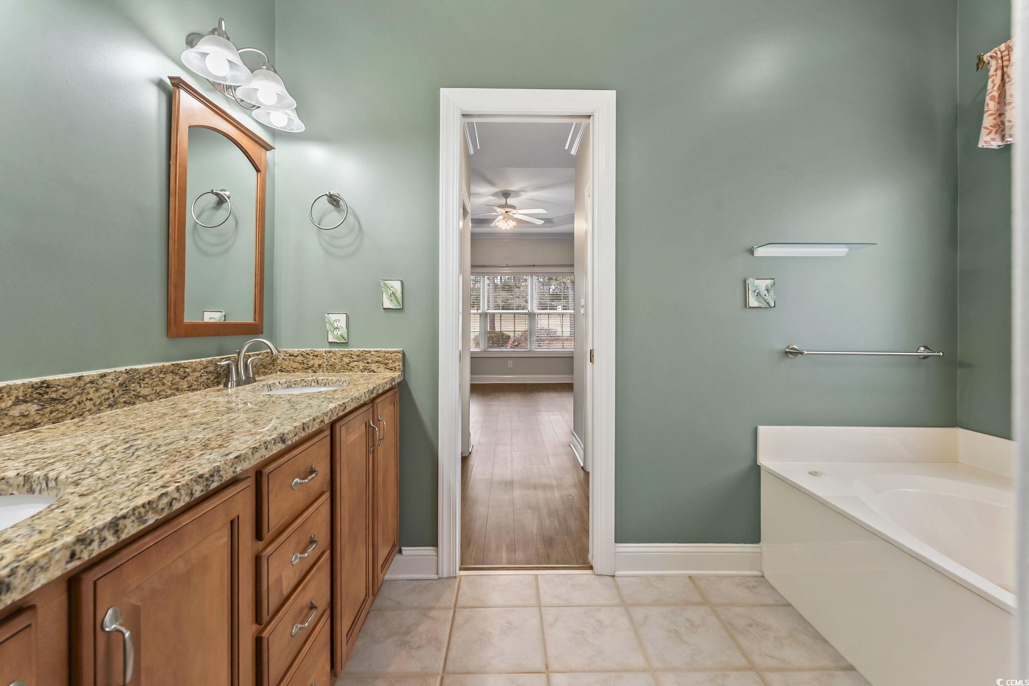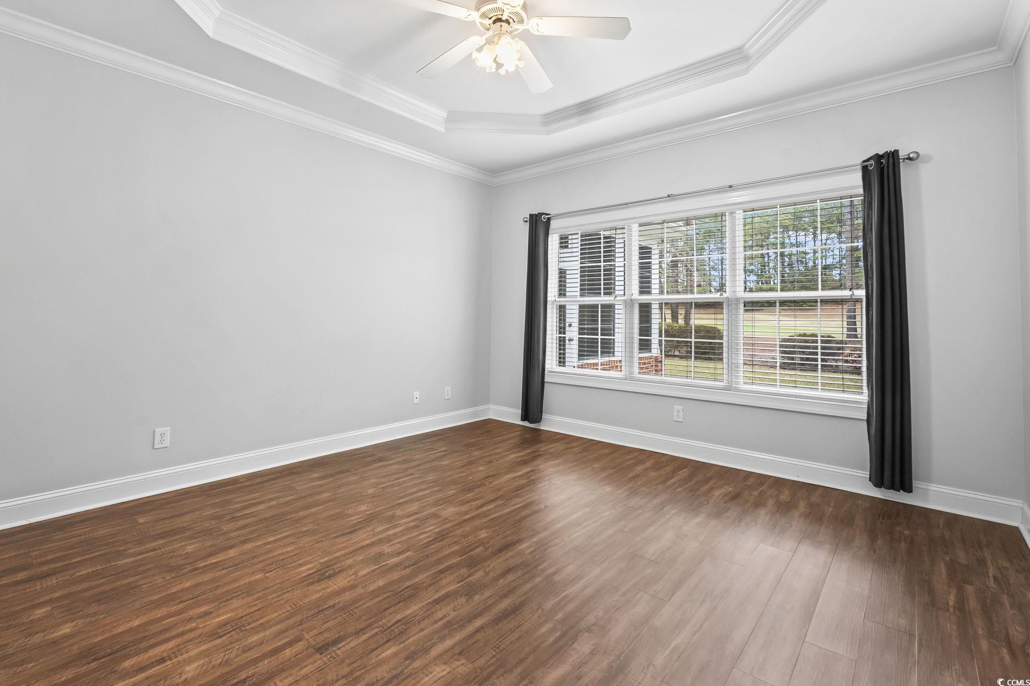 3-Bedroom Brick Home on Prestwick Golf Course Near Myrtle Beach! Looking for a single-level brick home with golf course views, tall ceilings, and a sunroom just minutes from the beach? This 3-bedroom, 2-bath home in the gated Prestwick community offers peaceful mornings, bright living spaces, and resort-style amenities all around you. Inside, the layout feels open and relaxed with hardwood floors, vaulted ceilings, and large windows that bring in natural light. From the foyer, the space flows into a generous living room and dining area, leading to a well-planned kitchen with granite counters, stainless steel appliances, abundant cabinet storage, and an adjoining breakfast nook. Beyond the kitchen, the sunroom and enclosed porch look out over the fairway, creating a favorite spot for quiet coffee moments, afternoon reading, and taking in the beauty of the course. The primary bedroom is set apart for comfort and privacy, featuring a walk-in closet and a bath with double sinks, granite counters, soaking tub, and walk-in shower. Two additional bedrooms and two full baths are located on the opposite side of the home, giving everyone their own space. A laundry room and attached 2-car garage add daily convenience, while mature landscaping and calm surroundings create a feeling of privacy. Living here means enjoying Prestwick's Jr. Olympic-sized swimming pool, cabana, tennis and pickleball courts, premium cable and internet, recycling and yard debris pickup, and 24-hour security guards, all included in the HOA. The award-winning Pete Dye-designed golf course and the community tennis stadium also offer separate membership opportunities. This home sits close to everything, including Myrtle Beach State Park, Market Common, beaches, restaurants, shopping, and major routes for easy travel. The combination of location, views, brick construction, single-level living, and a sunroom creates a special place to call home. Don't let this opportunity pass by. Schedule your showing appointment today. Buyer to verify all measurements.
