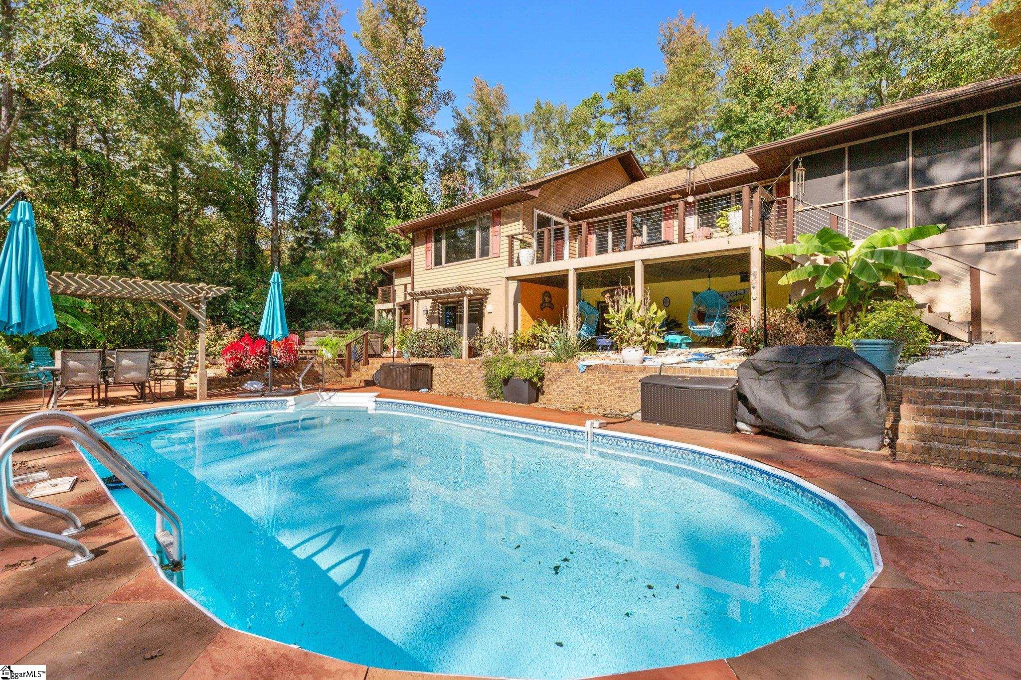 Prepare to say WOW as you step inside this unmatched lake Hartwell deep water property only minutes from Seneca and Clemson. The main living area boasts a vaulted ceiling with wood beams and a gorgeous stone fireplace. Enjoy the sunset views from the back deck that connects to the screened in patio. The large dining room flows perfectly into the fully stocked eat in kitchen, equipped with granite countertops, three fridges, a trash compactor, garbage disposal and so much more! The first large guest room is just off the kitchen and close to the first full bathroom. The laundry room has easy access to the main bedrooms and provides a walkway to the front driveway. Head to the other side of the main floor for the primary bedroom and separate guest suite. The primary bedroom has a private deck for solitude and enjoyment. The primary bathroom has his/hers sinks with custom mirrors and a separate lavatory and shower room. For the guest addition, completed in 2020, you will enjoy two large bedrooms with a shared split for A/C and heat plus a full bathroom. As you navigate the open stairwell, you enter a fabulous game room full of family entertainment activities and an extra bed for more guests! The full bath and large guest bedroom, plus plenty of closets, complete the living area side in the bottom level. Up two steps and tucked in the corner is a colorful and fully equipped party room! Ice maker, kegerator, grill, food warmer, and a coffee maker provide all of the essentials for the most amazing pool parties/lake days! Right off the keg room is the hot tub, outdoor shower, fire pit and pool area. The 16x32 pool is the perfect size for water games and there is plenty of outdoor seating for all of the guests in the fenced in yard. Follow around the pool to the greenhouse that has been used as yet another entertaining room. The possibilities are limitless at this home! Gentle slope down to the beach and dock, you will have no trouble navigating the walkway to the covered dock with the boat and jet skis. Or sit in the swings and have a glass of wine watching the sunset. A shed, an ATV, and full home generator also conveys with this home. Imagine waking up to the lake views at this saltwater pool home with EVERY detail for a permanent residence or income generating short term rental. Sold fully furnished and with brand new water toys (2020 Bennington pontoon, two 2024 Yamaha Jet skis and 2023 Kawasaki ATV) you can just bring your toothbrush or start renting it for maximum rental income right away!
