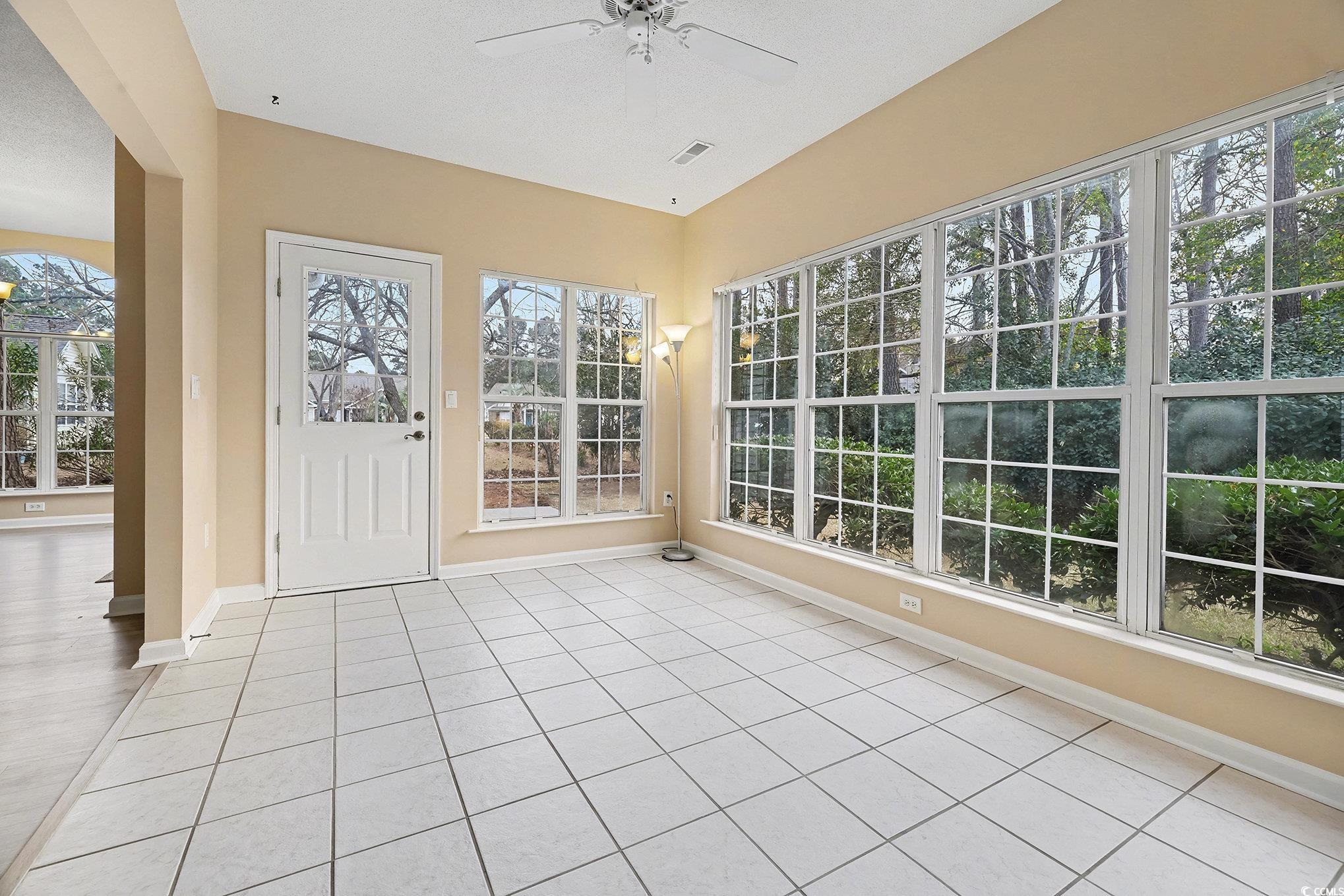 Welcome home to this beautifully maintained 4-bedroom, 3-bath residence, ideally situated on a premium cul-de-sac lot in the highly sought-after Southwood community. Thoughtfully updated and move-in ready, this home offers a perfect blend of comfort, style, and functionality. Recent improvements include stunning new granite countertops, new sink, freshly painted kitchen cabinets with updated hardware, a fully renovated primary bathroom featuring a new tile walk-in shower, vanity, lighting, floors and mirrors. Additional upgrades include brand-new carpet in all three downstairs bedrooms, new luxury vinyl plank flooring in the family room, dining room, hallways, and all bathrooms, along with fresh paint throughout the home. Step inside to a spacious family room with soaring 9-foot ceilings, seamlessly connected to the Carolina room and dining area—ideal for both everyday living and entertaining. The split-bedroom floor plan provides privacy and flexibility, while the bright kitchen and eat-in breakfast area offer excellent functionality and flow seamlessly into the dining room and family rooms yet are separate from them both. The primary suite is a true retreat, generously sized at 17’ x 16’ and highlighted by a wall of bay windows that fill the room with natural light. A large walk-in closet and the beautifully updated en-suite bath make this space especially inviting. Two additional bedrooms are conveniently located on the main level, while upstairs you’ll find a fourth bedroom with a full bath—perfect for guests, or a home office, or a bonus/playroom. Start your mornings in the sunroom or unwind in the peaceful backyard, offering natural beauty and plenty of space for gardening or outdoor entertaining. Enjoy the benefits of low HOA fees while taking advantage of two community swimming pools. Located just minutes from the beach, this home presents a rare opportunity to enjoy coastal living in one of the area’s most beloved neighborhoods.