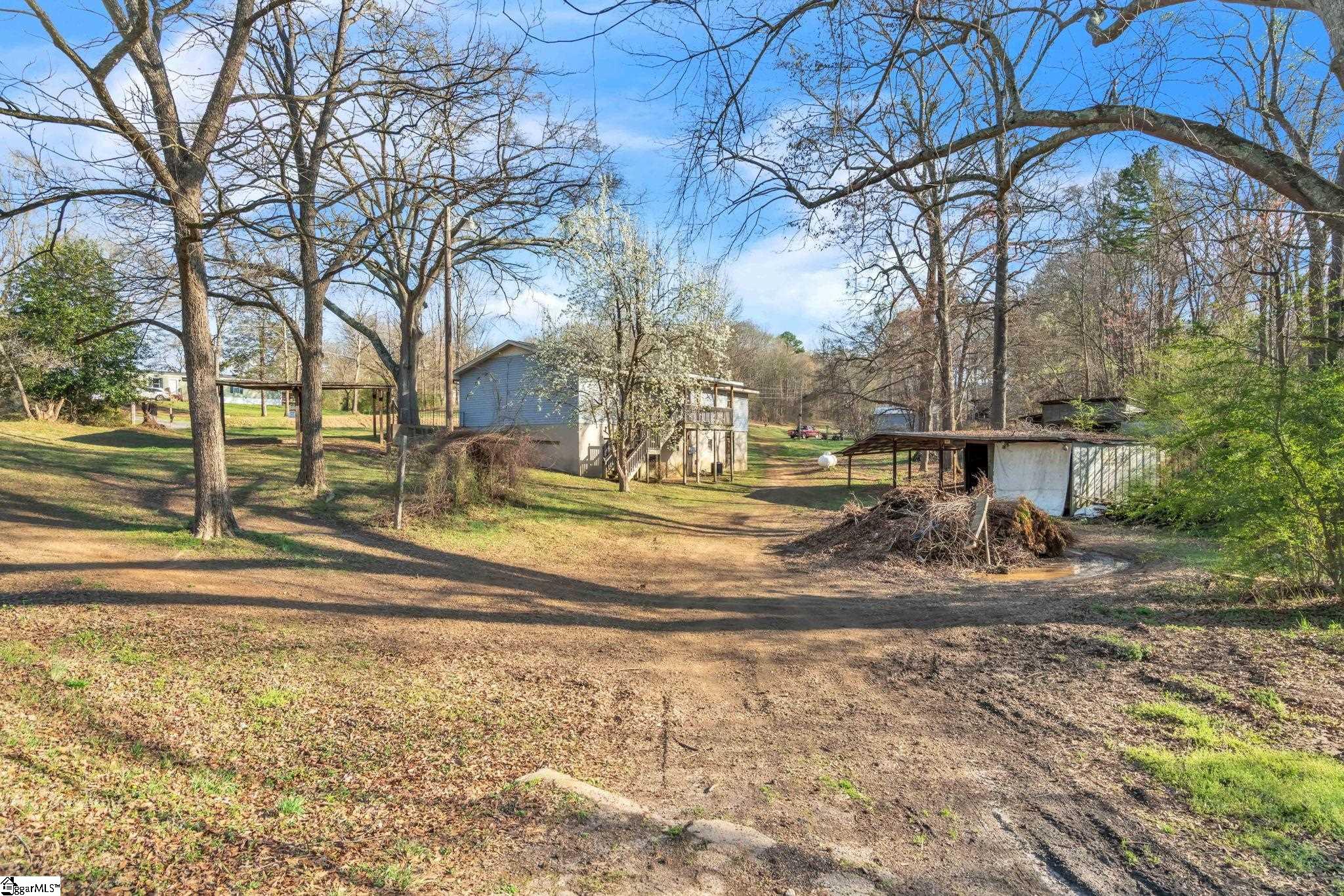 Opportunity awaits with this 3 bedroom, 2 bathroom home situated on a spacious corner lot with over an acre of land, just minutes from the rapidly growing downtown Woodruff area and the new BMW facility. Enjoy the convenience of nearby amenities while still experiencing the peace and privacy of a country setting. This property is a true fixer-upper with incredible potential for investors, renovators, or buyers looking to create their dream home. The main level features three bedrooms and one full bathroom, along with a large living room and spacious kitchen that offer a great foundation for updates and customization. Relax on the classic rocking chair front porch, or enjoy the peaceful surroundings from the large covered back deck overlooking the wooded lot and rustic barns. The unfinished basement is where the possibilities really begin. With a full bathroom already in place and an additional water hookup, the space could easily be transformed into second living quarters, a man cave, home office, workshop, or additional living space. The flexibility here allows you to truly make it your own. Outside, the property includes two farm sheds and plenty of room for gardening, hobbies, or small livestock. Whether you're looking for your next investment project or a home you can renovate to fit your vision, this property offers location, land, and endless potential. Home is being sold AS-IS. Bring all offers.