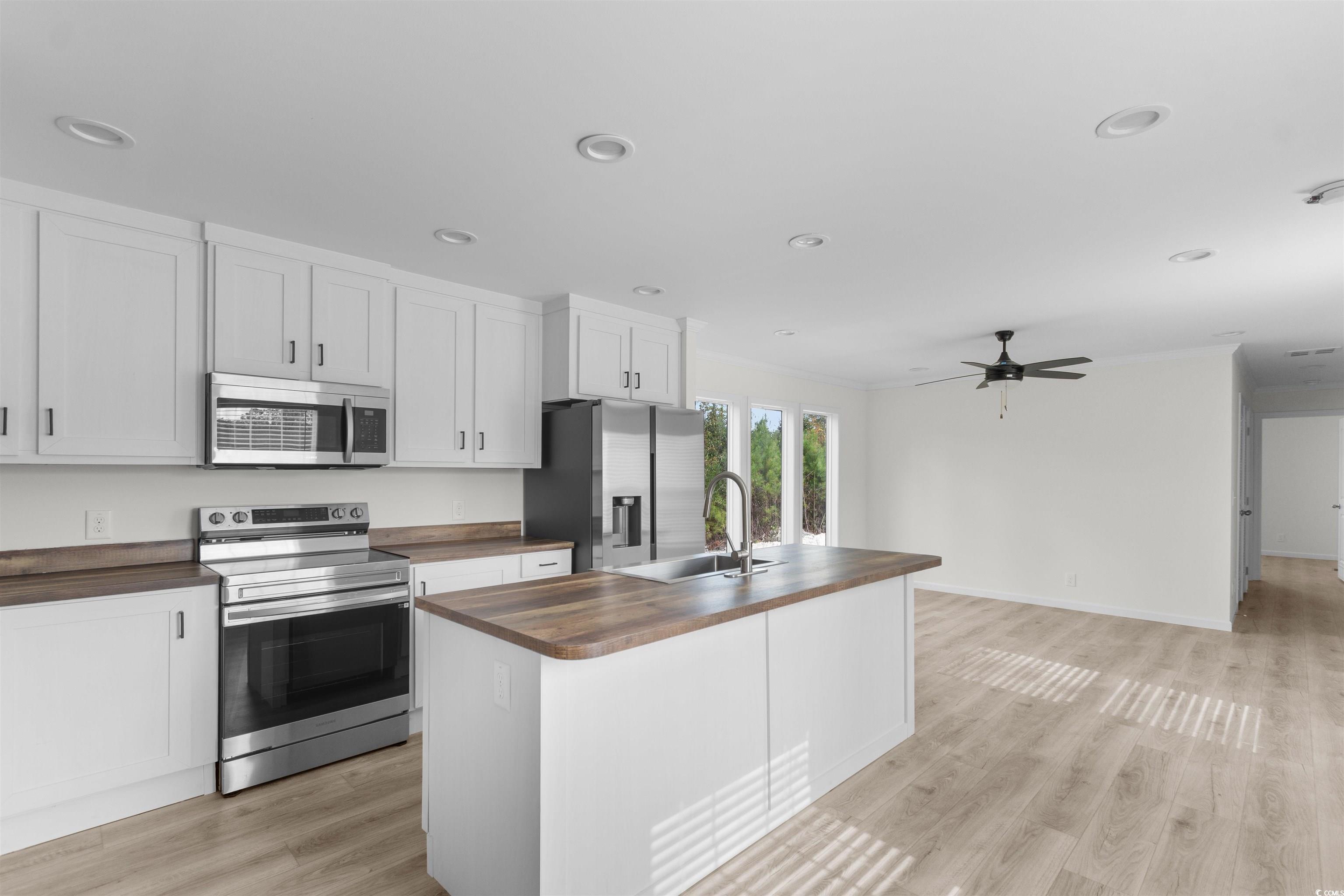 Located on Feather Drive in the Kent area of Georgetown, is this NEW 3 bedroom, 2.5 bath home that is move-in ready! Upon entering the living area, you will notice large windows that let in tons of natural light. Boasting an open floor plan, the living area leads into the kitchen which has solid surface countertops and stainless steel appliances. A half bath is located right off the kitchen - making this perfect for entertaining. Presenting a split floor plan, the primary bedroom has a walk-in closet and an ensuite bathroom. Down the hall are two generously sized bedrooms that share a large size bathroom. Conveniently located 9 miles from the City of Georgetown, this home offers the comfort of country living with close proximity to shops, local restaurants and all other amenities. This home is freshly landscaped and has brick underpinning along with new porches. Come see this NEW, MOVE-IN READY home today!
