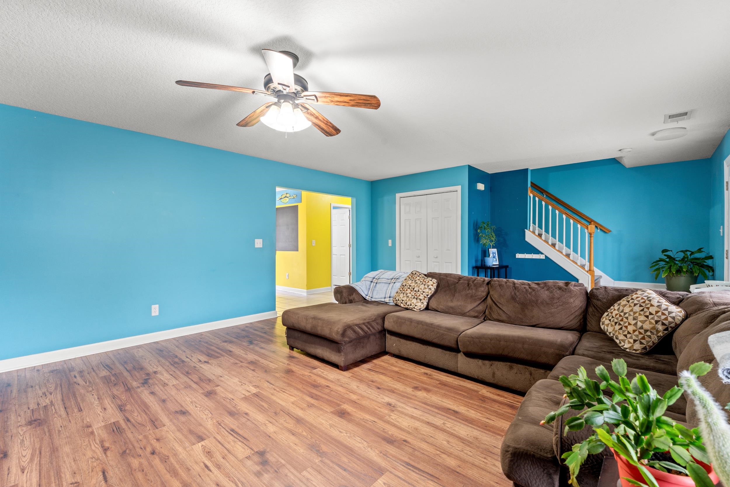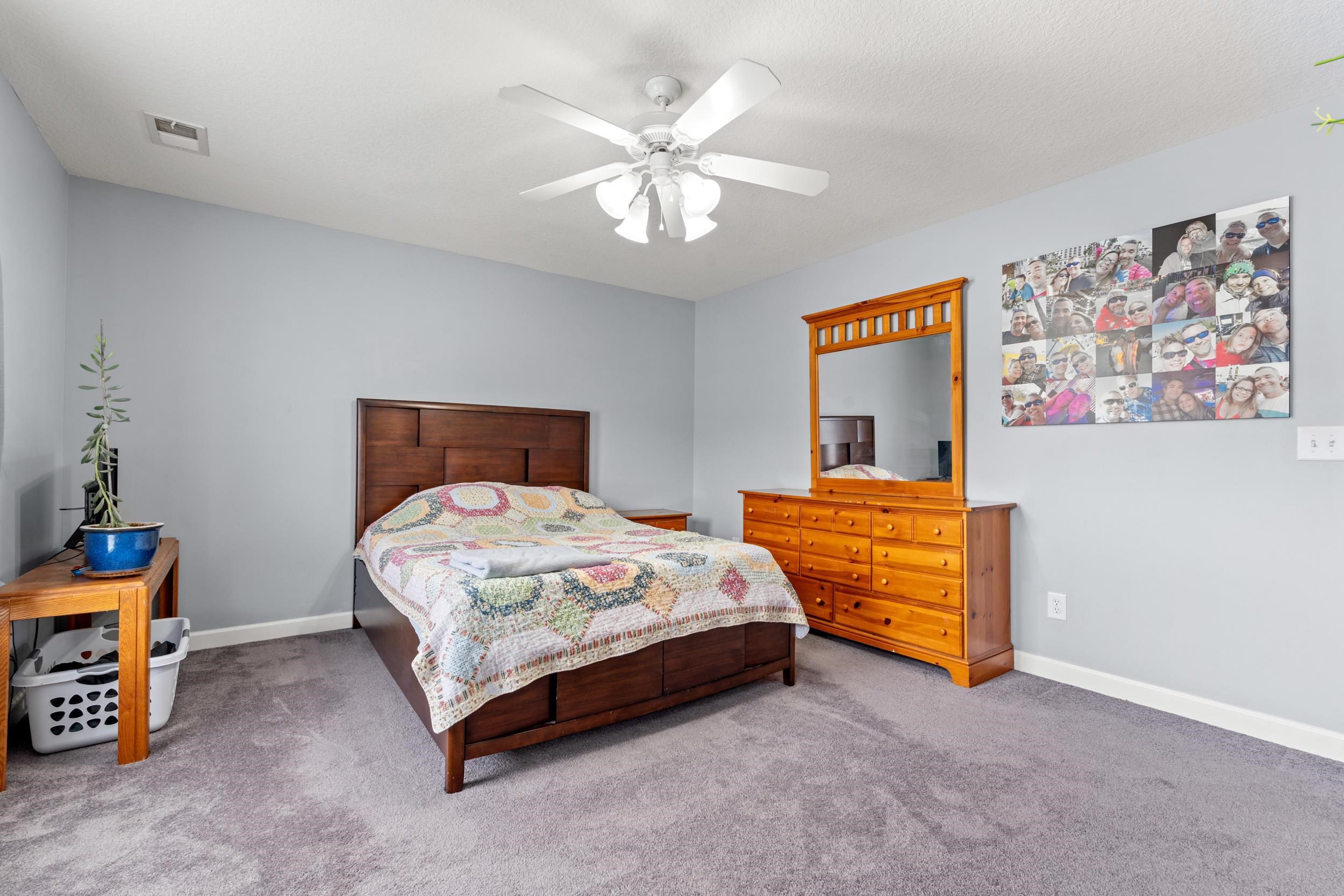 Welcome to this spacious and 4 bedroom, 2.5 bath home! As you enter from the covered front porch, you’re greeted by a very large living room. The generously sized kitchen offers plenty of cabinet and counter space, along with room for a large dining table. A convenient half bath on the main level includes the laundry area for added functionality. Upstairs, you’ll find all four bedrooms, providing privacy from all entertaining spaces. Several bedrooms feature fresh paint and new carpet. The spacious primary suite is complete with abundant natural light, a large walk-in closet, and an en-suite bath featuring plenty of space and a double vanity. Step outside to enjoy the fully fenced backyard with orange and banana trees that produce fruit, some berry bushes and a small greenhouse for all the gardening needs . A two-car garage provides additional storage and convenience. With its functional layout, generous space, and unique backyard charm, this home is ready for its next owner to move in and make it their own.