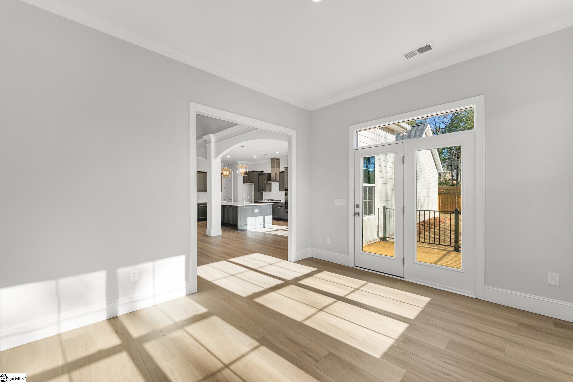 Welcome to 141 Rickys Path in the exclusive Suter Estates. This stunning Patterson II plan is more than a home—it’s a statement. With 6 bedrooms, 3.5 bathrooms, an attached 3-car garage, and a detached 2-car garage, all set on a sprawling .66-acre lot, this residence delivers space, style, and presence unlike anything else. Step into the grand two-story foyer, where soaring ceilings and arched entries create a breathtaking first impression. To your left, a formal dining room with a coffered ceiling is perfect for elegant gatherings. To your right, a private guest suite—or the ideal home office—offers flexibility for modern living. At the heart of the home, the two-story great room stuns with its dramatic scale and sweeping catwalk views. It opens seamlessly into the gourmet kitchen, a true showpiece featuring quartz countertops, a high-end appliance package, double ovens, a 5-burner cooktop, and a sleek stainless range hood. Custom cabinetry ties it all together, creating a space that blends form and function effortlessly. The main-level primary suite is a retreat unto itself, complete with a sitting room, dual closets, and a spa-inspired bath showcasing a custom double shower with dual shower heads. Upstairs, generously sized secondary bedrooms include walk-in closets, while a large bonus room and flex room offer endless possibilities—playroom, theater, gym, or studio. Out back, an enlarged deck overlooks a private, wooded backdrop, setting the stage for both relaxation and entertaining. From family cookouts to tranquil mornings with coffee, this backyard sanctuary makes every day feel like an escape. This home combines grand scale, timeless design, and modern luxury—a rare opportunity in today’s market.