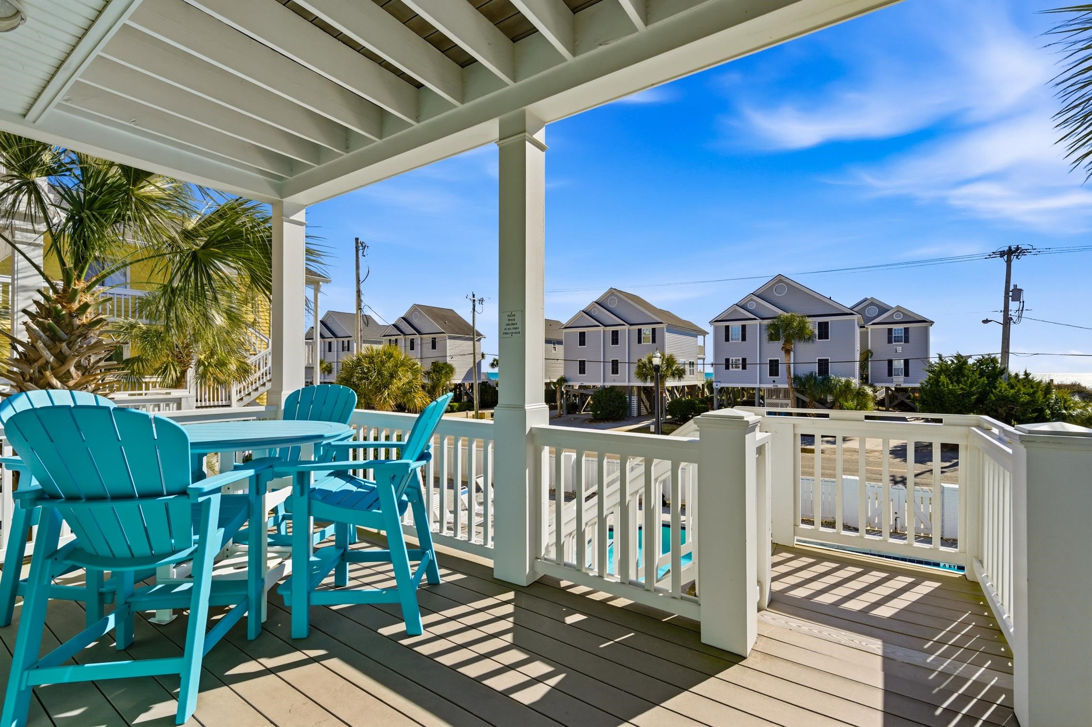 3 Reunion Villas (1411 N Waccamaw Dr) is a fully furnished four-bedroom, three-bath raised beach home offering unobstructed ocean views, direct beach access across the street, and a documented short-term rental history in Garden City Beach. Built in 2012, this second-row residence combines modern construction, strong rental appeal, and low-maintenance coastal ownership. Located approximately one mile north of the Garden City Pier, the home enjoys sweeping Atlantic views while avoiding the direct exposure and maintenance demands of true oceanfront properties. Its location places you steps from the beach and within close proximity to dining, fishing, golf, Murrells Inlet MarshWalk, and the broader Myrtle Beach area, while maintaining the relaxed residential character for which Garden City Beach is known. The home offers approximately 2,142 heated square feet across two thoughtfully designed levels. The main living level features an open-concept layout ideal for entertaining, with luxury vinyl plank and tile flooring, abundant natural light, and a bright coastal color palette. The kitchen includes granite countertops, stainless steel appliances, ample cabinetry, a breakfast bar, and a central island that flows seamlessly into the dining and living areas. A glass door opens to a covered oceanside porch with stairs to the ground level, providing convenient access to the pool and beach. A spacious primary suite with a private covered ocean-view balcony, walk-in closet, and ensuite bath with dual vanities and a tiled walk-in shower anchors the upper level. Two additional bedrooms and a full bath complete the upper level, while the main level includes a fourth bedroom and full bathroom. Exterior features include composite decking, a metal roof, and durable fiber-cement siding. Covered parking beneath the home accommodates up to four vehicles and includes an outdoor shower—features that are highly desirable for both beach living and short-term rental use. Reunion Villas is a small, well-managed homeowners’ association that offers a community pool with a sundeck, common area maintenance, landscaping, and irrigation. Both short-term and long-term rentals are permitted, making the property suitable as a primary residence, second home, or income-producing investment. Currently enrolled in a short-term rental program, the home is offered fully furnished and turnkey for continued rental use, with rental performance documentation available. Take a virtual tour at www.bit.ly/3ReunionVillas and explore the lifestyle and rental potential of 3 Reunion Villas.