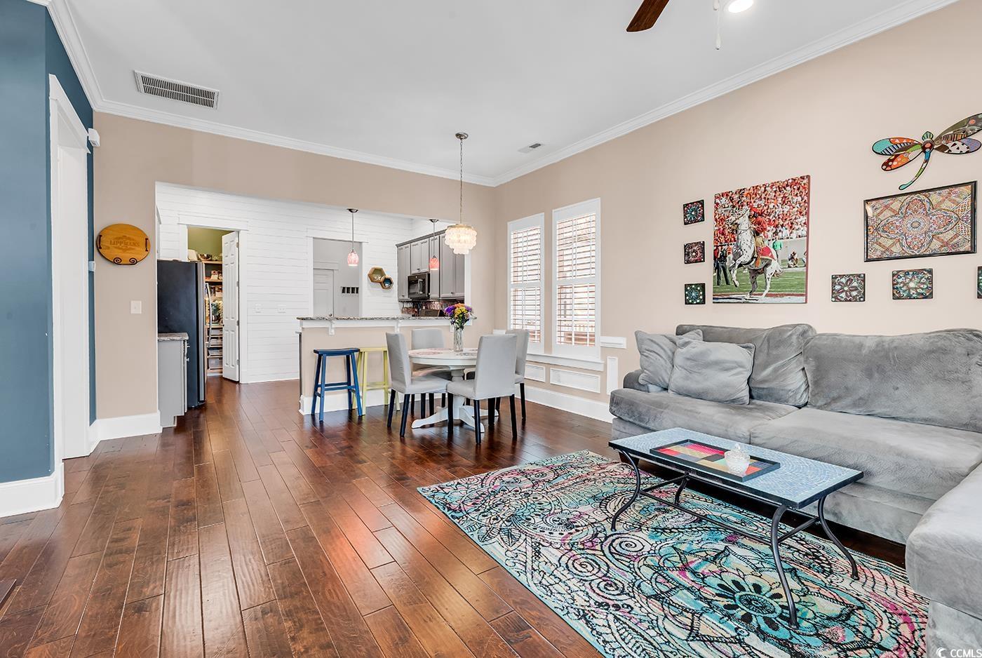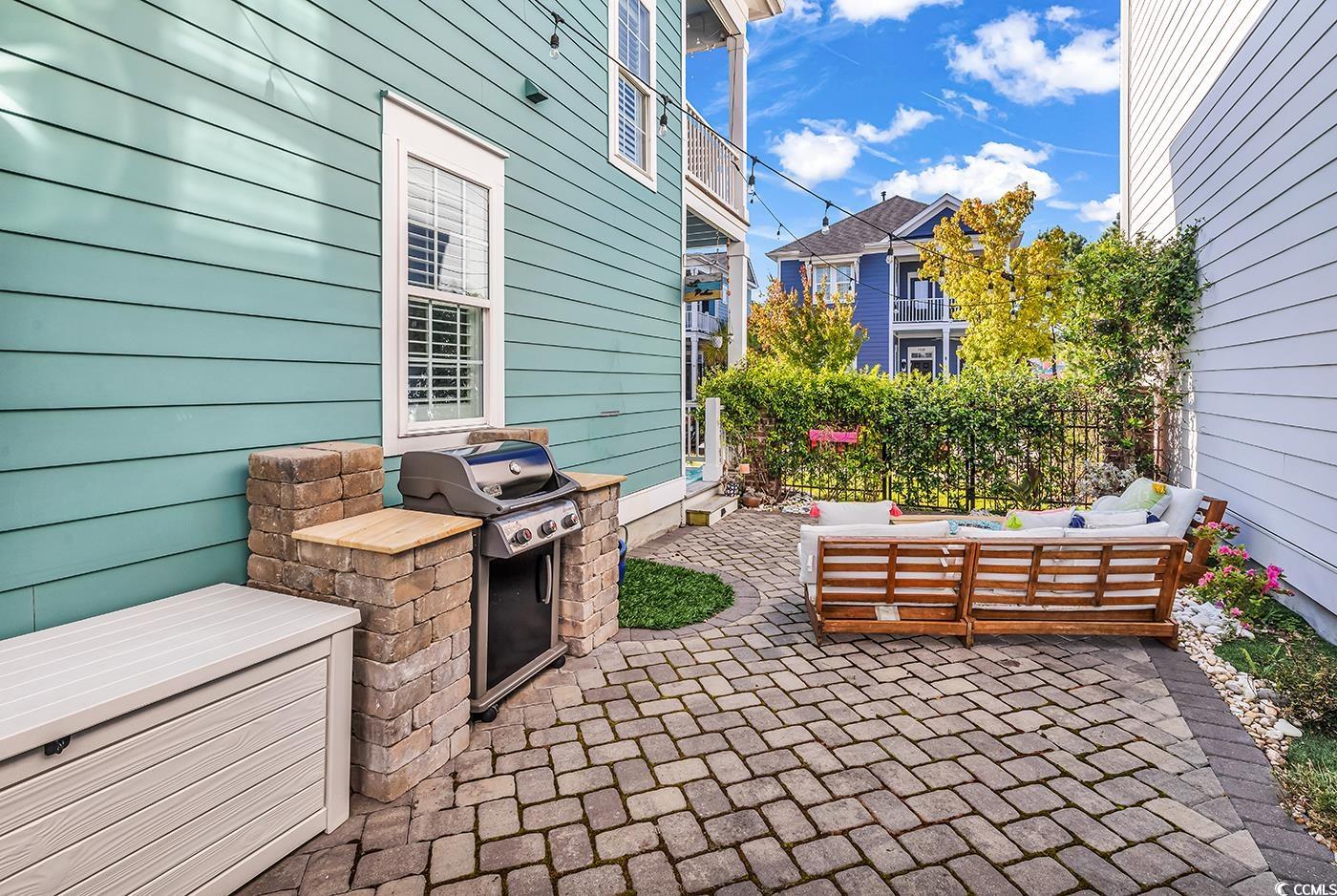 Beautiful three-bedroom two-and-a-half-bathroom home in the very popular Sweetgrass Square section of the exciting Market Common community. This exquisite home has the master bedroom suite conveniently located on the first floor of this Lancaster floorplan which includes hardwood flooring, plantation shutters, granite countertops and stainless-steel appliances in the kitchen area. The upstairs offers two more bedrooms, a full bathroom, and additional space that can be used as a second living area, guest space, or kids’ hangout. The fenced in side yard offers a private oasis that has beautiful brick pavers in the patio, a built-in grill area, and a fireplace. The garage area has been recently painted and sealed and currently being used as home gym. The monthly hoa includes cable, internet, landscape/lawn, street lights, and access to the large pool, lazy river, hot tubs, bathrooms, kitchen, and a fully equipped fitness center — all tucked right behind Barnes & Noble in The Market Common. This home is located within walking distance or golf cart ride to all Market Common has to offer including shops, restaurants, entertainment, and much more. The beach is in close proximity with it only being just over a mile away! This is an overall great opportunity for anyone looking for a primary or secondary home. Come by to see this home today!