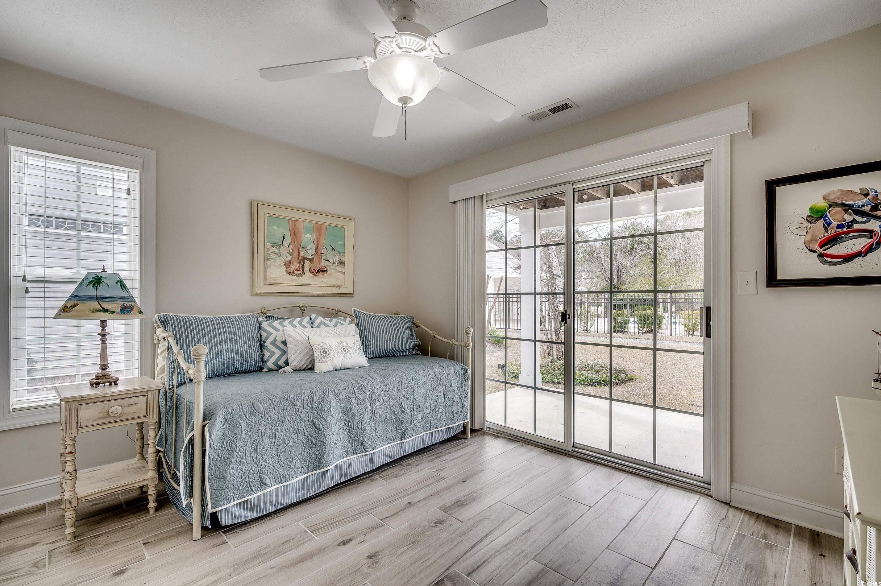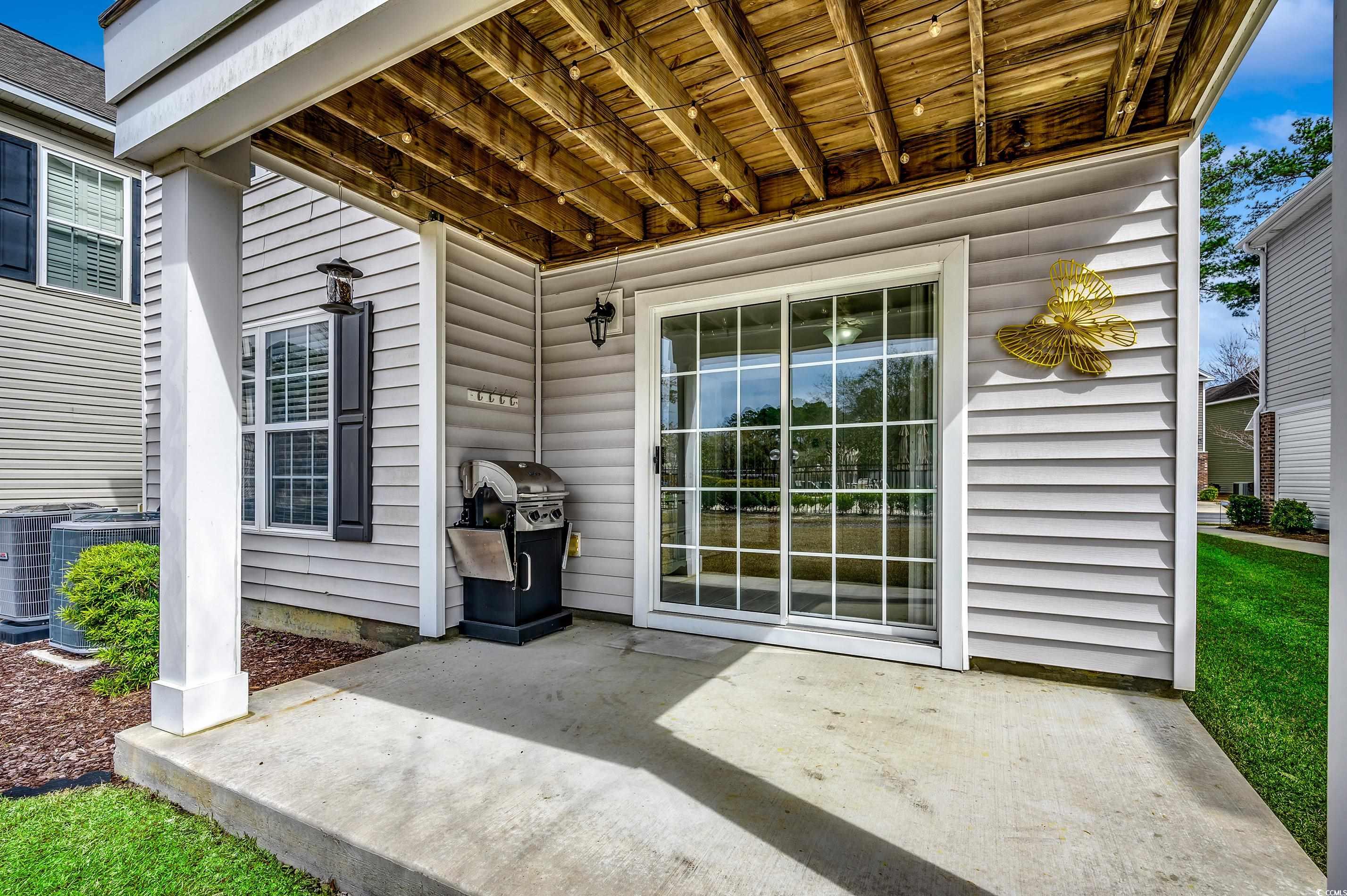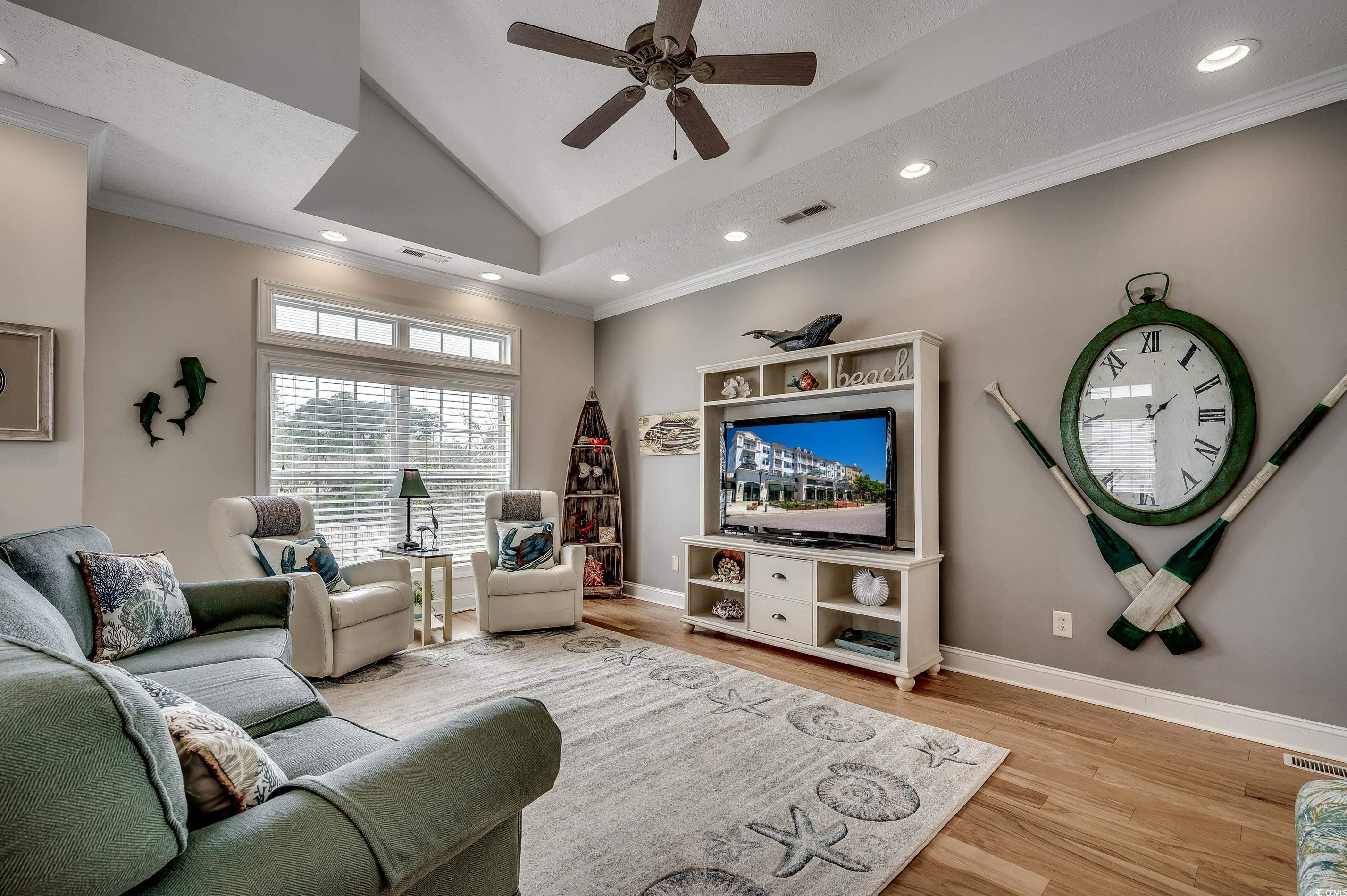 Welcome to Luxurious Living in Myrtle Beach -- The Cottages on Farrow Parkway, where modern amenities meet a prime location. Just a short walk to Market Common, the Crabtree Memorial Gymnasium, Horry County Technical College, and The International Culinary Institute, this four-bedroom, three-bathroom raised-beach house offers an exemplary blend of convenience and comfort. And it gets better, it is only a golf cart ride to the beach and the Myrtle Beach State Park. Upon entry at the ground level, you'll be greeted by two bedrooms and a full bathroom, thoughtfully designed for both utility and versatility. One of these rooms features a sliding glass door that opens to a covered patio, which could make a fantastic home office with direct outdoor access. Enjoy the ease of accessing the large grassy area—ideal for relaxation—and a swift path to the neighborhood swimming pool. Additionally, there's a spacious two-car garage with a large storage room, providing ample space for your belongings. Venture upstairs to find an open-concept living area brimming with natural light. The large gathering room boasts a cathedral ceiling, enhanced by a strategically-placed ceiling fan. This space seamlessly flows into the adjacent dining and kitchen areas, making it perfect for entertaining or cozy family gatherings. Step out onto the screened-in covered balcony with a ceiling fan, where you can enjoy the area all day long while overlooking the pool. The kitchen is a chef's delight, fitted with 42" cabinets, stainless steel appliances, and solid surface countertops. The kitchen features both over and under cabinet lighting. A breakfast bar and pantry provide additional convenience, ensuring everything you need is within reach. Down the hall, discover two additional bedrooms, including a primary suite that's both spacious and inviting. The primary bedroom features a vaulted ceiling, a ceiling fan, and a generous walk-in closet. The ensuite bathroom adds a touch of luxury with a transom window over the walk-in shower, enhancing the room’s natural light and atmosphere. The other bathroom offers a tub/shower combination with transom window, too. This smaller neighborhood offers a unique blend of tranquility and activity. Living here, you're not only close to Market Common—known for its dining and shopping opportunities—but also able to quickly reach the beautiful beaches of Myrtle Beach by golf cart. This location encourages a lifestyle of leisure and enjoyment as you explore the local amenities.