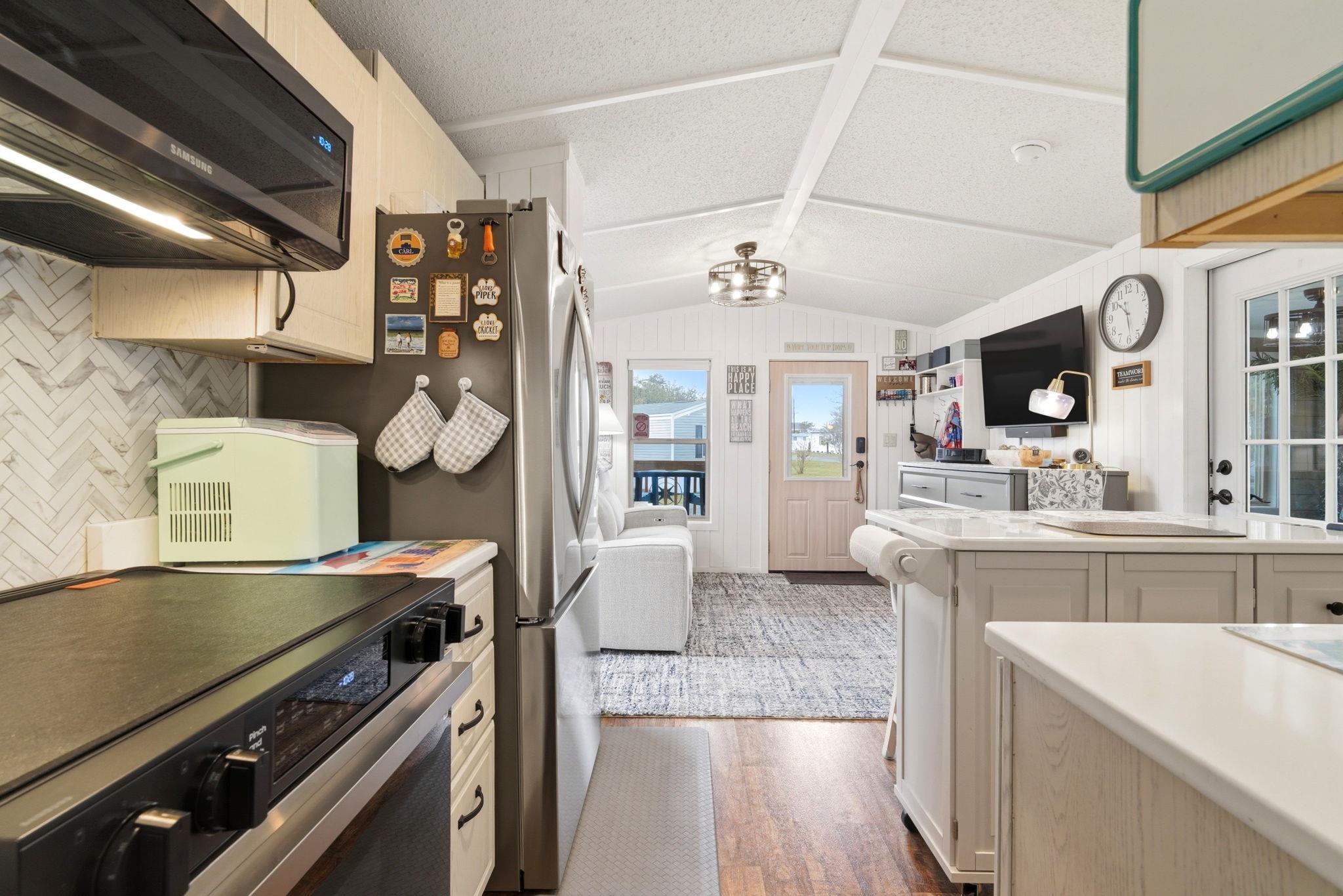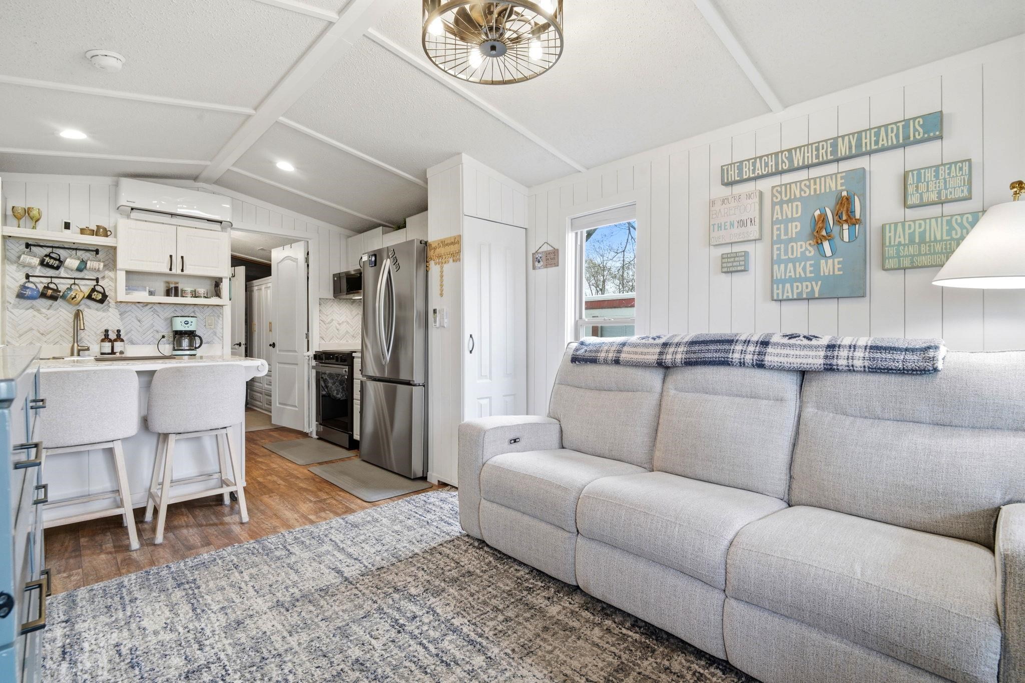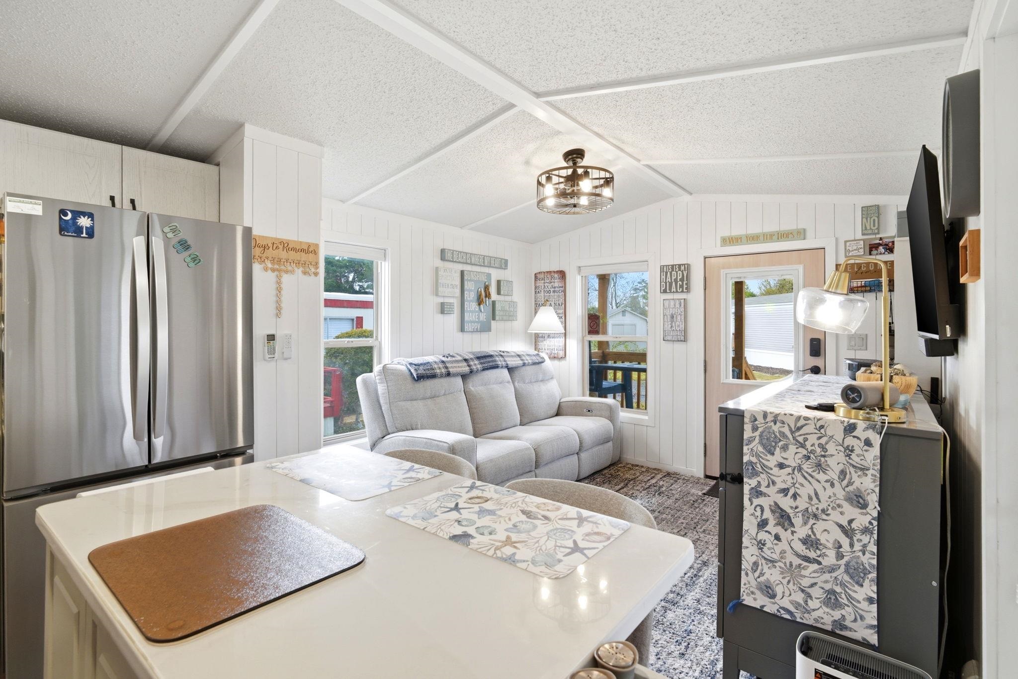 Charming newer beach bungalow tucked away in a private manufactured home community along the Intracoastal Waterway in the heart of North Myrtle Beach. Embrace the coastal lifestyle with this beautifully maintained, fully furnished 1-bedroom, 1-bath retreat—perfect as a primary residence, vacation getaway, or investment opportunity. Thoughtfully updated, this home features a spacious 10x15 Carolina Room, originally built in 2024 as a screened porch and fully enclosed in 2025 to create additional year-round living space, complete with storage underneath. An 8x10 wooden shed on a cement pad (2024) adds even more storage options. Inside, you’ll find new kitchen appliances (2026) and a new living room sofa (2026). The living room also includes a versatile cabinet that has a queen-size Murphy bed—perfect for accommodating guests. The Carolina Room offers additional sleeping space with a queen sleeper sofa. A convenient all-in-one washer and dryer unit (2025) provides added functionality and ease. Ideally located just minutes from sandy beaches, top-rated golf courses, shopping, and dining, this home offers the perfect blend of convenience and tranquility. Enjoy low-maintenance living in a peaceful setting while staying close to everything North Myrtle Beach has to offer. Schedule your showing today!!