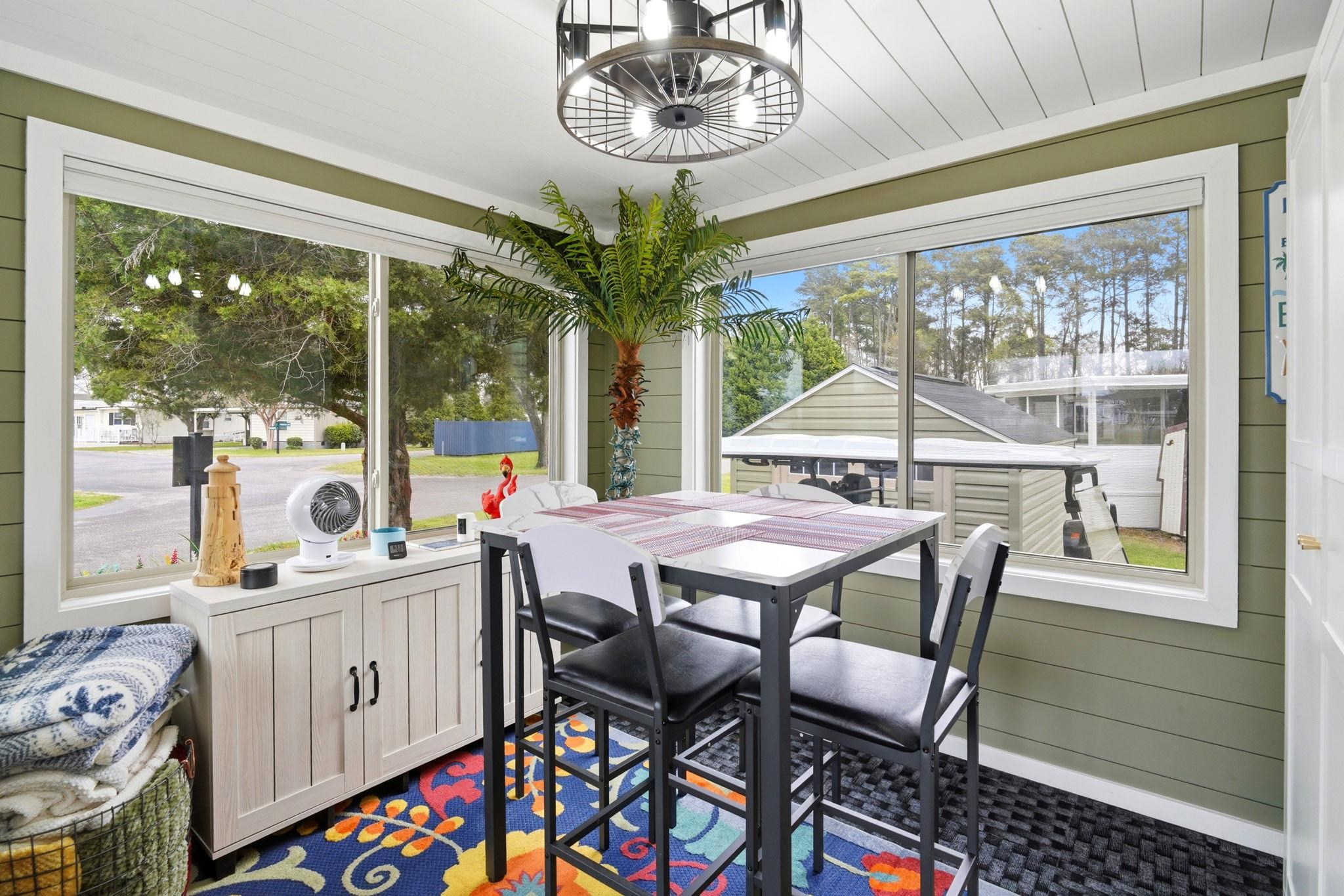 Charming newer beach bungalow tucked away in a private manufactured home community along the Intracoastal Waterway in the heart of North Myrtle Beach. Embrace the coastal lifestyle with this beautifully maintained, fully furnished 1-bedroom, 1-bath retreat—perfect as a primary residence, vacation getaway, or investment opportunity. Thoughtfully updated, this home features a spacious 10x15 Carolina Room, originally built in 2024 as a screened porch and fully enclosed in 2025 to create additional year-round living space, complete with storage underneath. An 8x10 wooden shed on a cement pad (2024) adds even more storage options. Inside, you’ll find new kitchen appliances (2026) and a new living room sofa (2026). The living room also includes a versatile cabinet that has a queen-size Murphy bed—perfect for accommodating guests. The Carolina Room offers additional sleeping space with a queen sleeper sofa. A convenient all-in-one washer and dryer unit (2025) provides added functionality and ease. For even more enjoyment, a 2025 Bentelli Pulse EV golf cart is available for purchase. Ideally located just minutes from sandy beaches, top-rated golf courses, shopping, and dining, this home offers the perfect blend of convenience and tranquility. Enjoy low-maintenance living in a peaceful setting while staying close to everything North Myrtle Beach has to offer. Schedule your showing today!!