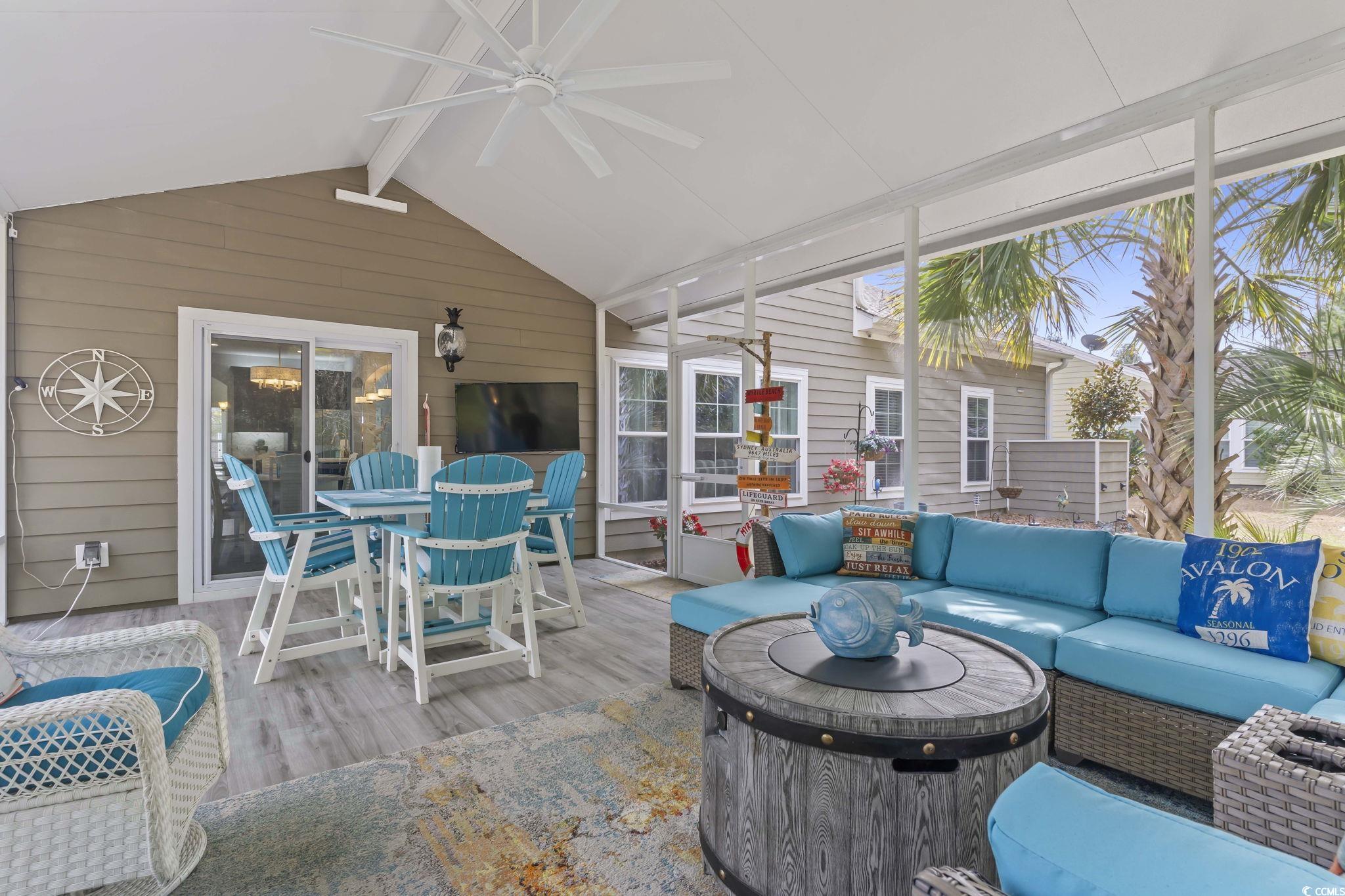 Stunning 5-bedroom, 3.5-bath home located in the sought-after gated community of Windsor Plantation. This 2,952 sq ft residence features soaring ceilings, an inviting foyer, formal dining room, and a versatile home office or study with a convenient half bath. The spacious living room offers vaulted ceilings, abundant natural light, and a cozy gas fireplace. The gourmet kitchen is complete with stainless steel appliances including a gas range, quartz countertops, a large center island, and extensive cabinetry. A sunny breakfast nook opens to a 15x22 enclosed 3-seasons room, adding 330 sq ft of year-round living space with peaceful outdoor views. The main-level primary suite includes a walk-in closet and a luxurious ensuite with a tiled step-in shower, dual sinks, and a linen closet. Upstairs you’ll find a full guest suite with ensuite bath, three additional guest bedrooms, and a full bathroom. Additional highlights include a 2-car attached garage, gas water heater, sprinkler system, landscaped lawn with Fescue grass, security system, and quality finishes throughout. Windsor Plantation offers gated security and excellent amenities including a clubhouse and pool, all just minutes from shopping, dining, entertainment, and the beaches of the Grand Strand. Measurements are approximate and not guaranteed; buyer is responsible for verification.