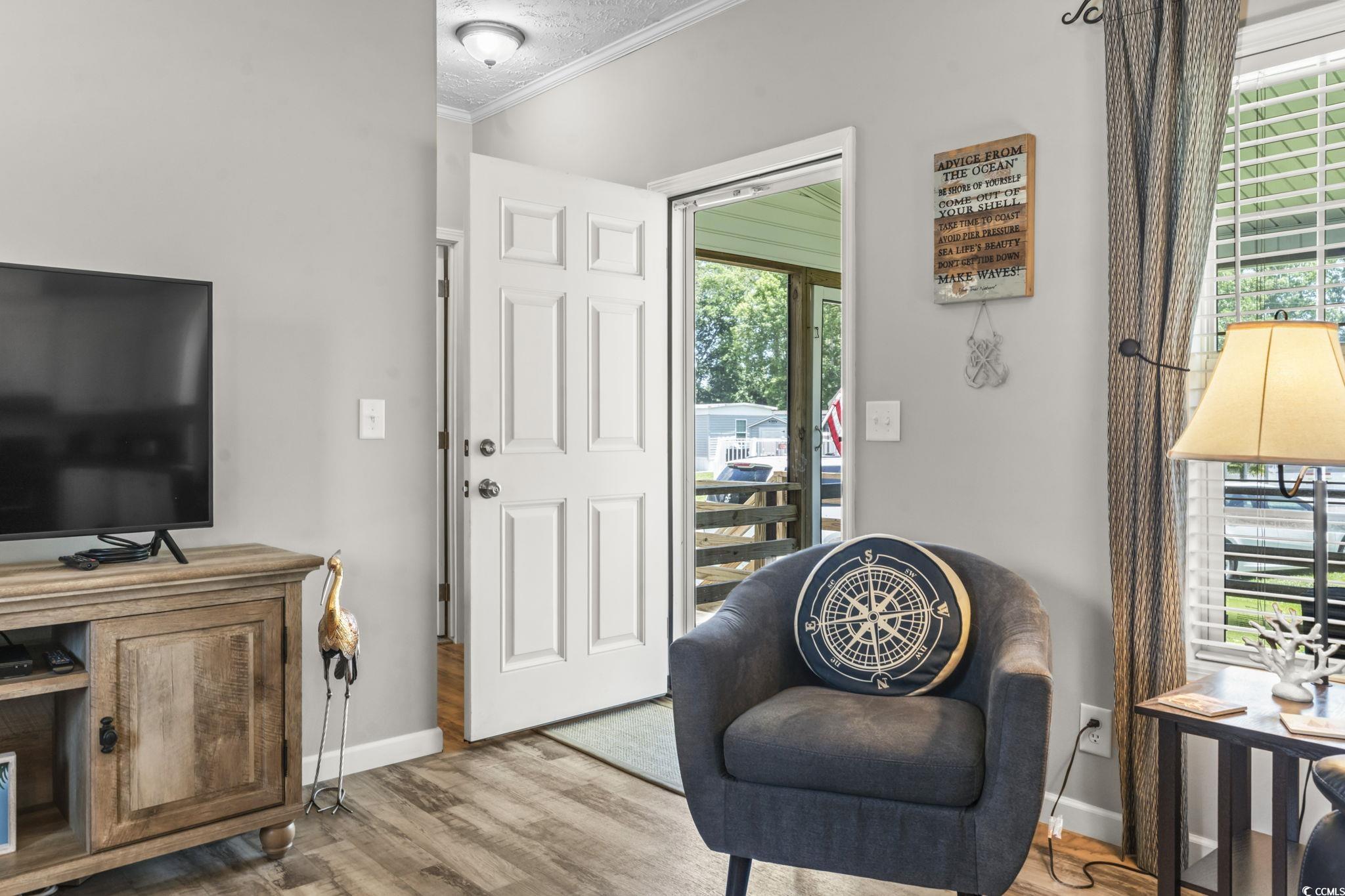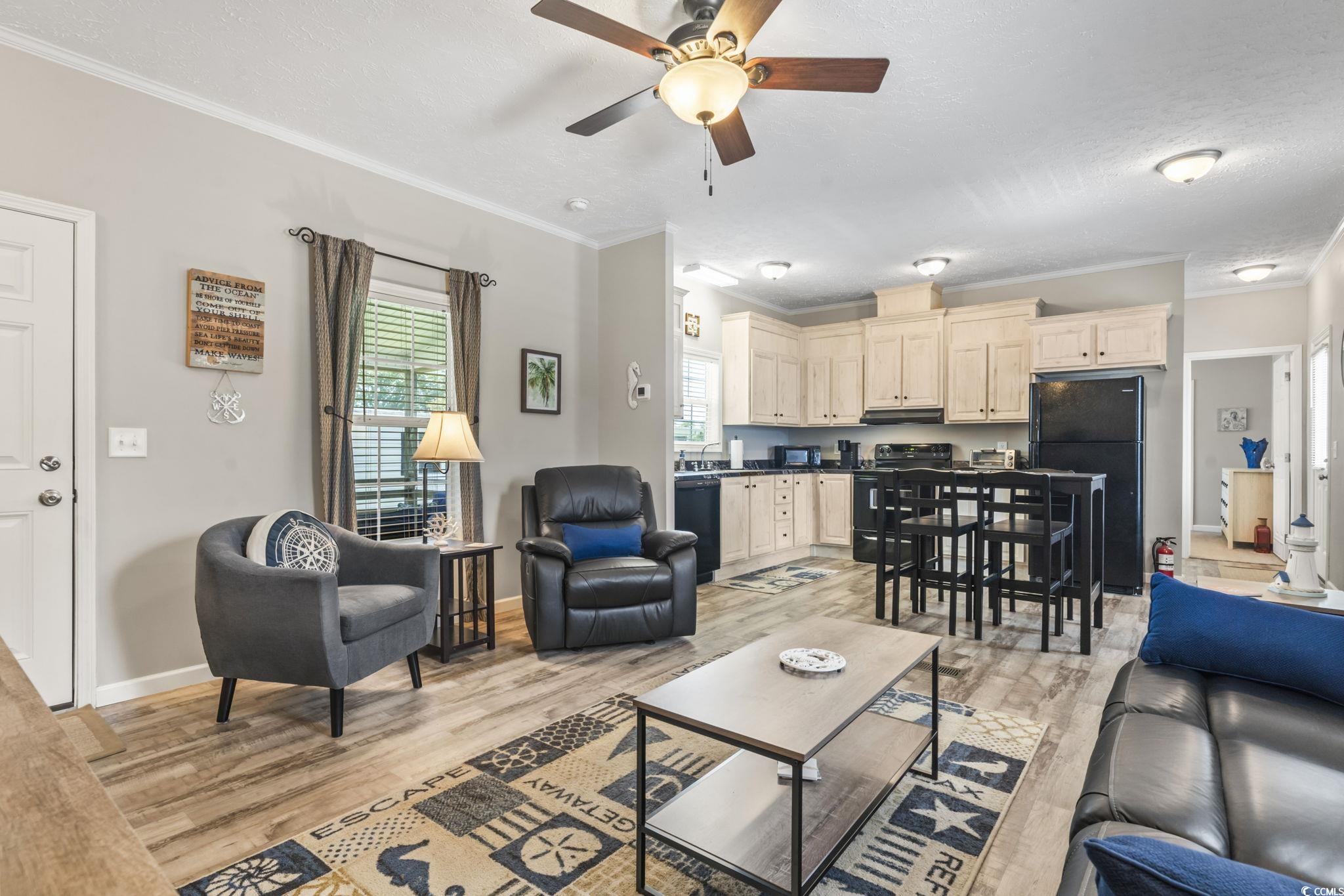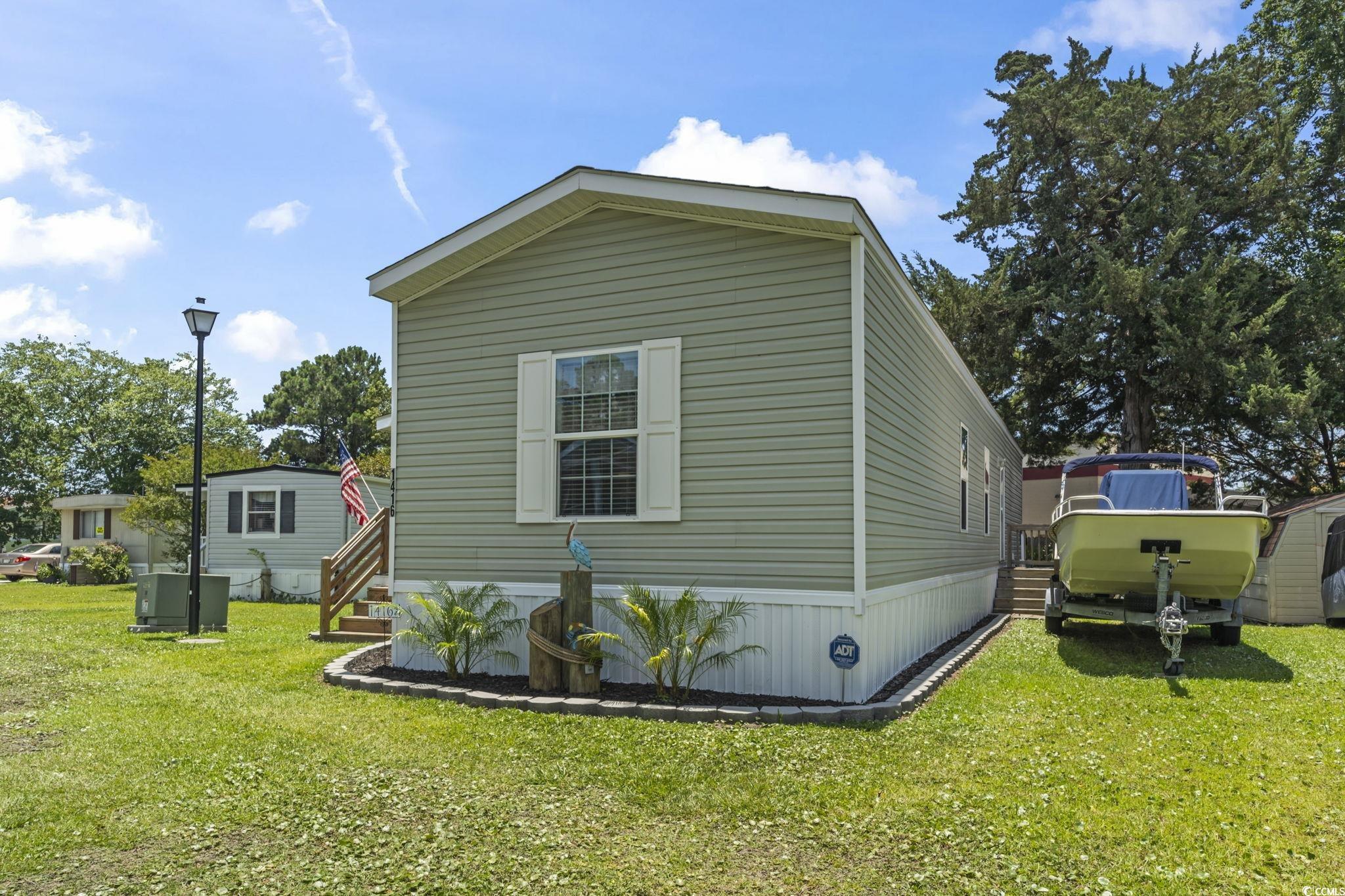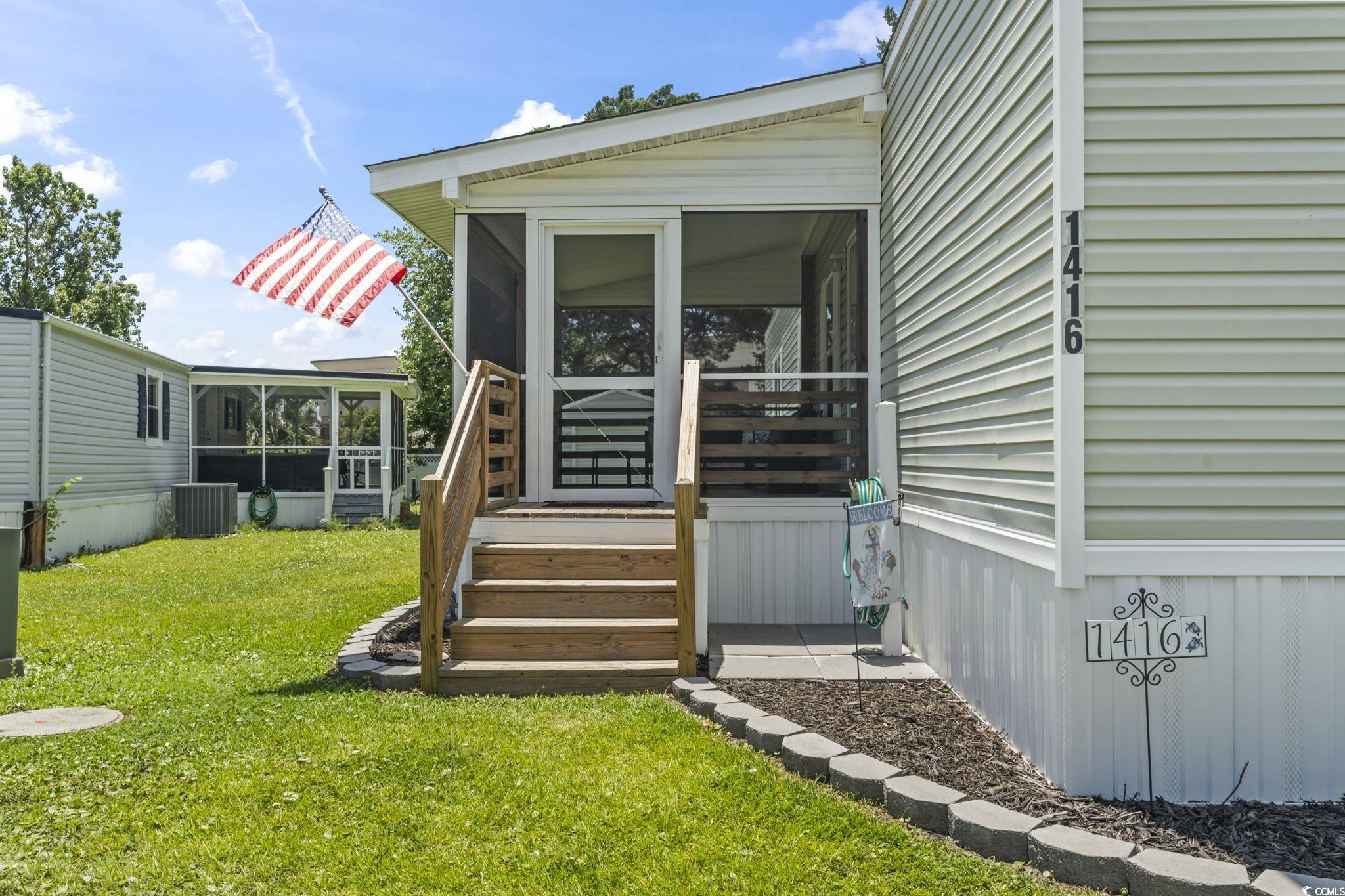 THIS IS THE ONE YOU'VE BEEN WAITING FOR!!! Welcome to your coastal retreat!!! Located just 1 mile from the sandy shores in the sought-after community of Waterway View, this meticulously maintained turnkey gem is fully furnished!!! Tastefully decorated and exuding coastal charm, this beauty is ready for you to call home! Just a short golf cart ride to the Atlantic ocean and close to the intracoastal waterway, 1416 Circle Dr is conveniently located to all that North Myrtle Beach has to offer including golf, fishing, boating, restaurants, shopping and local attractions. Waterway View will SOON be adding a beautiful NEW POOL, modern community room and a BBQ and picnic area for gathering & relaxing. THIS IS NOT your average manufactured home! Step inside and be wowed by the soaring 9-foot ceilings and crown molding throughout, giving this exquisite home a spacious, modern feel along with smooth sheet-rocked walls freshly painted in 2024! The open-concept layout seamlessly connects the living area and the well-appointed kitchen, featuring beautiful light wood cabinetry offering plenty of storage, generous counter space, Frigidaire appliances and a new black pub table with seating for 4 perfect for dining, gathering or game night! Make your way past the laundry area hosting a GE Washer and Dryer on your way to the owner's suite. The primary ensuite is a true retreat, complete with a queen sleigh bed, matching furnishings and walk-in closet. The primary bath is fully equipped with a large vanity, shower and built in cabinetry featuring 3 extra roomy cabinets for housing all of your towels, linens and bathroom storage needs. The second spacious bedroom is situated on the the other side of the home giving way to a split-bedroom plan ensuring privacy for both you and your family or guests. Complete with a queen bed and walk-in closet, this tranquil bedroom is located directly beside the second full bathroom featuring a tub shower combo and a flamingo vibe! Enjoy coastal breezes from the relaxing and serene 16x10 screened-in porch with decking, the perfect spot for morning coffee or evening unwinding. This is sure to be favorite spot for all. The detached outdoor shed with a roll-up steel door, can accommodate a golf cart as well as all of your beach gear. EXCITING NEWS!!! Waterway View will SOON be adding a beautiful NEW POOL, modern community room and a BBQ and picnic area for gathering & relaxing!!! Completion should be spring or early summer 2026!!! Whether you're looking for a vacation getaway or a year-round residence, this charming home offers a rare blend of comfort, style, and location. Schedule your showing today! This one won't last long!