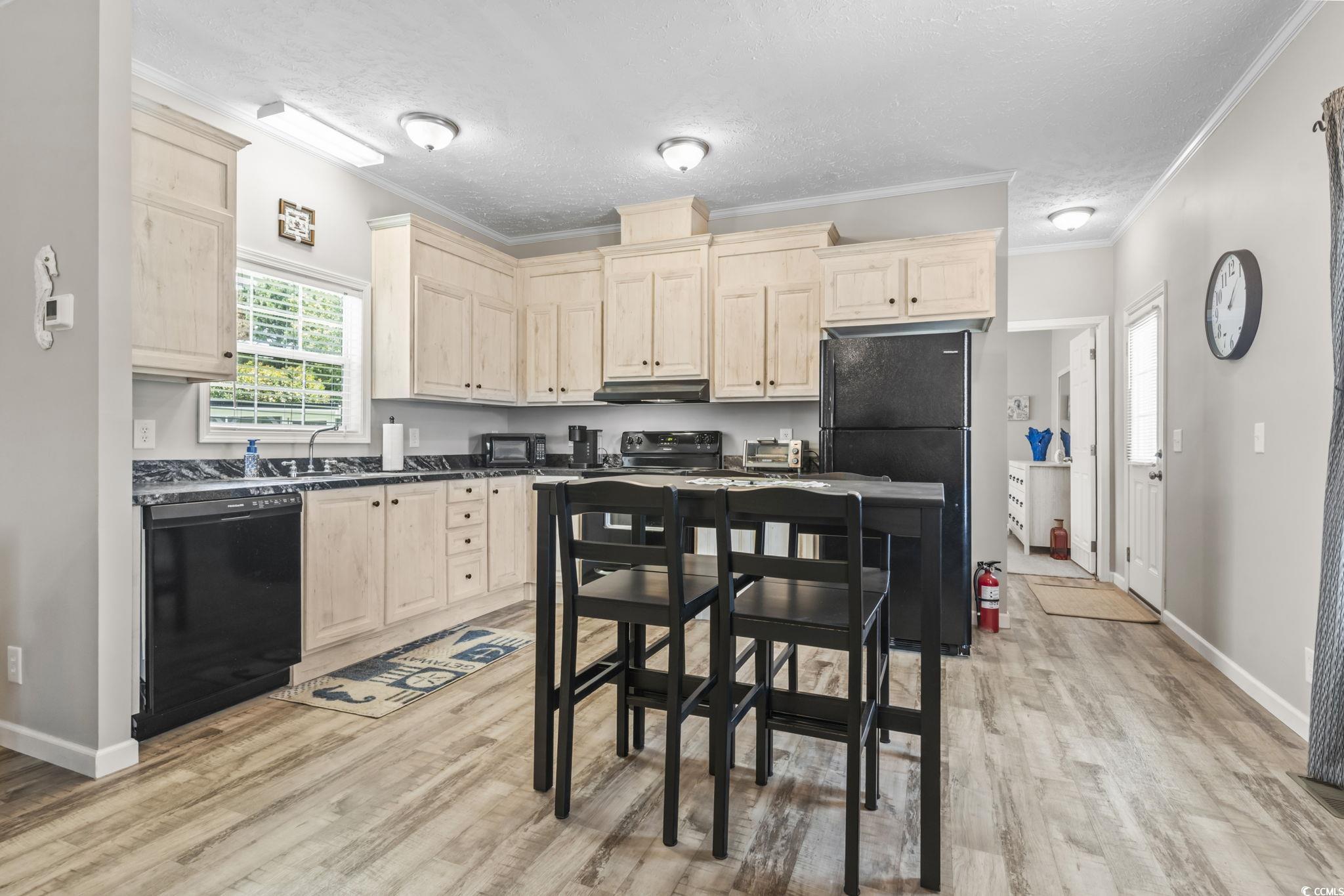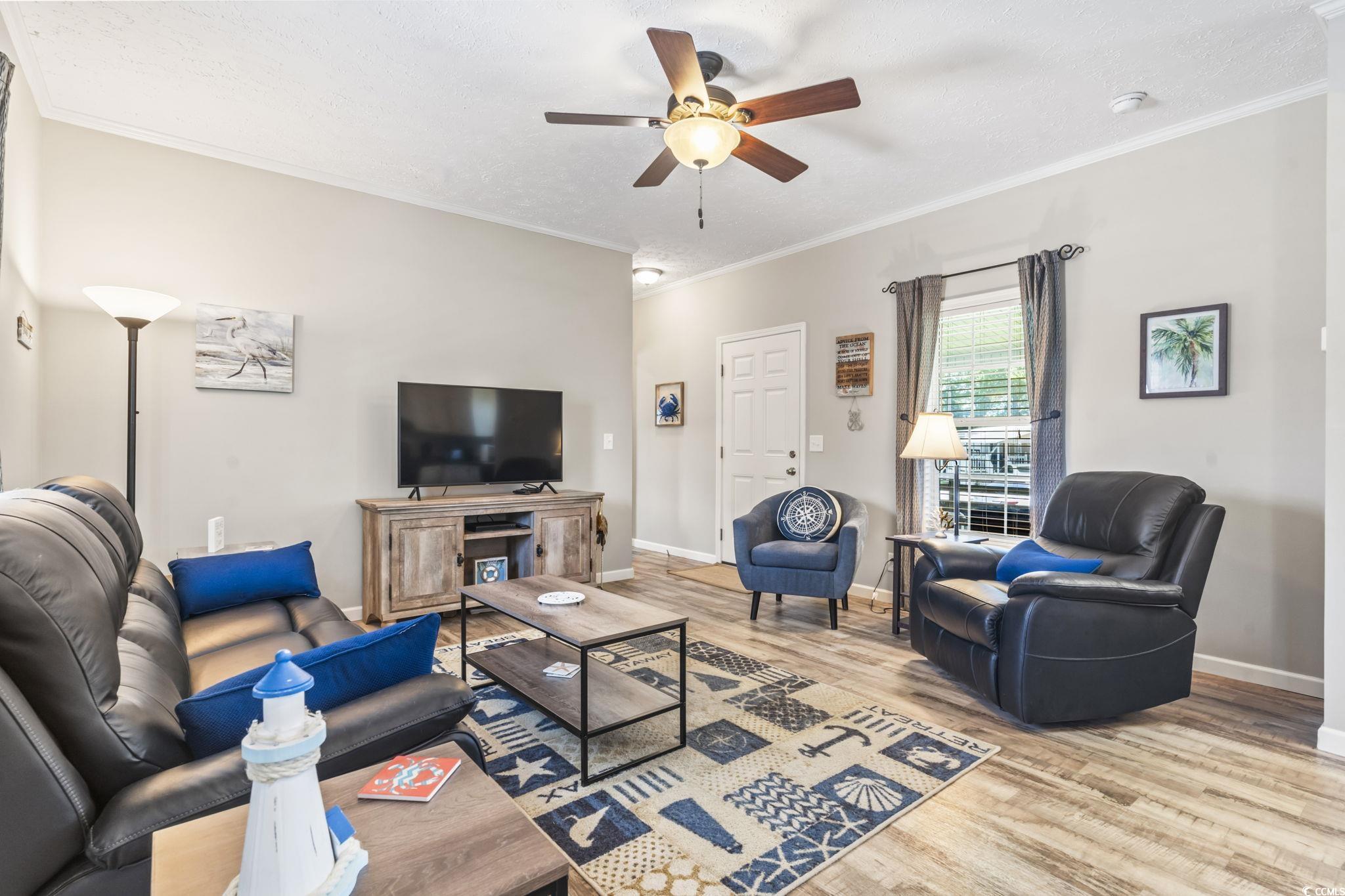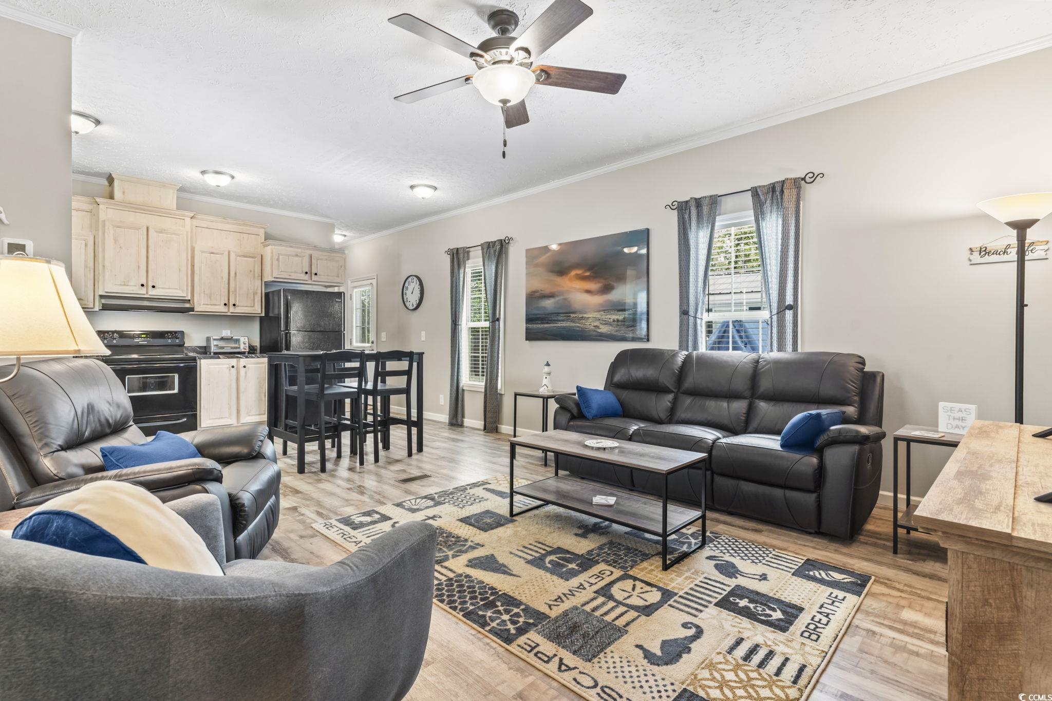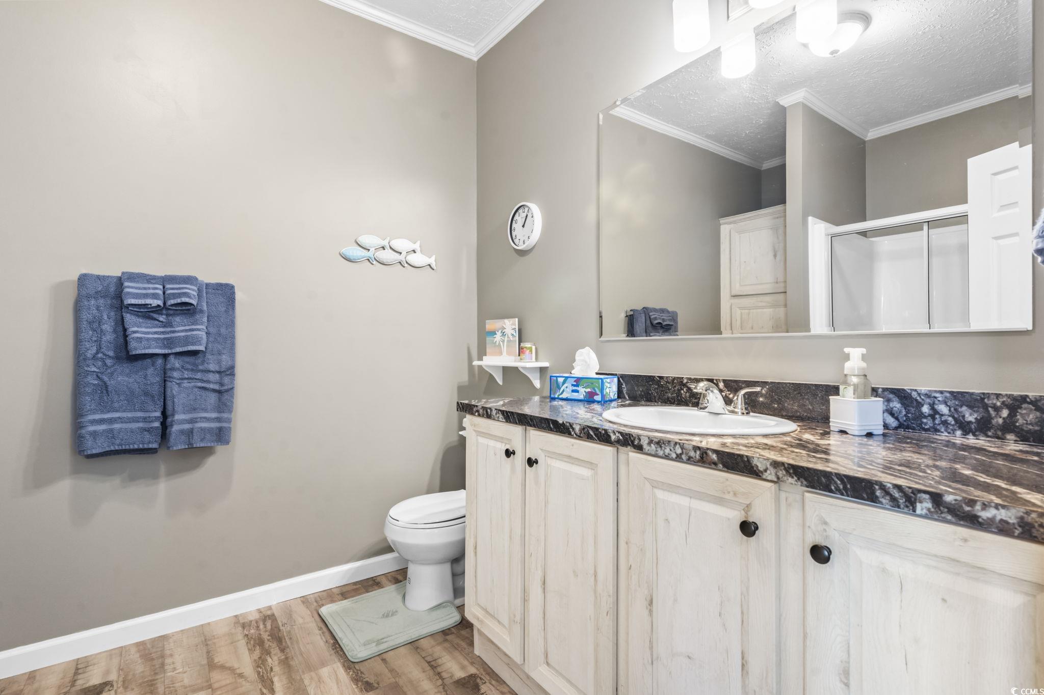 THIS IS THE ONE YOU'VE BEEN WAITING FOR!!! Welcome to your coastal retreat!!! Located just 1 mile from the sandy shores in the sought-after community of Waterway View, this meticulously maintained turnkey gem is fully furnished!!! Tastefully decorated and exuding coastal charm, this beauty is ready for you to call home! Just a short golf cart ride to the Atlantic ocean and close to the intracoastal waterway, 1416 Circle Dr is conveniently located to all that North Myrtle Beach has to offer including golf, fishing, boating, restaurants, shopping and local attractions. Waterway View will SOON be adding a beautiful NEW POOL, modern community room and a BBQ and picnic area for gathering & relaxing. THIS IS NOT your average manufactured home! Step inside and be wowed by the soaring 9-foot ceilings and crown molding throughout, giving this exquisite home a spacious, modern feel along with smooth sheet-rocked walls freshly painted in 2024! The open-concept layout seamlessly connects the living area and the well-appointed kitchen, featuring beautiful light wood cabinetry offering plenty of storage, generous counter space, Frigidaire appliances and a new black pub table with seating for 4 perfect for dining, gathering or game night! Make your way past the laundry area hosting a GE Washer and Dryer on your way to the owner's suite. The primary ensuite is a true retreat, complete with a queen sleigh bed, matching furnishings and walk-in closet. The primary bath is fully equipped with a large vanity, shower and built in cabinetry featuring 3 extra roomy cabinets for housing all of your towels, linens and bathroom storage needs. The second spacious bedroom is situated on the the other side of the home giving way to a split-bedroom plan ensuring privacy for both you and your family or guests. Complete with a queen bed and walk-in closet, this tranquil bedroom is located directly beside the second full bathroom featuring a tub shower combo and a flamingo vibe! Enjoy coastal breezes from the relaxing and serene 16x10 screened-in porch with decking, the perfect spot for morning coffee or evening unwinding. This is sure to be favorite spot for all. The detached outdoor shed with a roll-up steel door, can accommodate a golf cart as well as all of your beach gear. EXCITING NEWS!!! Waterway View will SOON be adding a beautiful NEW POOL, modern community room and a BBQ and picnic area for gathering & relaxing!!! Completion should be spring or early summer 2026!!! Whether you're looking for a vacation getaway or a year-round residence, this charming home offers a rare blend of comfort, style, and location. Schedule your showing today! This one won't last long!