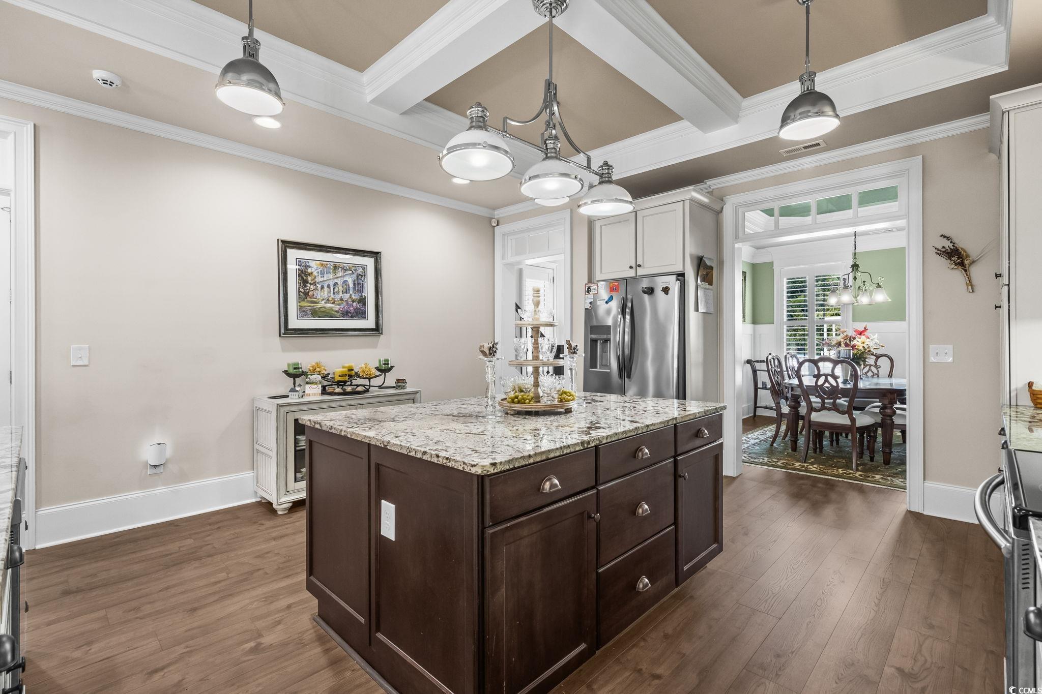 Welcome to 1416 Hunters Rest Drive, a stunning custom-built home located in the highly sought-after Charleston Landing community of North Myrtle Beach. This beautiful Lowcountry-style residence offers an inviting front porch, open-concept living, and elegant coastal design throughout. The spacious kitchen features granite countertops, stainless steel appliances, and a large island perfect for entertaining. The primary suite offers a private retreat with a luxurious ensuite bath and walk-in closet. Enjoy outdoor living on the enclosed porch overlooking the peaceful neighborhood setting. Charleston Landing residents enjoy first-class amenities including a community pool overlooking the marsh, playground, gazebos, and sidewalks perfect for evening strolls. Conveniently located just minutes from the beach, shopping, dining, and all that North Myrtle Beach has to offer. Experience the charm and coastal lifestyle you’ve been dreaming of!