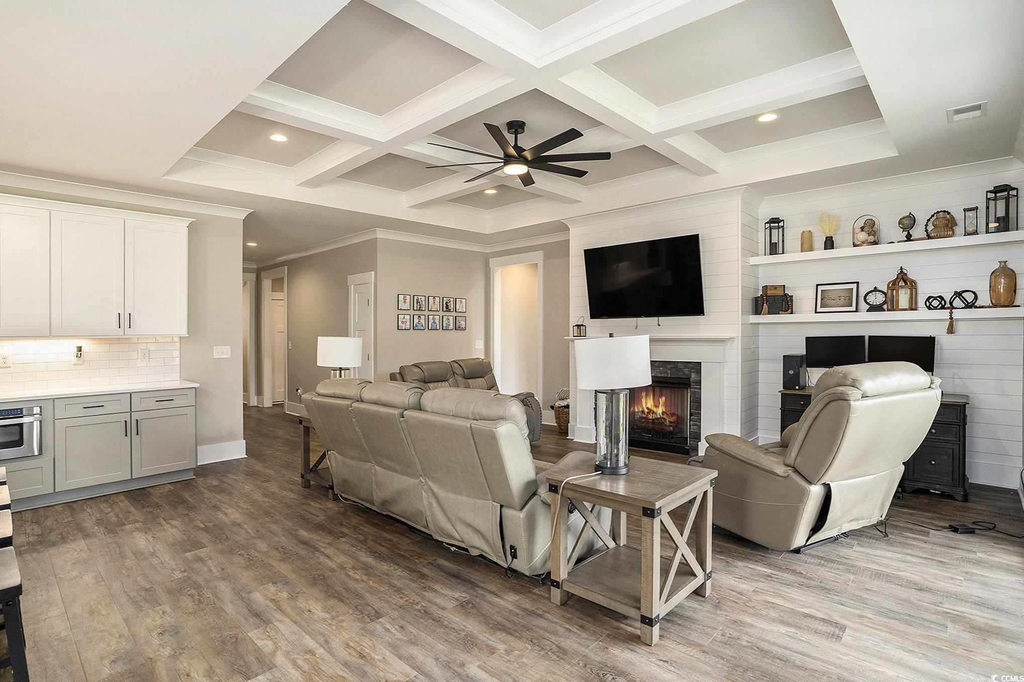 Welcome to this elegant 3-bedroom, 2.5-bath home located in the highly sought-after gated community-Tidewater Plantation, nestled right on the golf course. A charming front porch and inviting foyer leading into a spacious open-concept layout designed for both comfort and entertaining. The living room features coffered ceilings, a cozy fireplace, and seamless flow into the gourmet kitchen with gas appliances, complete with a large pantry, ample storage, and upgraded finishes. In this split floor plan design the primary suite is a true retreat, showcasing a shiplap accent wall, tray ceilings, and a luxurious bathroom with large walk in closet that is conveniently connected to the laundry room. A drop zone, two-car garage, and screened rear porch overlooking the course add to the home’s functionality and charm. Residents of Tidewater Plantation enjoy an array of resort-style amenities, including a pool, fitness center, tennis courts, and a private oceanfront beach cabana. Community is just minutes away from dining, shopping, and entertainment for added convenience. With its prime location and thoughtful design, this home has the potential to fulfill all of your wants and needs in this highly desired community. Come check us out today!