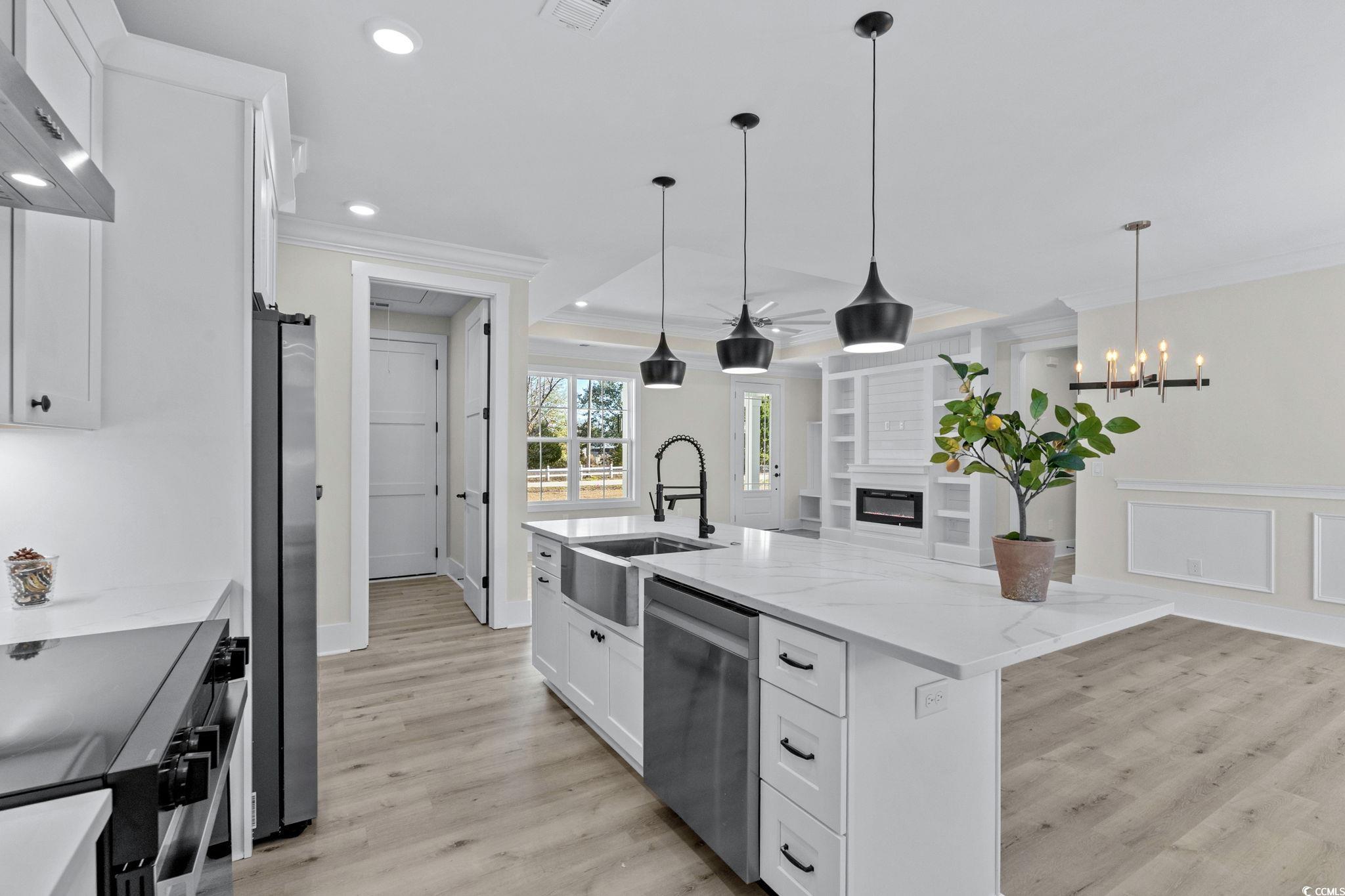 Welcome to this exceptional 4-bedroom, 3-bath new construction custom home located at 1418 Hyman Ln. in Conway, SC, situated on a 0.34-acre homesite with NO HOA and a large, private backyard. Thoughtfully designed with beautiful finishes and attention to detail, this home offers modern comfort and timeless appeal. The interior features quartz countertops, samsung appliances, custom closets throughout, and durable hardie plank construction. An open, light-filled floor plan flows to a spacious rear porch, ideal for outdoor living and entertaining. An extra-long driveway provides ample parking. The home is all-electric, with a gas line already in place for future flexibility. Conveniently located minutes from historic Downtown Conway, the Riverwalk, restaurants, hospitals, medical centers, banks, and grocery stores, with easy access to Highway 90 and Highway 501. Coastal Carolina University is nearby, and the Atlantic Ocean is approximately 20 minutes away. A rare opportunity to own a well-appointed new construction home with no HOA, offering high-end finishes, privacy, and quality craftsmanship.