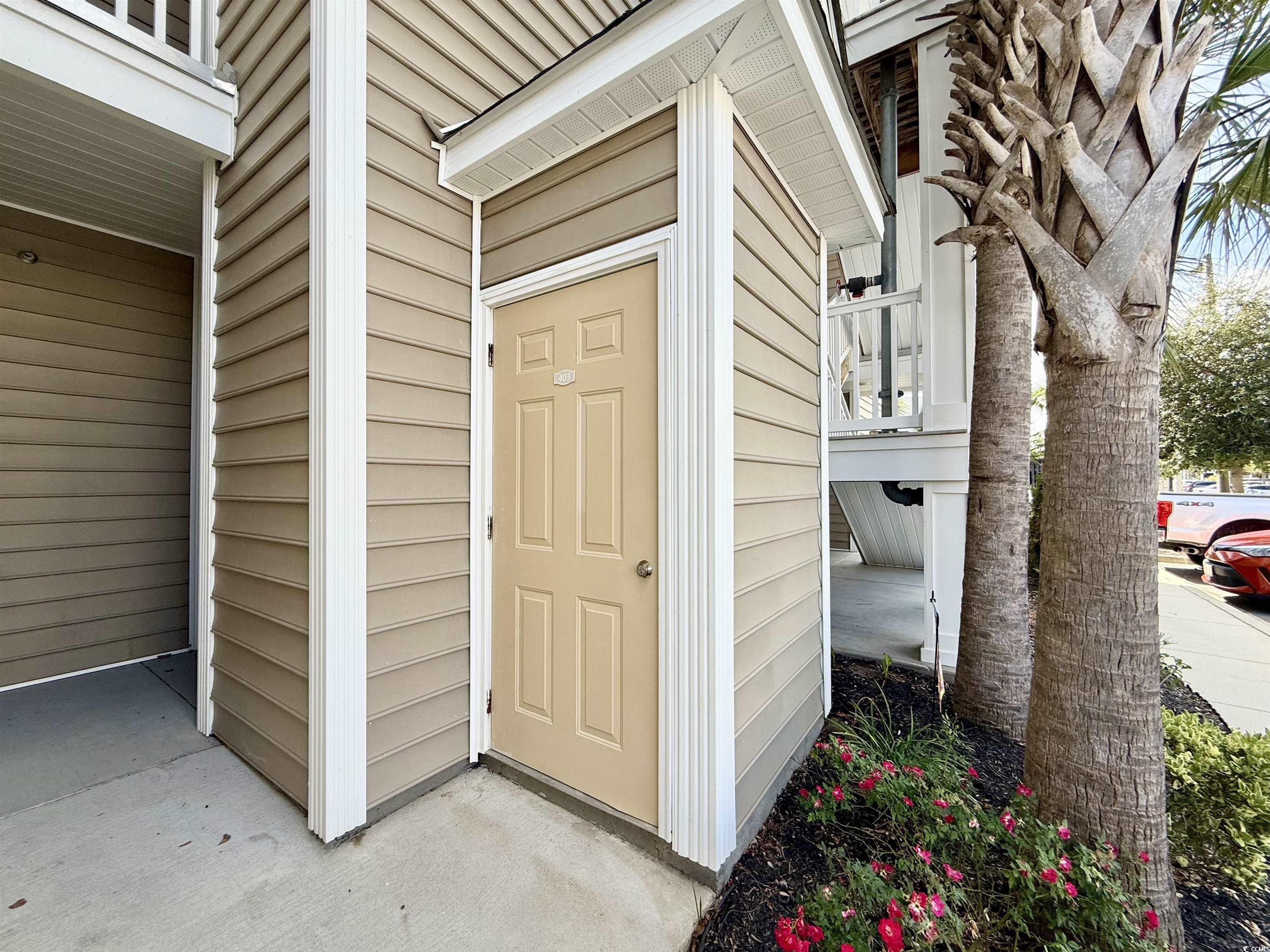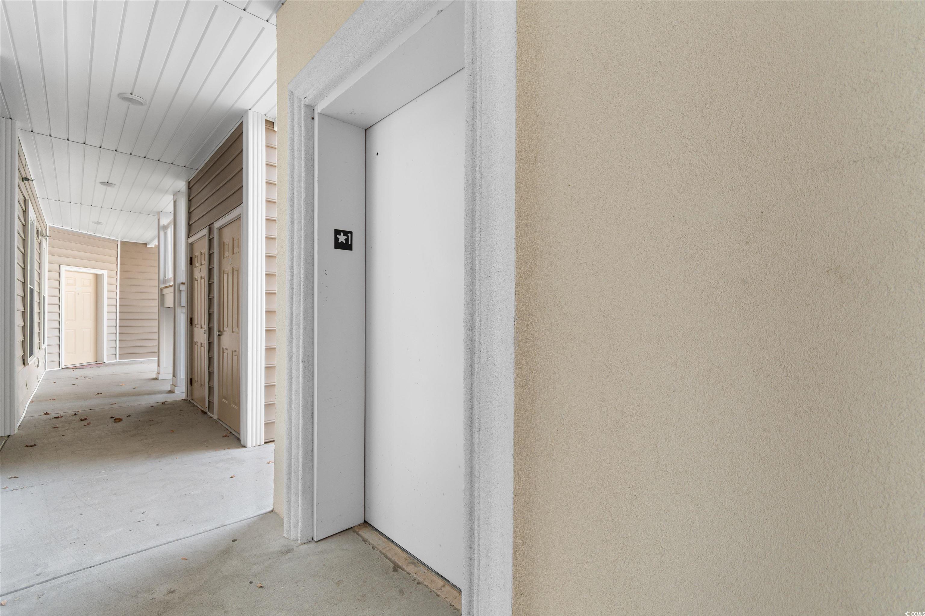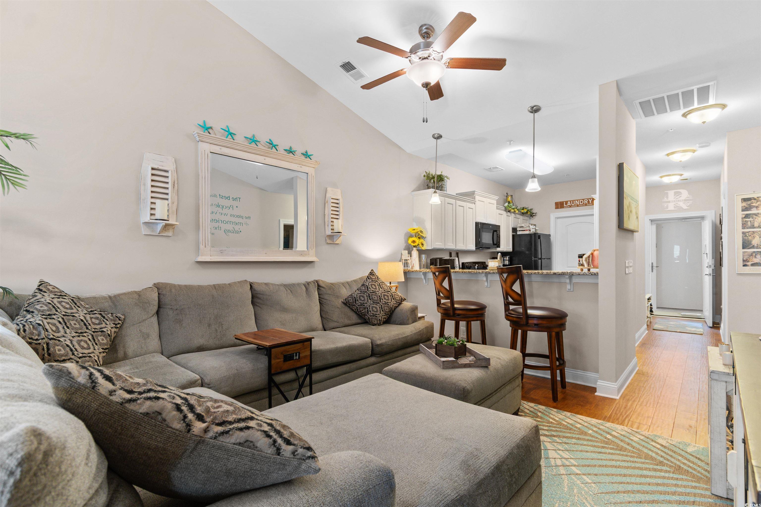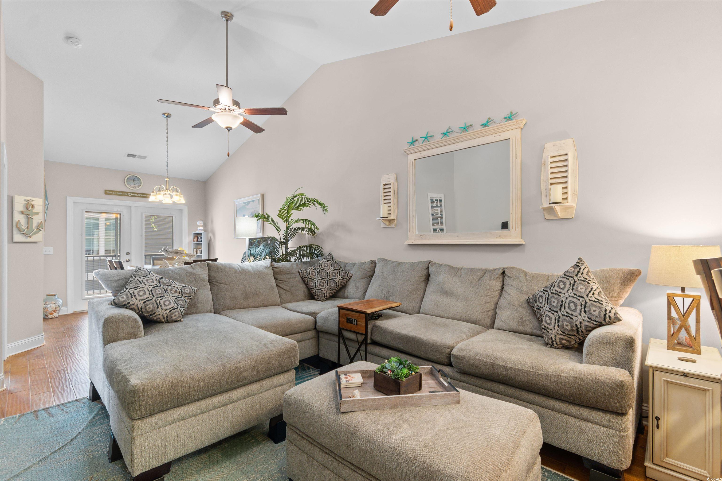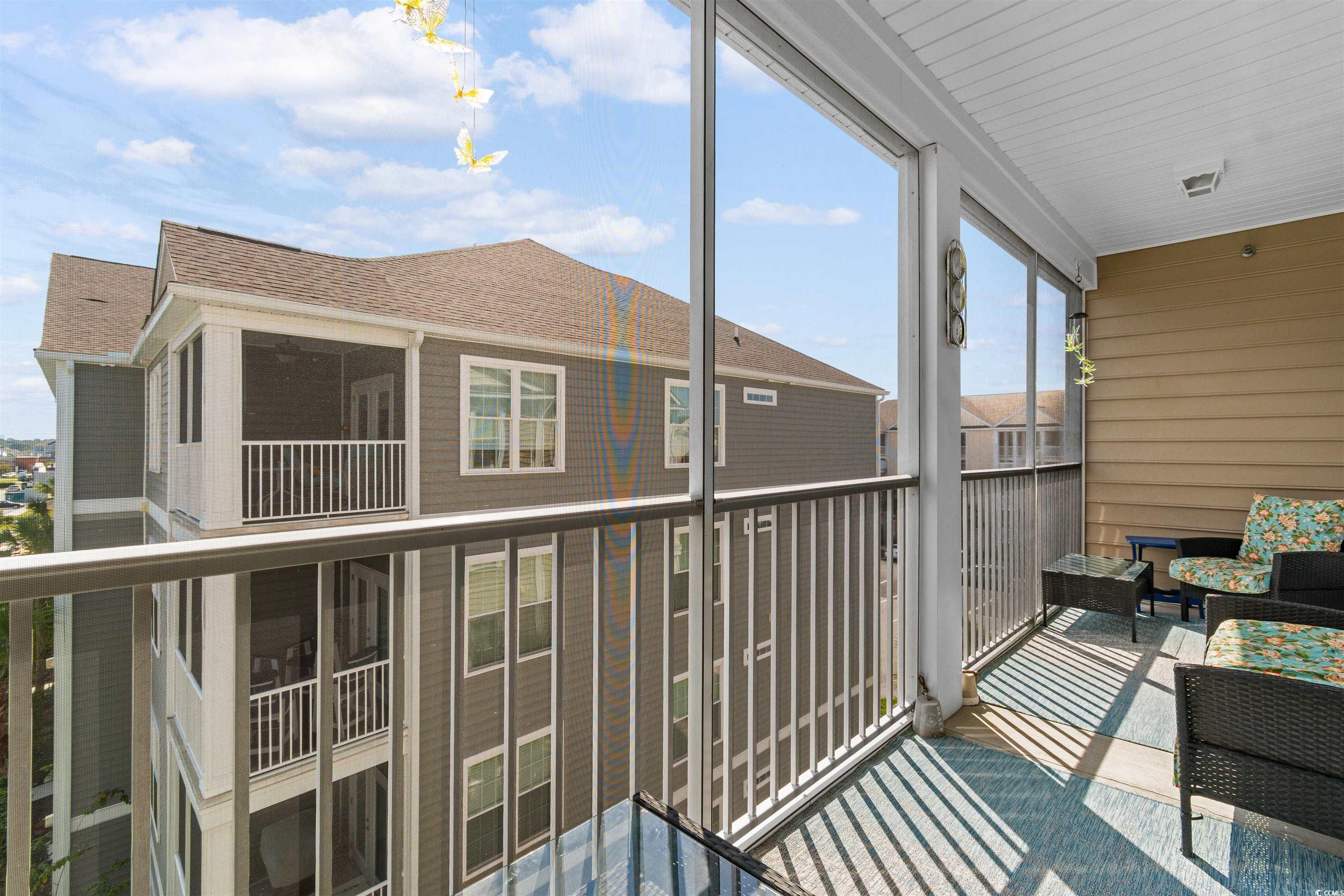 Welcome to 142 Ella Kinley Circle, Unit 403, a spacious 2-bedroom, 2-bathroom condo in the highly desirable Queens Harbour community. This top-floor residence features cathedral ceilings and a large great room with ceiling fans that offers plenty of space for both living and dining areas. The kitchen is well-appointed with granite countertops, soft-close cabinetry, extra cabinets for storage, and light, neutral finishes that keep the space feeling open and fresh. A dedicated laundry room adds everyday convenience. The owner’s suite includes two closets and an en-suite bath. From both the great room and the owner’s suite, you can step onto the screened-in DOUBLE balcony with peaceful views of the pool, the perfect spot to relax and enjoy the coastal breeze. Enjoy the added convenience of a first-floor storage room, providing a convenient place for seasonal items and everyday extras, so you don’t have to bring them upstairs. The building also features an ELEVATOR, making access to this fourth-floor home a breeze. Residents enjoy the community pool and cabana area, adding to the easy, low-maintenance lifestyle. The home’s neutral palette throughout makes it truly move-in ready, offering a versatile backdrop for any style. Ideally located near Surfside Beach, Market Common, shopping, dining, the airport, and the hospital, this property combines comfort, convenience, and coastal living in one perfect package.