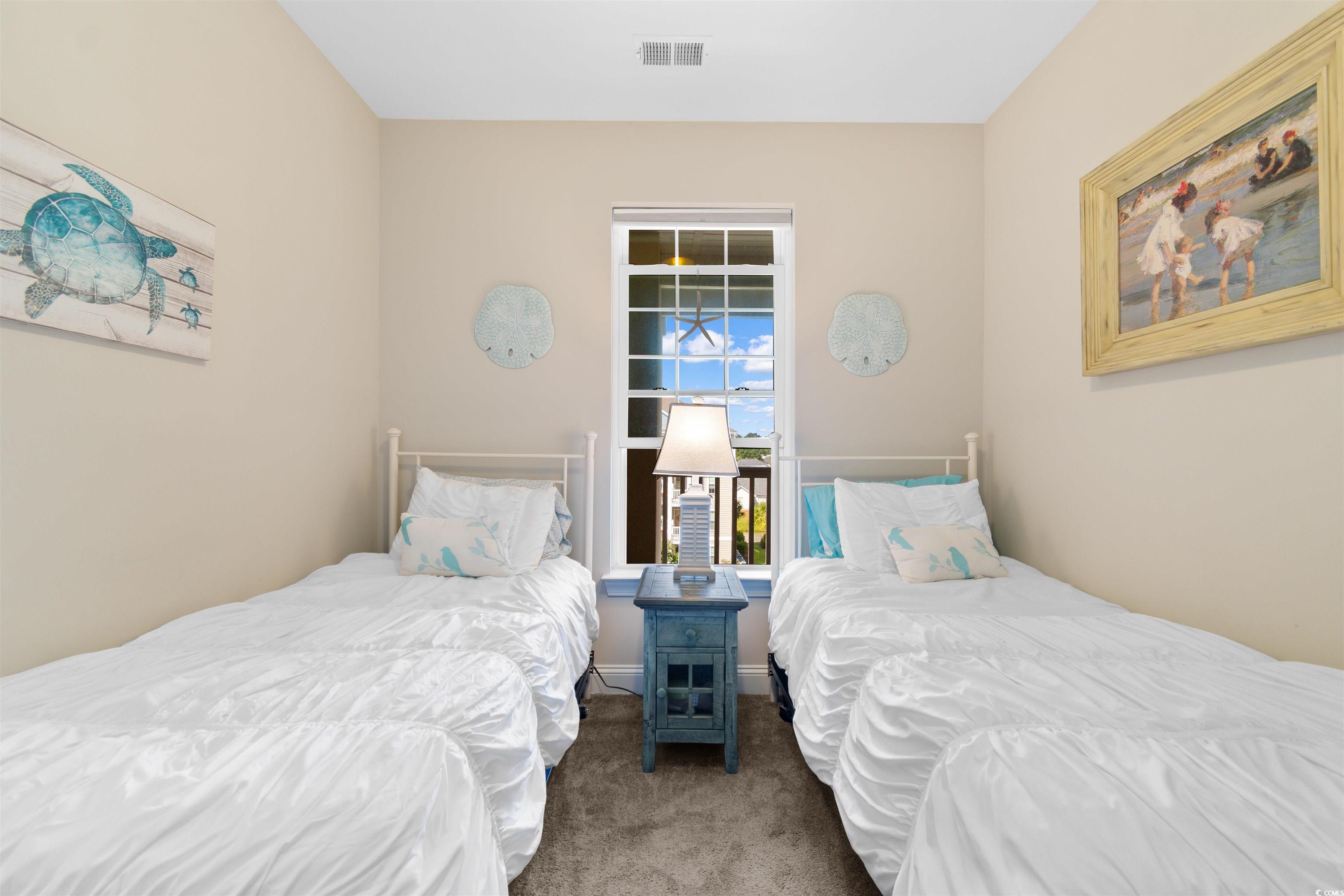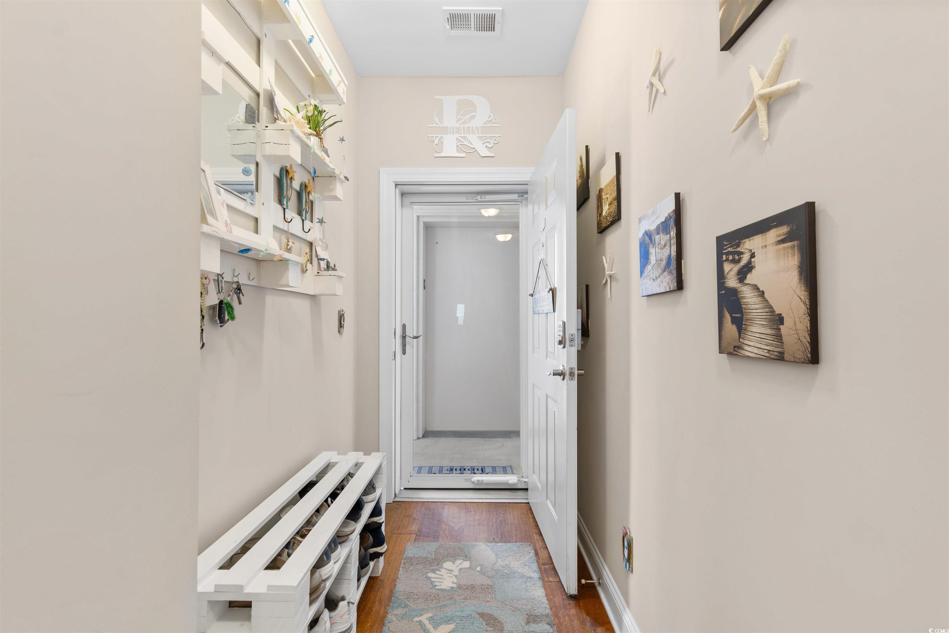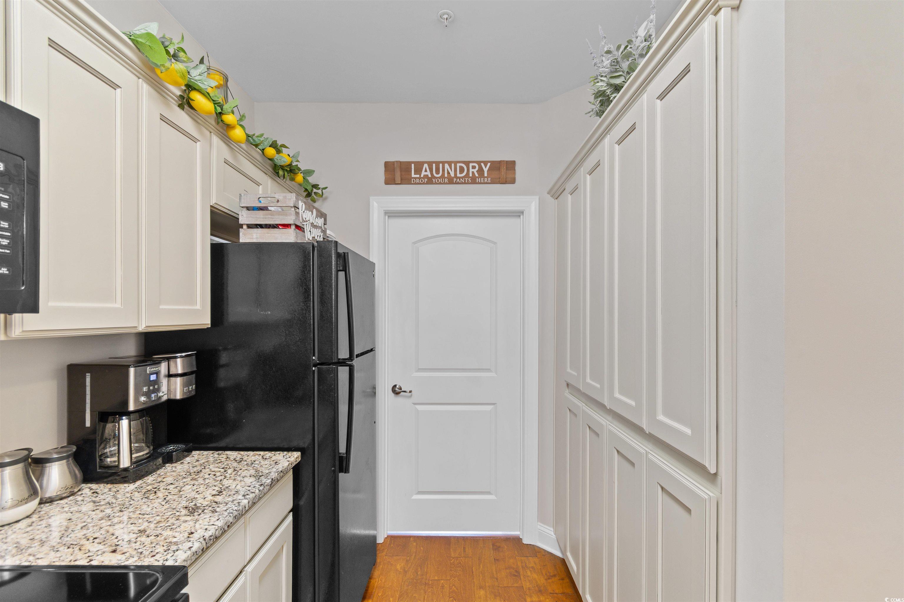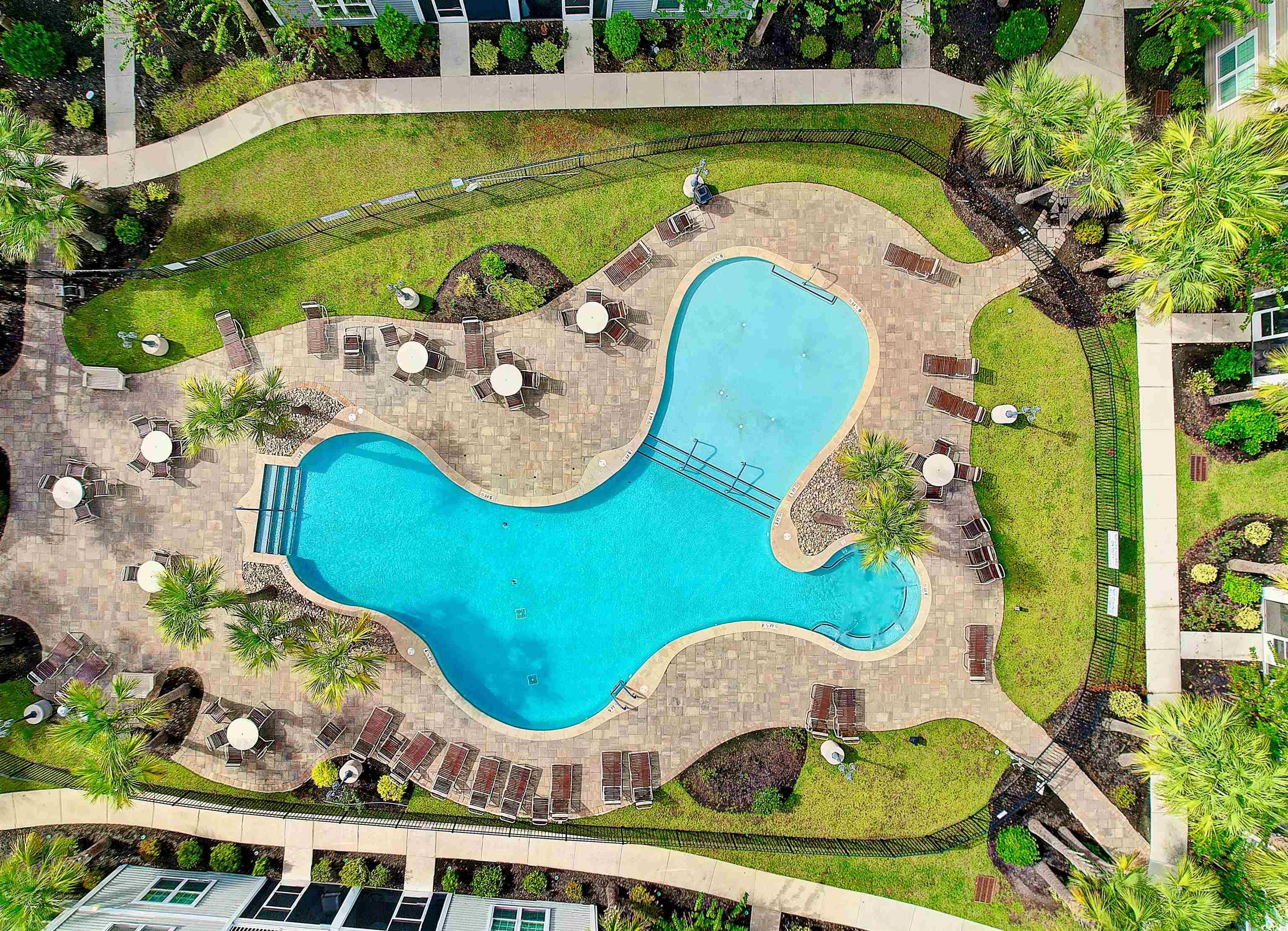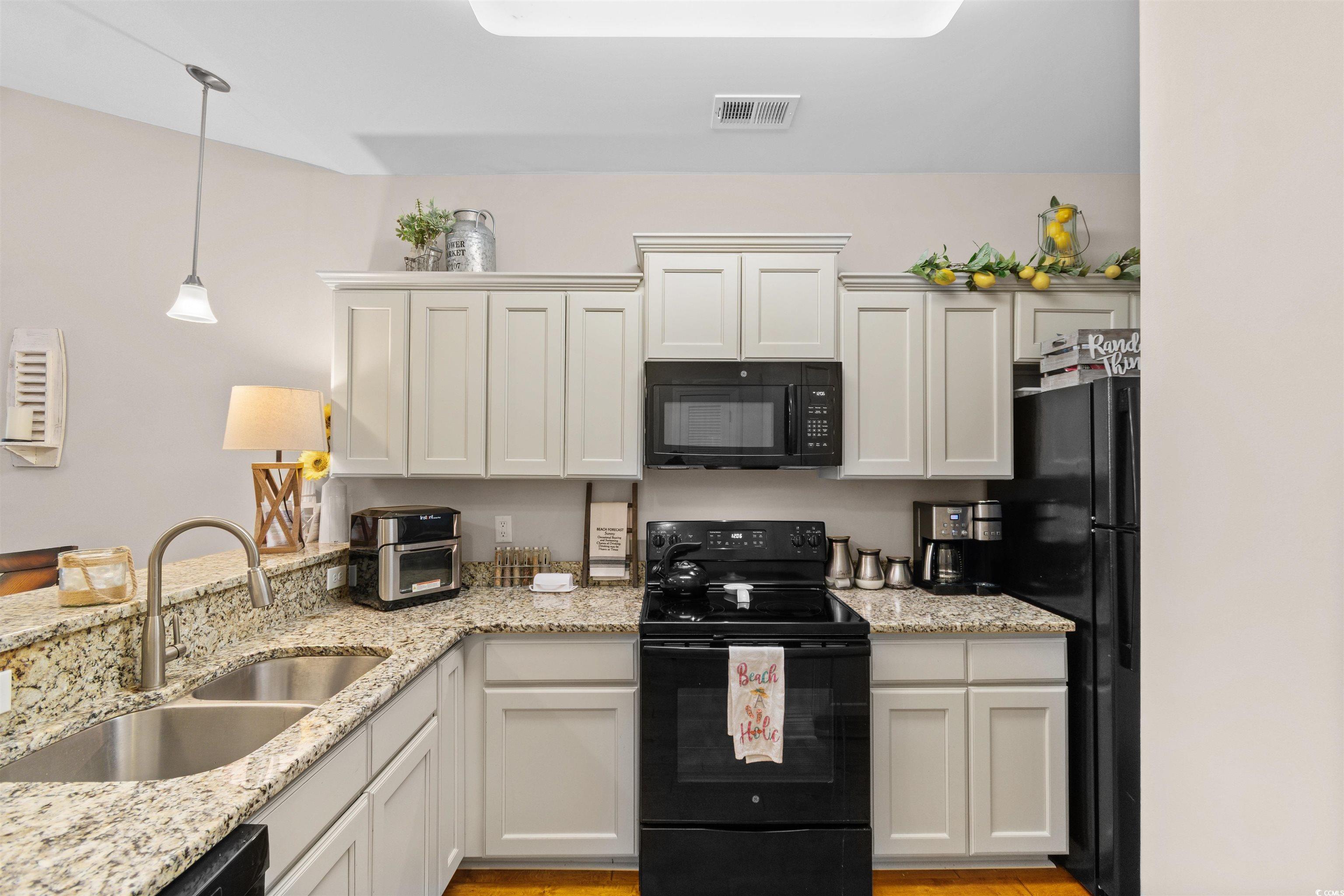 Welcome to 142 Ella Kinley Circle, Unit 403, a spacious 2-bedroom, 2-bathroom condo in the highly desirable Queens Harbour community. This top-floor residence features cathedral ceilings and a large great room with ceiling fans that offers plenty of space for both living and dining areas. The kitchen is well-appointed with granite countertops, soft-close cabinetry, extra cabinets for storage, and light, neutral finishes that keep the space feeling open and fresh. A dedicated laundry room adds everyday convenience. The owner’s suite includes two closets and an en-suite bath. From both the great room and the owner’s suite, you can step onto the screened-in DOUBLE balcony with peaceful views of the pool, the perfect spot to relax and enjoy the coastal breeze. Enjoy the added convenience of a first-floor storage room, providing a convenient place for seasonal items and everyday extras, so you don’t have to bring them upstairs. The building also features an ELEVATOR, making access to this fourth-floor home a breeze. Residents enjoy the community pool and cabana area, adding to the easy, low-maintenance lifestyle. The home’s neutral palette throughout makes it truly move-in ready, offering a versatile backdrop for any style. Ideally located near Surfside Beach, Market Common, shopping, dining, the airport, and the hospital, this property combines comfort, convenience, and coastal living in one perfect package.