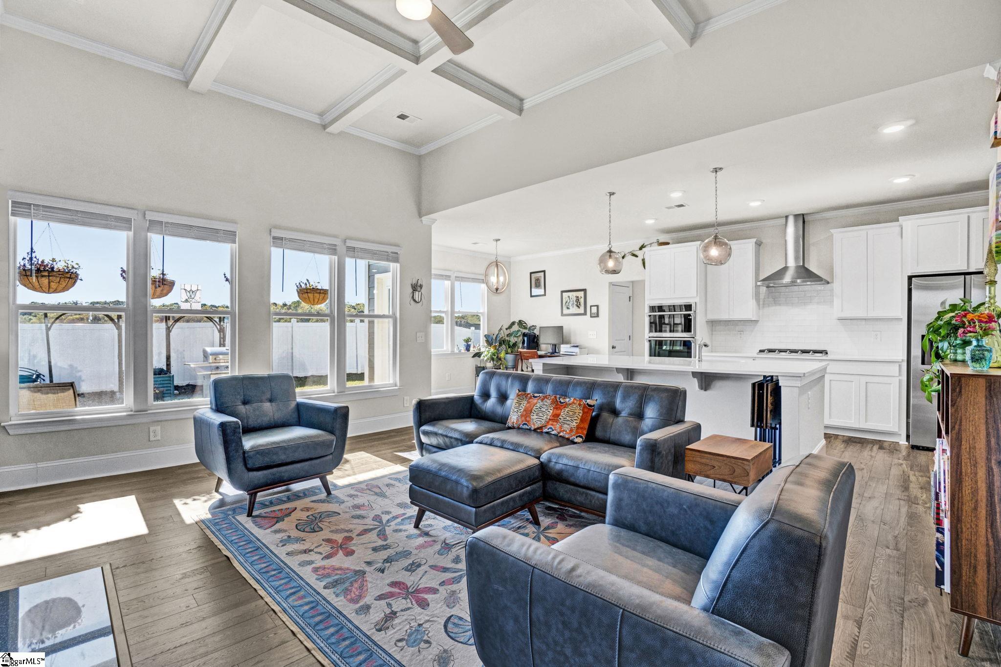 Welcome to 142 Juniper Hill Drive, a stunning one-level home in the highly sought-after Carriage Hill Subdivision of Powdersville. Built in 2024 and meticulously maintained, this exceptional property blends the benefits of new construction with the warmth and thoughtful personal touches of its current owners. Designed for everyday living, every detail has been carefully curated to offer comfort, connection, and convenience. The striking stone and Hardie plank exterior, paired with fresh landscaping, creates curb appeal that even the most discerning eye will appreciate. Step through the front door, framed by elegant sidelights, and immediately notice the soaring ceilings and light-filled open floor plan that welcomes you home. To the right of the foyer, a beautiful formal dining room features vaulted ceilings, classic wainscoting, and expansive windows. A butler’s pantry connects this space to the gourmet kitchen making entertaining effortless. The kitchen is truly a showstopper with it's quartz countertops, abundant shaker-style cabinetry, a gas range with stainless steel hood, wall oven, built-in microwave, and an oversized pantry. The large island provides additional prep space, storage, and generous seating to keep family and guests connected. A sunny breakfast area connects to the kitchen and overlooks a stunning living room, where coffered ceilings, custom floor-to-ceiling built-ins, and a gas fireplace create a warm gathering space. Windows lining the rear of the home frame a gorgeous view and offer plenty of natural light. Tucked away from all of the action, the primary suite showcases vaulted ceilings and an ensuite bath complete with dual vanities, a soaking tub, walk-in shower with bench, separate water closet, and an enormous walk-in closet. The thoughtfully designed split floor plan places two additional bedrooms and a full bath on the opposite side of the main level. A walk-in laundry room and access to the two-car garage complete the first floor. Upstairs, you’ll find ideal accommodations for guests or teens, including a fourth bedroom, full bathroom, and versatile flex space perfect for a media room, playroom, or secondary living area. Outdoor living is just as inviting. Enjoy evenings on the covered back patio overlooking a fully fenced backyard. The home’s elevated position provides beautiful treelined views and a truly private feel while still enjoying the benefits of neighborhood living. Residents of Carriage Hill enjoy a walkable, friendly community atmosphere with scenic surroundings and a neighborhood pool. Conveniently located just minutes from shopping, dining, Hwy 153, and I-85, this home offers the perfect balance of seclusion and accessibility. No updates needed here - just move in and enjoy beautiful and comfortable living at its best. Schedule your showing today! Please note that taxes are currently assessed as a second home and will be significantly less expensive if home is used as a primary residence.