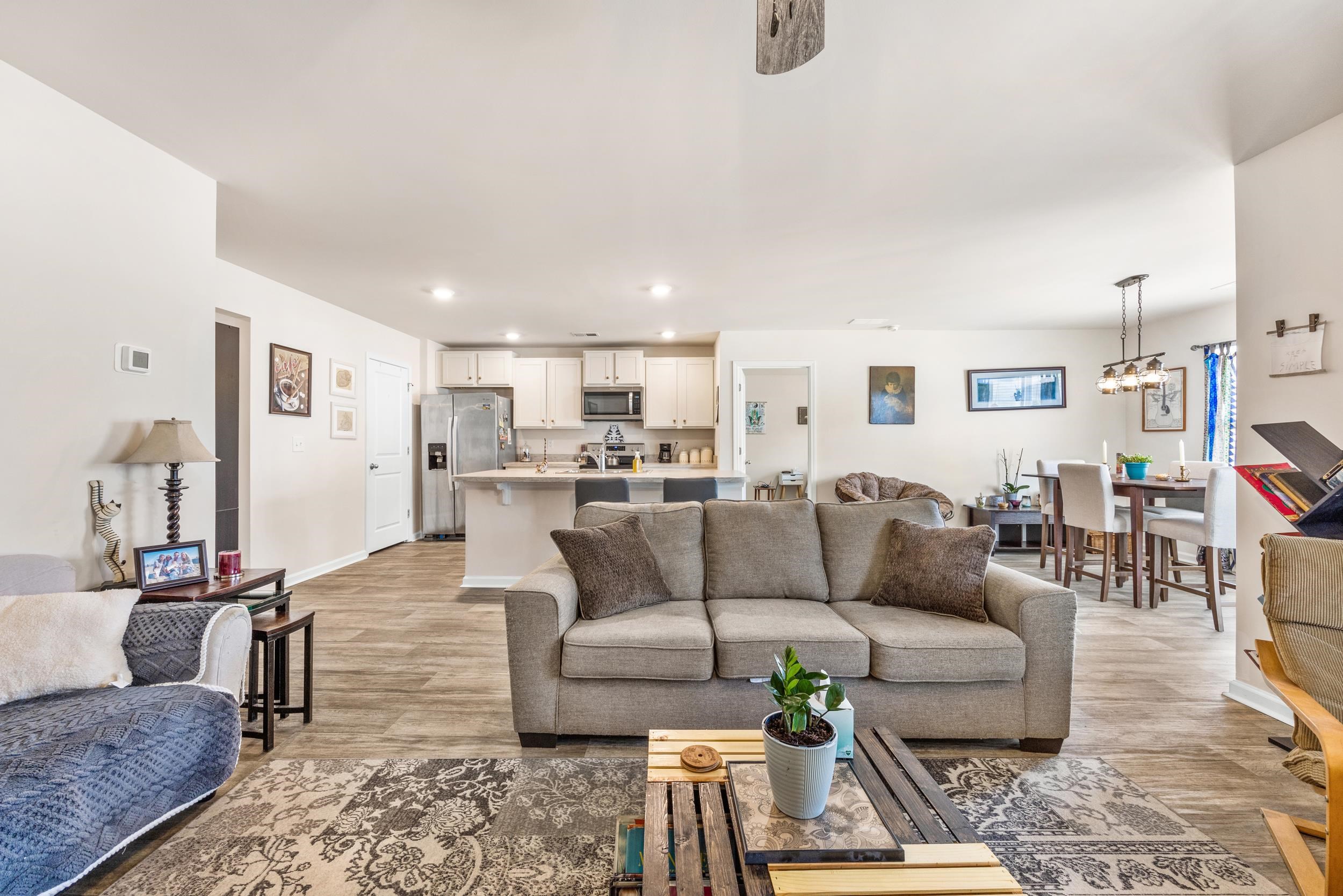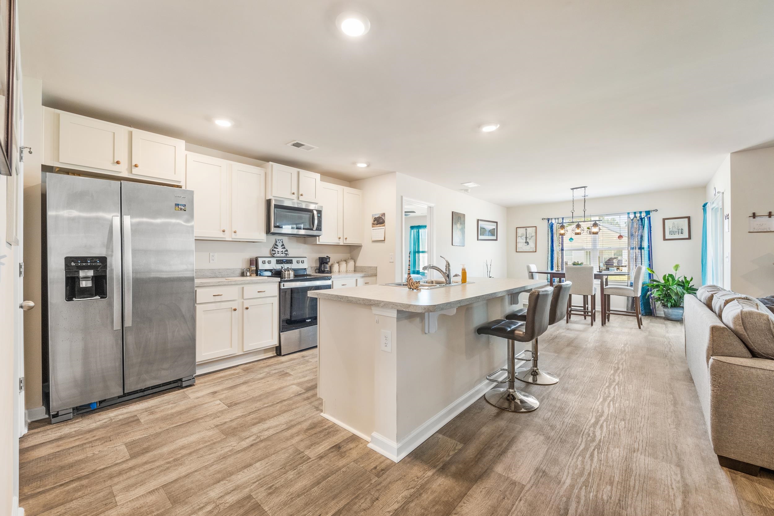 Welcome to your new furnished home in Pine Forest! This meticulously maintained (newly constructed in 2021) Aria floor plan features a bright and airy open layout, perfect for entertaining. The kitchen showcases off-white painted cabinetry, a large working island, a pantry with ample storage, and stainless Whirlpool appliances, including a refrigerator. The split bedroom design ensures a private primary suite with a walk-in closet and a spacious bathroom equipped with a double vanity and a 5-foot shower. Blinds are included on all standard-sized windows, and the living room and bedrooms are pre-wired for cable and ceiling fans. The home also includes a two-car garage with a garage door opener. Experience the convenience of the Smart Home installation, allowing you to control the thermostat, front door light and lock, and video doorbell from your smartphone or with Alexa voice commands. Pine Forest offers a country feel, yet is just a short drive from the historic city of Conway, the quaint town of Aynor, and all the attractions of the Grand Strand and beaches. You will love the screened in extended 15x15 patio area.