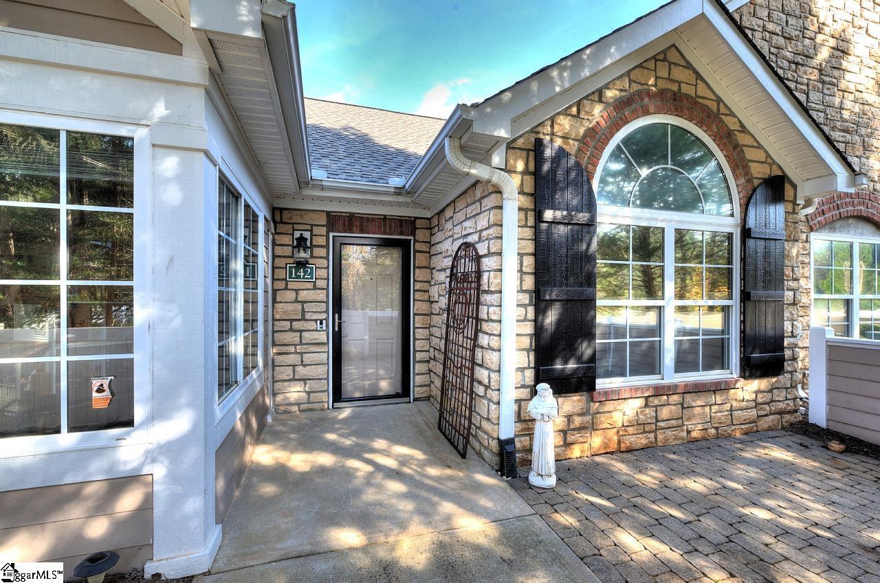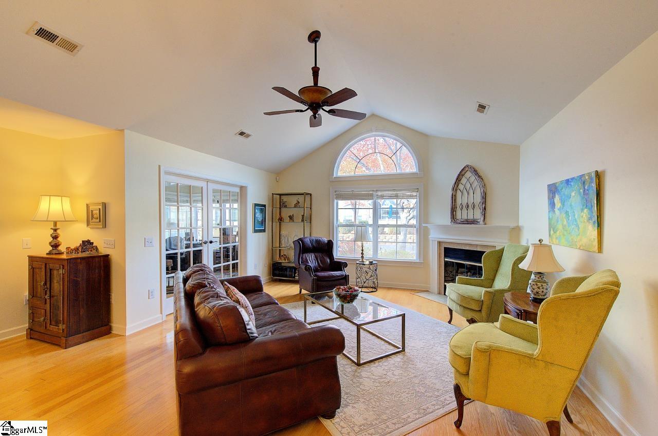 Welcome to maintenance-free living in the Ravines at Woodridge, a peaceful 55+ community conveniently located off Highway 29 in Spartanburg—just minutes from popular shopping, dining, and medical facilities. This beautifully maintained 2-bedroom, 2-bath townhome features an open-concept layout with hardwood floors throughout and cathedral ceilings that create a bright and airy feel. The updated kitchen boasts a gas range, ample cabinetry, and stainless appliances, perfect for entertaining or everyday living. Relax in the inviting sunroom filled with windows, or unwind by the cozy gas fireplace in the spacious living area. A versatile office or den with French doors provides the perfect space for reading, hobbies, or remote work. The primary suite offers a large bathroom with double sinks and a walk-in closet. Additional highlights include a two-car attached garage and easy access to community amenities designed for comfort and convenience. Experience one-level living at its best in this move-in-ready home—where comfort, style, and location come together perfectly.