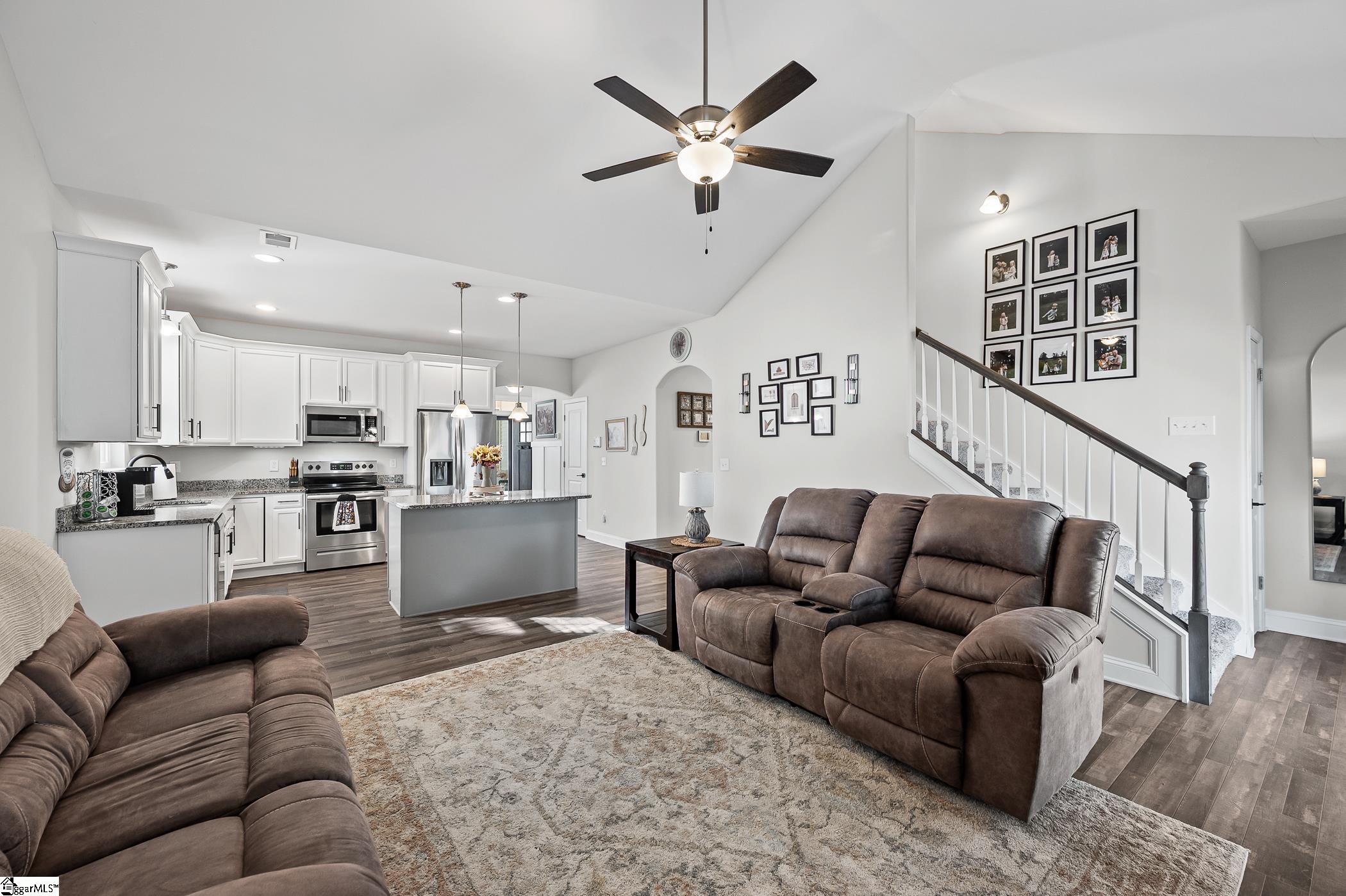 Welcome to 1422 Almaden – Your Ideal Home in Pine Valley! Located in the heart of Boiling Springs, this beautifully designed home blends comfort, style, and convenience. Step inside to an inviting open floor plan where the kitchen flows seamlessly into the living area, featuring vaulted ceilings, a gas log fireplace, and designer trim with custom paint accents. The upgraded cabinetry, granite countertops, and stainless steel appliances make this kitchen a true centerpiece for both everyday living and entertaining. The spacious first-floor primary suite offers a peaceful retreat with a tray ceiling, abundant natural light, a walk-in closet, and a luxurious bath showcasing a walk-in shower and soaking tub. Two additional bedrooms and a full bath are conveniently located on the main level.Upstairs, you’ll find a fourth bedroom and a bonus area currently used as a homeschooling and study space, offering great flexibility for a home office, media room, or creative studio. Enjoy thoughtful upgrades throughout, including vinyl flooring in main living areas, window blinds, additional lighting and electrical features, and closets galore. A flex room provides the option for formal dining or multipurpose use to suit your lifestyle. Step outside to your spacious back porch, ideal for relaxing or entertaining, overlooking a fenced backyard with a private gate leading directly to the community pool—just steps away! A charming front porch adds curb appeal and a welcoming touch. With easy access to the interstate, plus nearby shopping, restaurants, and grocery stores, this home offers the perfect balance of modern convenience and neighborhood charm. Don’t miss your opportunity to make 1422 Almaden your new home. Schedule your private showing today and experience the best of Pine Valley living!
