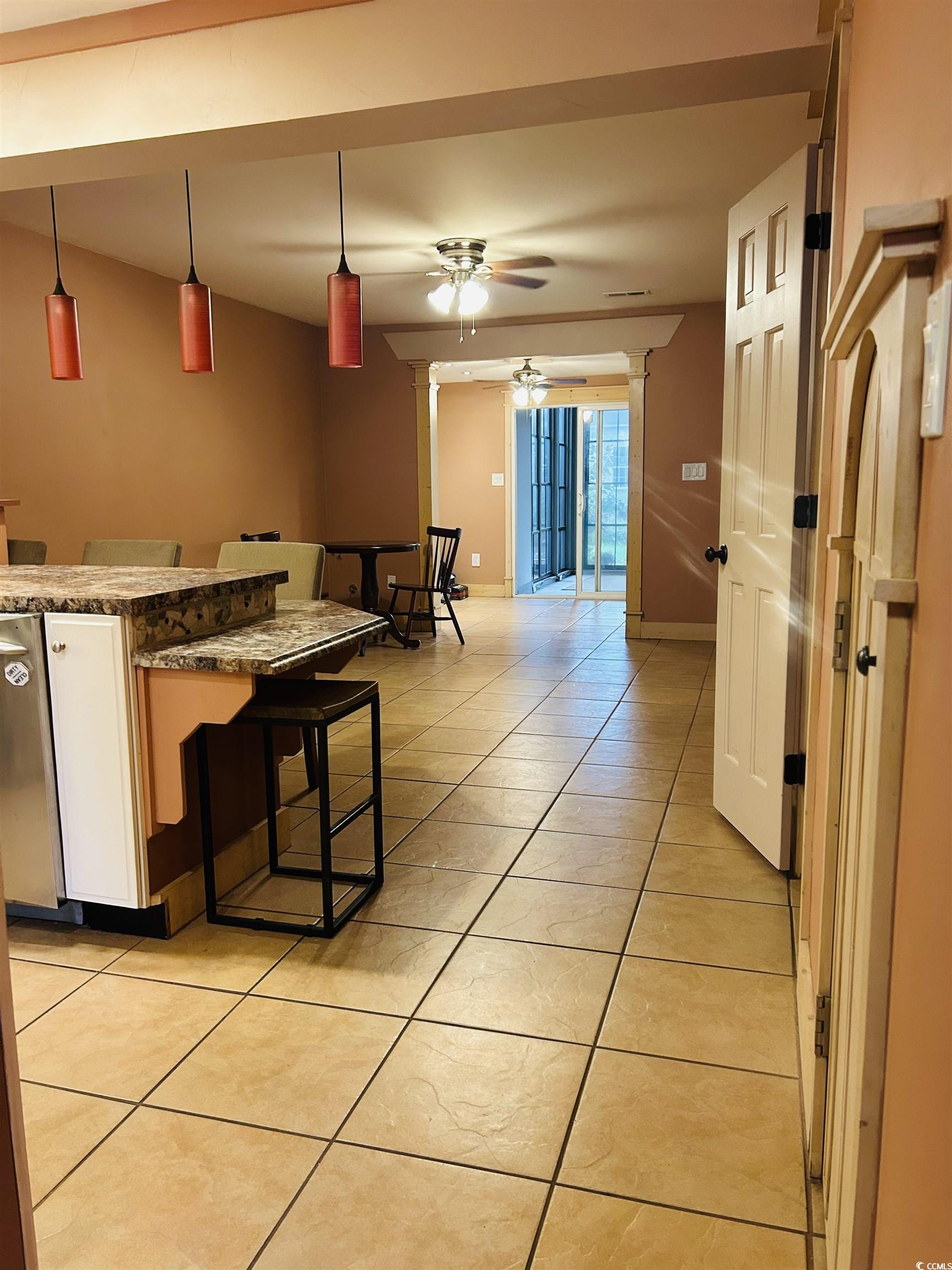 NO HOA and JUST 1 mile to the beach and to the Surfside Pier!! YES, it is that close to the beach, take a walk, bike or golf cart ride to the beach, fishing pier, beachfront restaurants and shops, this townhouse if ideal for an income generating investment property and or second home, to enjoy! It truly is a great location, especially for the price, you can't beat it!! It is a MUST SEE, as you will be amazed how charming it is from the moment you step through the doors. There is a quaint foyer with built-ins for all your mudroom needs. The kitchen is custom, fully equipped with upgraded appliances, gas cooktop, stainless steel appliances, custom cabinets for unique storage, beautiful with backsplash, breakfast bar wraparound with seating, under stairs storage, powder room for guests, large laundry room with extra cabinets, counter-top workspace and even a built-in ironing board. The Carolina Room in the back has been added for further enjoyment that can be used for an additional living space. Upstairs, there are two nice sized bedrooms, one of them has an additional space that can be closed off and used as an extra room, equipped with a built-in murphy bed and large wall unit dresser. The upstairs bathroom has been updated as well and so spacious!! You will be amazed! There is also a large front porch with pergola for a great outdoor space to enjoy! Move in ready!