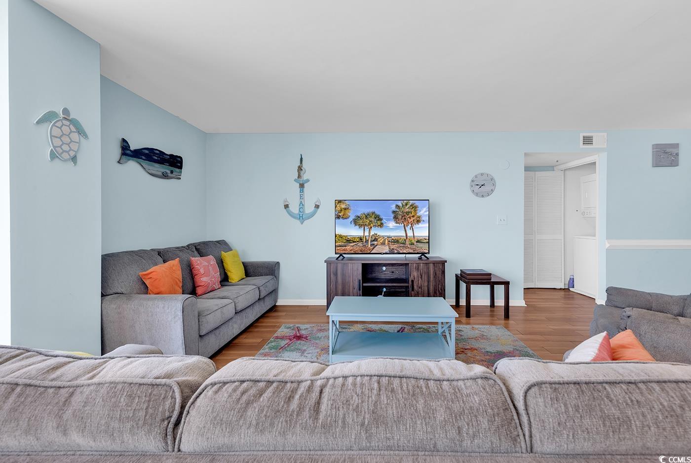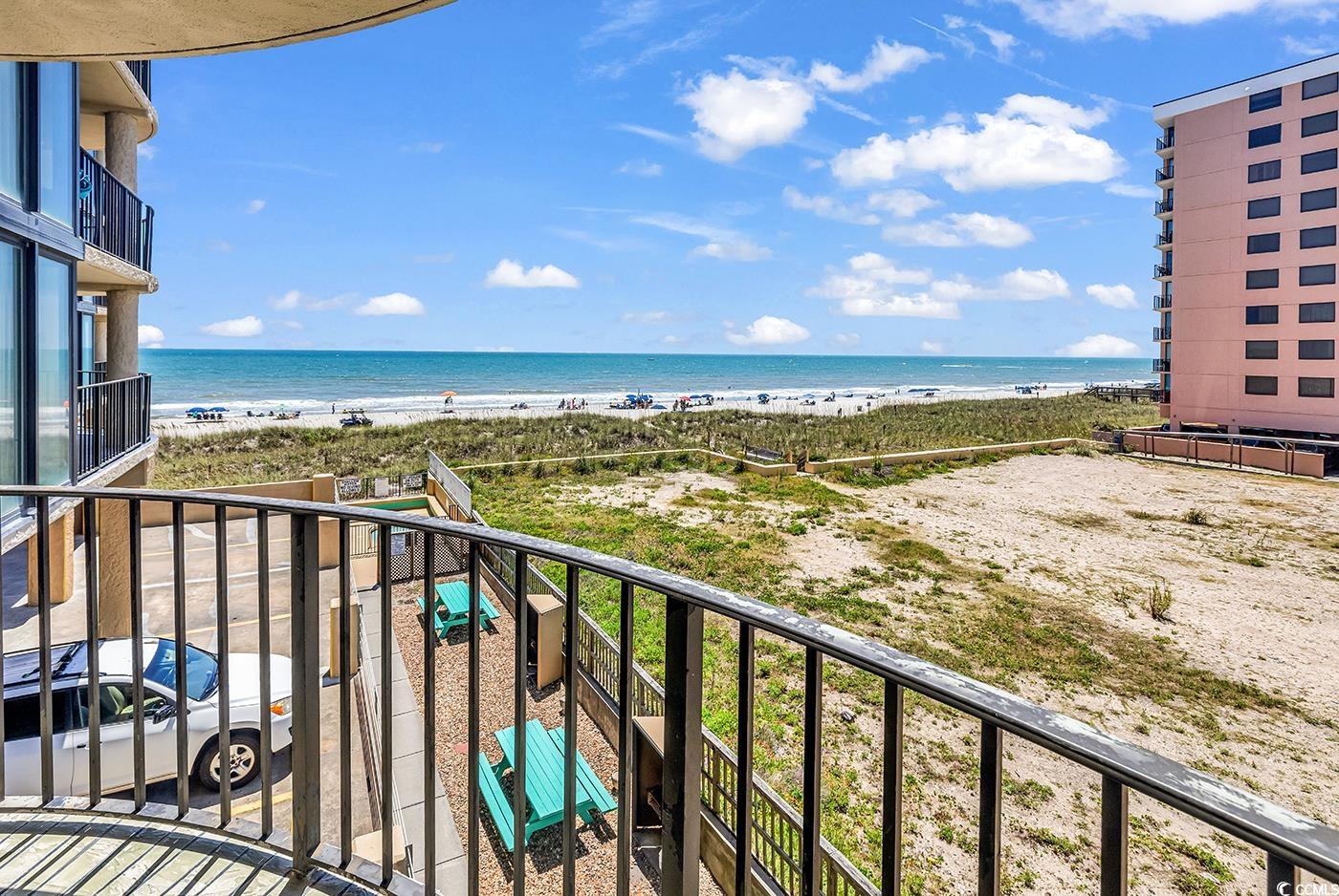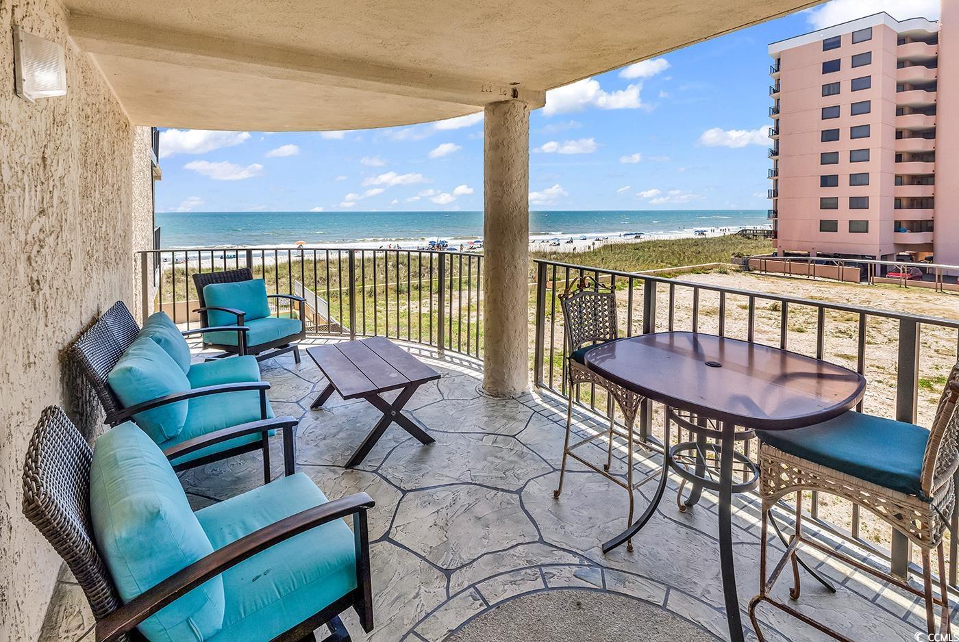 Welcome to your dream coastal getaway at Sea Castle in North Myrtle Beach! This spectacular 3-bedroom, 2-bath ocean view condo located in the highly sought-after Crescent Beach section just steps from the sand and surf. This turnkey, fully furnished corner unit is filled with natural light and modern touches throughout. Enjoy an open-concept layout perfect for entertaining, featuring a spacious living room with oversized corner windows, direct balcony access, and stunning ocean views. The kitchen blends function and style with white cabinetry, stainless steel appliances, tile floors, and a convenient breakfast bar. Both bathrooms have been tastefully remodeled, and the master suite boasts a walk-in tiled shower and modern vanity. It features: hurricane-rated windows and balcony doors, LVP & tile flooring, custom decorative concrete balcony, and popcorn ceilings removed. Roller shades offer added privacy throughout. Relax or dine on your oversized private balcony as you soak in the sights and sounds of the Atlantic. Sea Castle’s resort-style amenities include an oceanfront pool, hot tub, kiddie pool, sun deck, picnic & grilling area, elevator, and four levels of covered parking. HOA dues cover water/sewer, cable, internet, pest control, building insurance, and more. Ideally located just minutes from Main Street’s vibrant restaurants and entertainment, as well as world-class golf, shopping, and everything North Myrtle Beach has to offer! This is the perfect primary home, vacation retreat, or rental investment. Don’t miss your chance to own a slice of paradise. Schedule your private tour today!