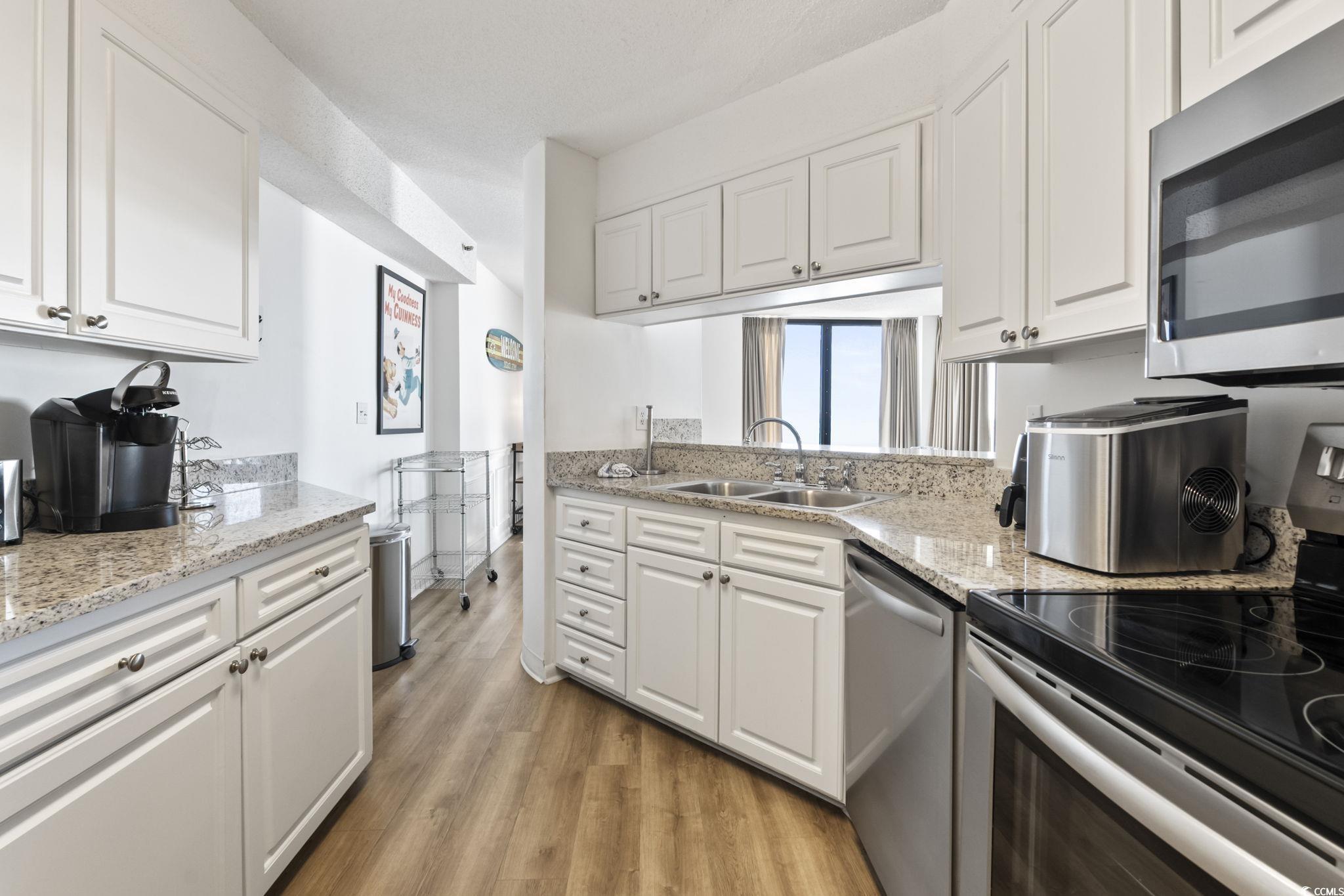 Imagine waking up each morning to the sound of waves crashing and the sunrise over the Atlantic as your daily view - that's exactly what awaits you in this stunning 3-bedroom, 2-bath oceanfront condo located in the highly sought-after Sea Castle community in North Myrtle Beach, SC. Located directly on the beach in one of the most desirable and relaxing areas along the Grand Strand, this beautiful oceanfront unit offers the perfect blend of tranquility, convenience, and coastal charm. Whether you're searching for a full-time residence, a vacation getaway, or a proven rental investment, this home delivers everything you need for stress-free beachfront living. Step inside and you're immediately welcomed by an open and spacious layout that maximizes the incredible ocean views from the main living area. The large sliding glass doors lead out to your private balcony, where you'll enjoy morning coffee, sun-filled afternoons, and breathtaking sunsets - all with the Atlantic Ocean as your backdrop. The open-concept design flows seamlessly from the kitchen to the dining and living areas, making it ideal for entertaining family and guests. The primary suite features its own access to the balcony and a private ensuite bath, while two additional bedrooms provide plenty of space and flexibility for visitors or a home office. Situated in the heart of North Myrtle Beach, Sea Castle offers the peace and quiet of a boutique oceanfront building while being just minutes from everything the Grand Strand is famous for - championship golf courses, shopping, local seafood restaurants, live music, fishing piers, and the lively Main Street entertainment district. Whether you're looking for a peaceful retreat or a place to make lifelong memories with family and friends, this condo offers the ultimate coastal lifestyle. Don't miss your chance to own a true oceanfront gem in Sea Castle - schedule your private showing today and start living the North Myrtle Beach dream!