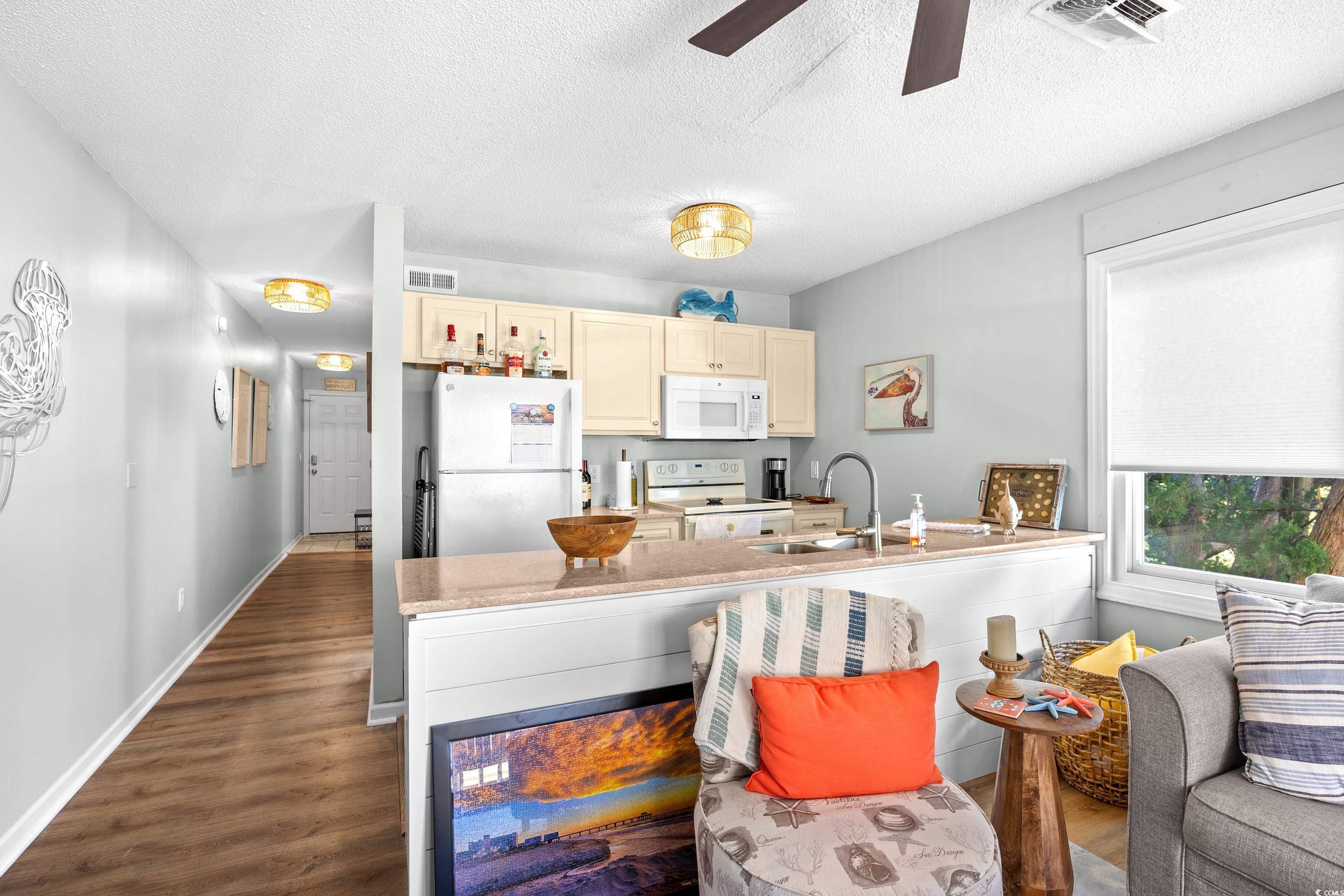 Are you looking for the perfect place to relax and enjoy the beach? This furnished condo is for you! Located across the street from the beach in Garden City, this 1 bedroom unit has so much to offer. Step inside to this freshly painted condo with luxury vinyl flooring. The bedroom has a spacious walk in closet with a recently replaced washer/dryer. The kitchen features solid surface countertops and a large breakfast bar which is open to the living area. This is an end unit with updated windows allowing the Carolina sunshine to fill your space. You can even relax on the screened porch and enjoy the sounds of the ocean. There is a storage closet on the porch to stow your beach chairs. Plus, there is a pool for those hot summer days. The exterior of the building has been recently painted and a roof was installed the beginning of 2025. Plus, the HVAC and Water Heater have been recently replaced. This has been used as a second home. The only worry you should have for years to come is, where are my flip flops? Make an appointment today!