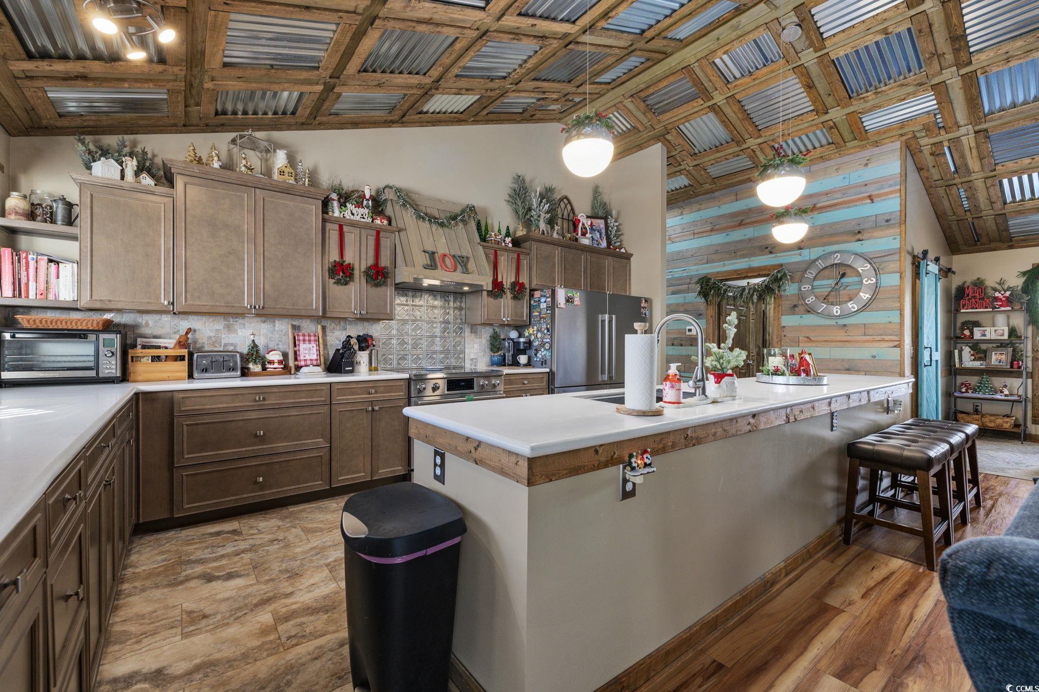 Welcome to this beautifully renovated home in the desirable Hillsborough community! Offering an inviting open layout and an impressive list of upgrades, this home has been thoughtfully improved from top to bottom. Fresh new paint throughout, updated lighting and ceiling fans, and waterproof LVP flooring provide a modern and seamless feel. The kitchen shines with upgraded cabinetry, solid surface countertops, stainless steel appliances (including a 36" convection oven and two 33" refrigerators!), a new range hood, and expanded pantry/storage — perfect for cooking and entertaining. The living room features a refreshed fireplace and mantel and flows into the newly enclosed Carolina Room — now heated and cooled with new glass and screen doors for year-round enjoyment. Both bathrooms have been beautifully upgraded with granite countertops, updated vanities and mirrors, and the primary suite offers a walk-in tile shower plus a custom walk-in closet with built-in shelving. The improvements continue outside with a painted driveway, curbscaping, widened concrete patio extensions (front and rear), rubber mulch landscaping, new outdoor light fixtures, front patio awning, and keyless entry locks. Additional features include stairs to attic storage above the garage with shelving, new blinds throughout, and a garage workbench and cabinets. Best of all — a brand-new roof was installed in 2025 for added peace of mind! Hillsborough is a highly sought-after community featuring a pool, playground, bocce ball courts, pickleball courts, basketball area, sidewalks, and fun neighborhood events — all just minutes from shopping, dining, golf, and the beautiful beaches of the Grand Strand. This home is truly move-in ready and loaded with upgrades. Come see why 1427 Half Penny Loop should be your next address!