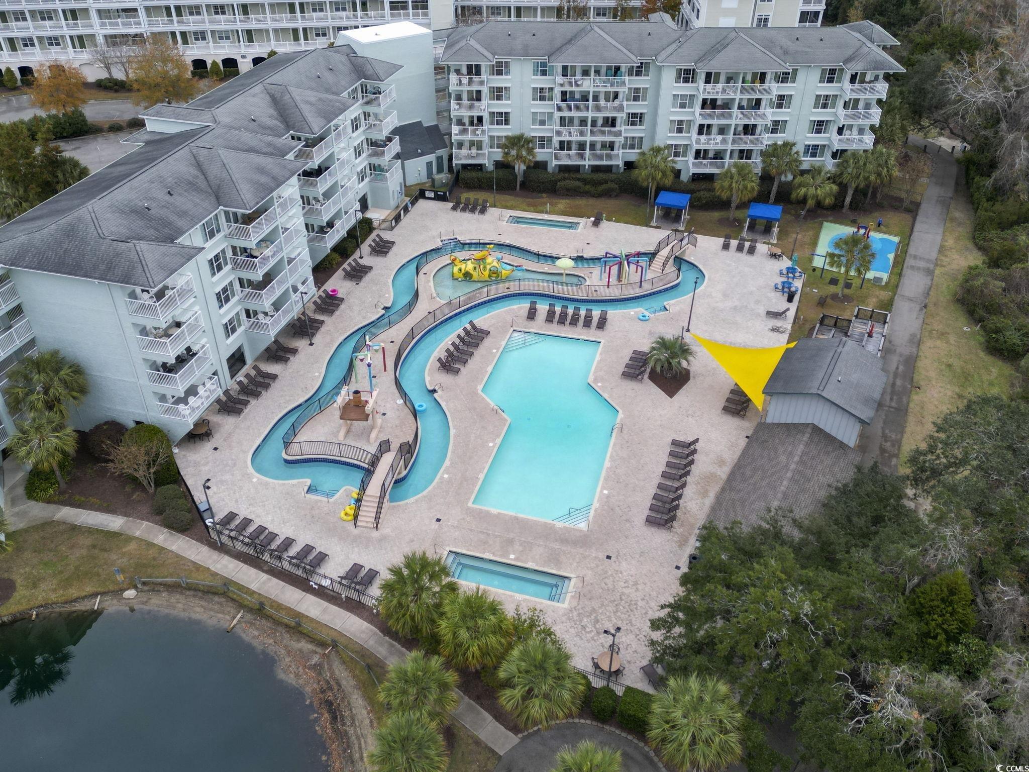 Stunning views of the pool and lazy river from your private balcony in this fully furnished third-floor condo. This one-bedroom, one-bathroom unit is ideal as an income-producing property, a year-round residence, or a relaxing second home. Homeowners and guests enjoy private beach access along with full use of resort-style amenities, including an indoor pool, on-site restaurant, fitness center, and a dedicated play area for kids. After a sun-soaked day, unwind with your favorite beverage while taking in a gorgeous sunset. Conveniently located just minutes from Pawleys Island dining is shopping, and live entertainment. This condo offers the perfect blend of relaxation and convenience. Upgrades include New LVP Flooring in entire unit in 2022, New Patio Screen Door, New Ceiling Fans, New Light Fixtures, New Keypad Code Front Door Entry, New Paint, New Curtains, Framed Bathroom Mirror.